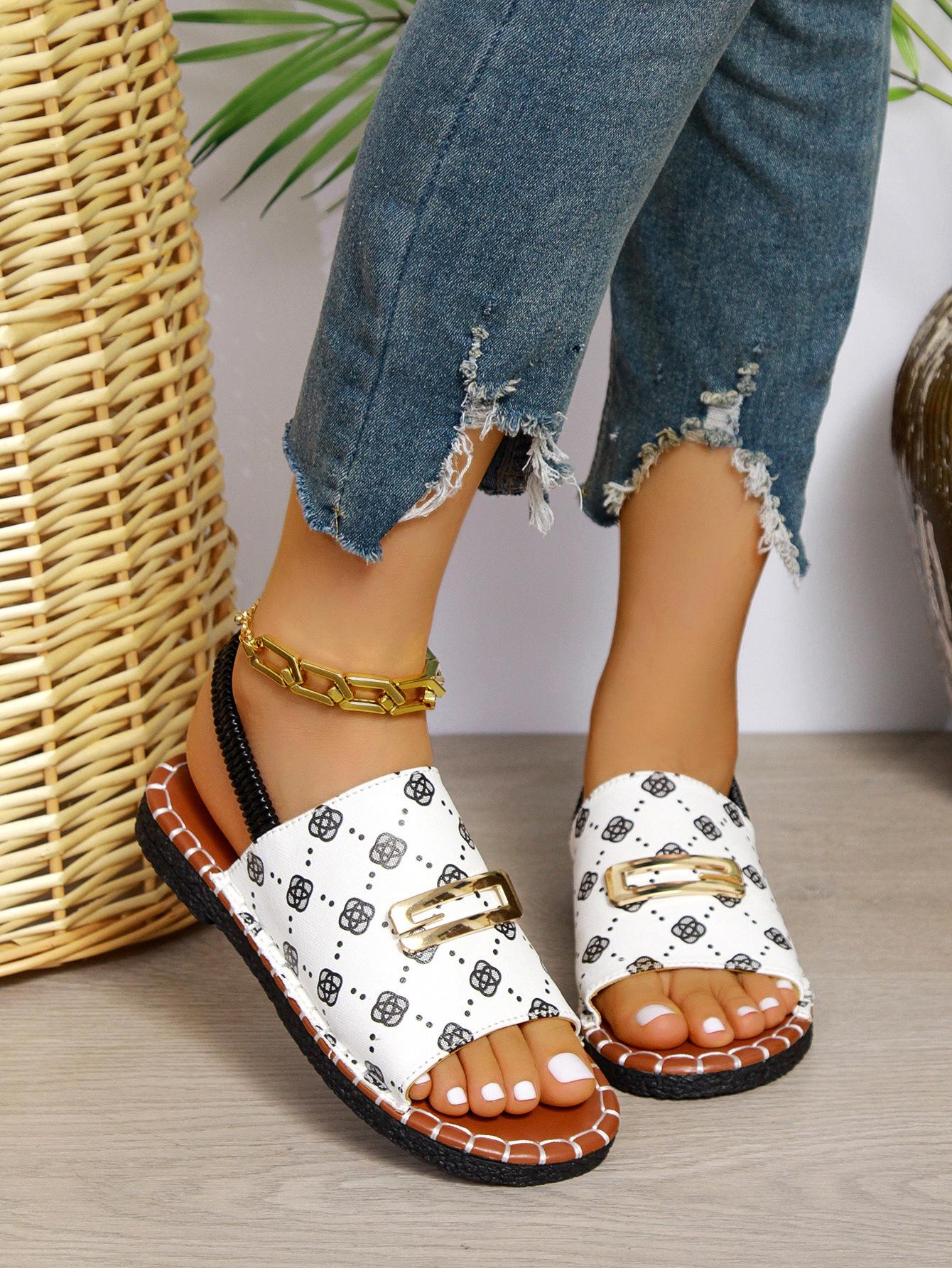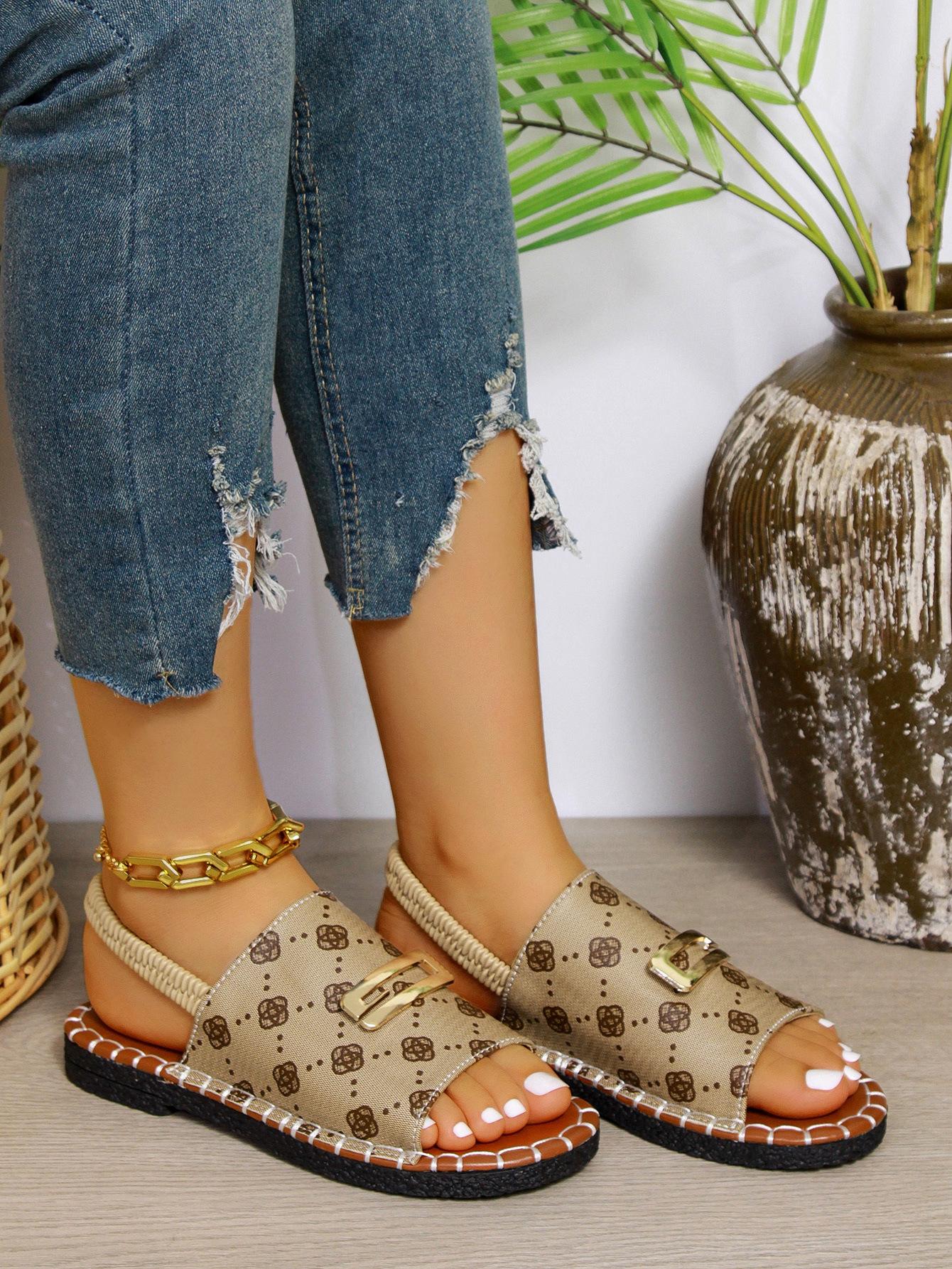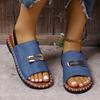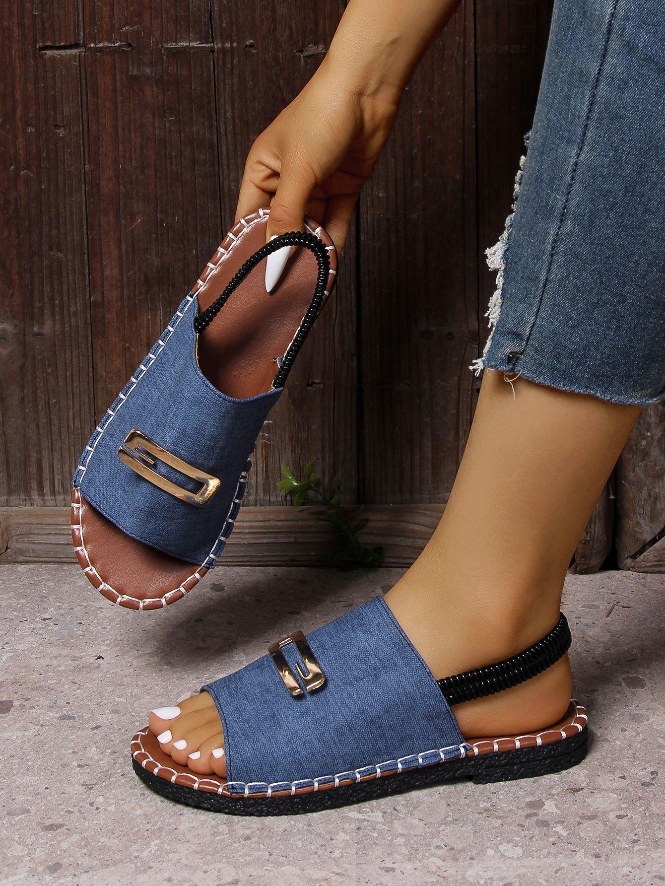 Comercio Exterior Nuevo Hebilla Grande Tela Sandalias de Una Línea para Mujer Verano Banda Elástica Planas Bordadas Sandalias de Playa