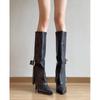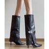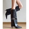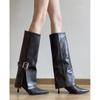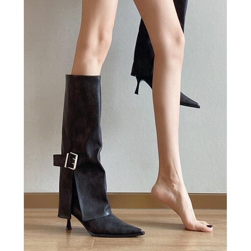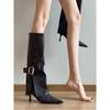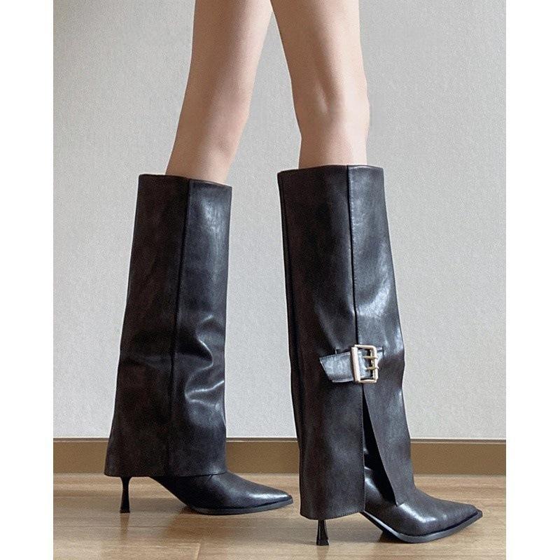 Botas de Caballero de Punta para Mujer con Hebilla Tacón Alto hasta la Rodilla Botas Altas Rectas de Tacón de Aguja Botas Largas Adelgazantes