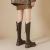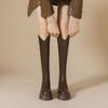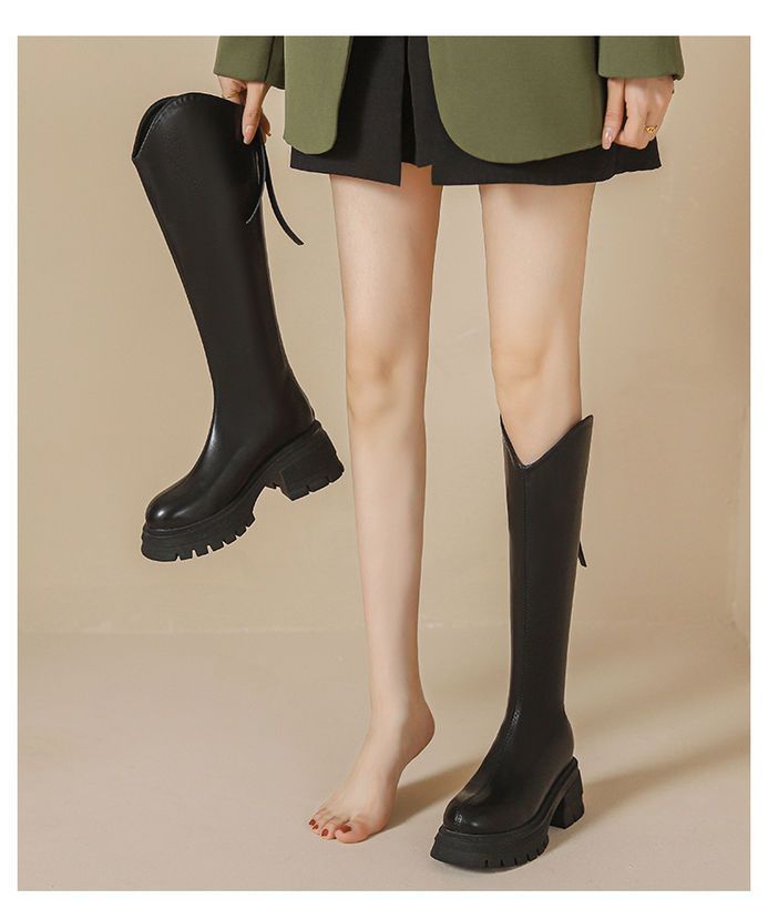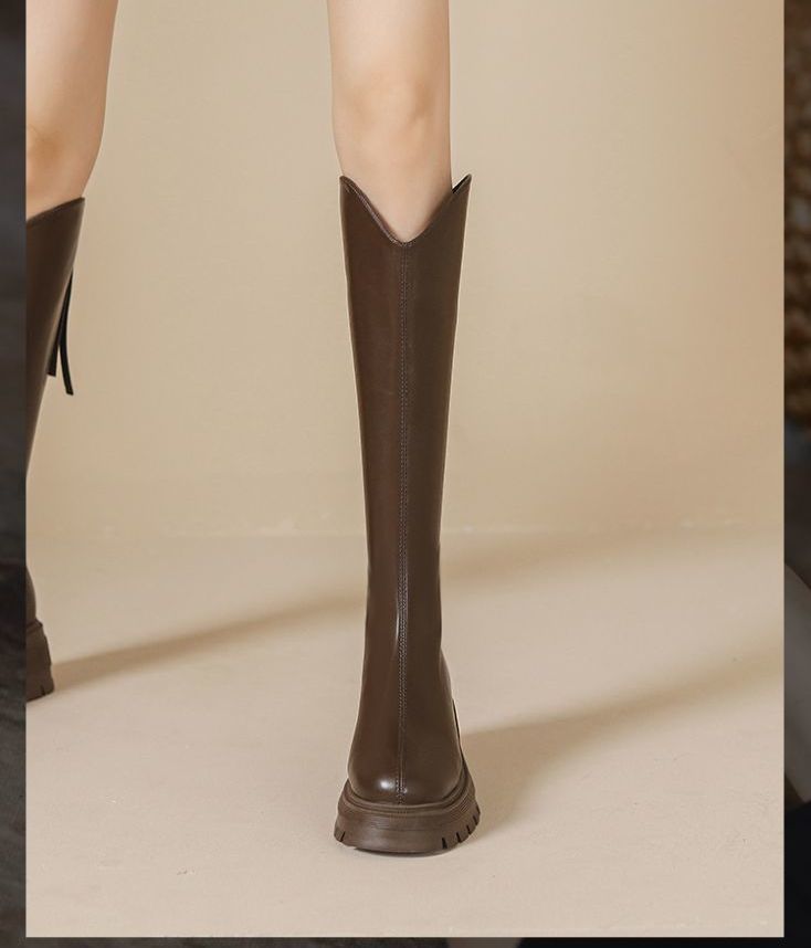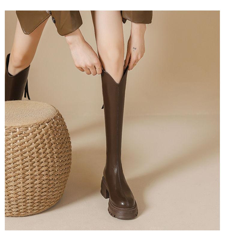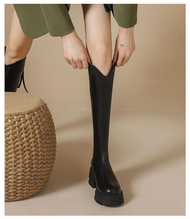 Otoño/Invierno 2025 Nuevas Botas de Caballero de Suela Gruesa Botas Largas Retro de Boca en V para Mujer Versátiles Moda de Celebridad de Internet Adelgazantes Botas hasta la Rodilla