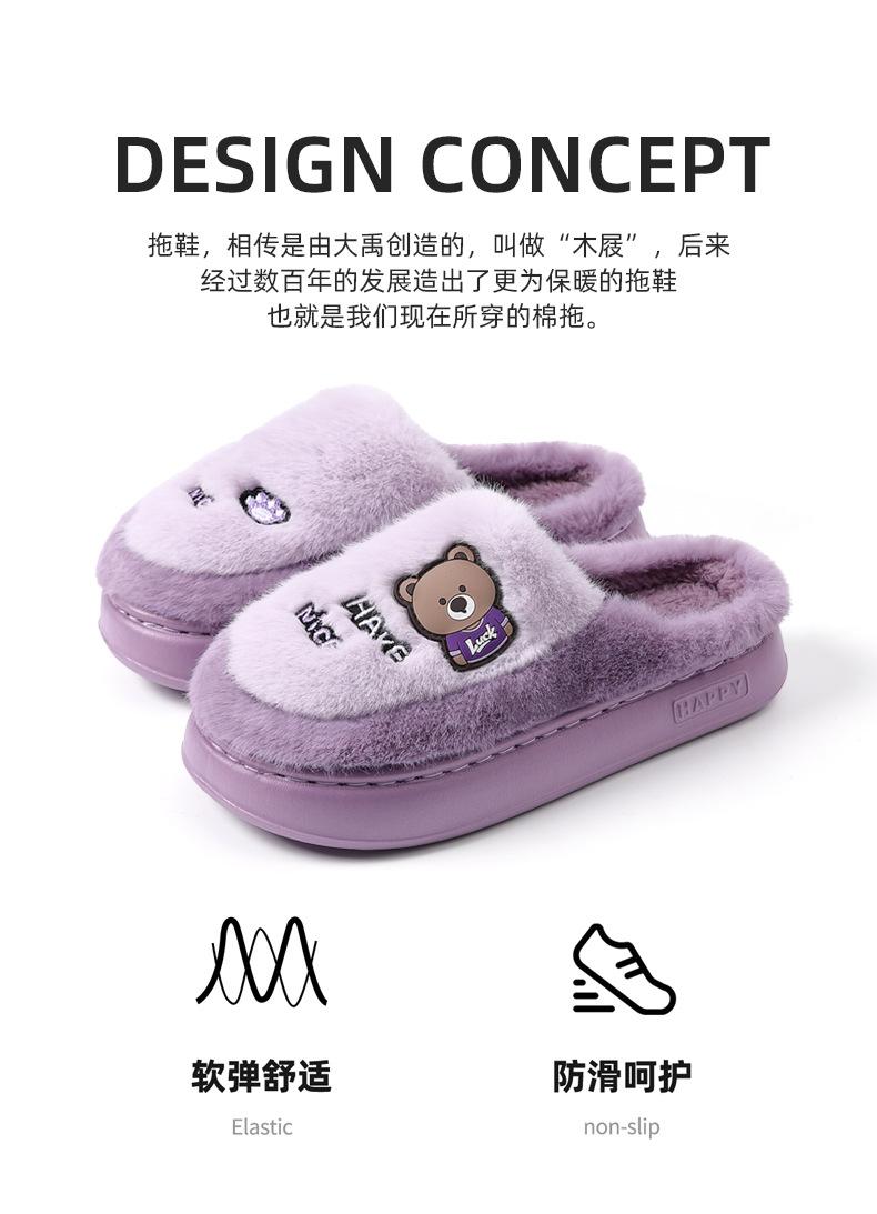 Pantuflas de Algodón para Hombre Invierno 2025 Nuevo Estilo Cubre-Talón Interior Hogar Suela Gruesa Cálido Lindo Felpa Pareja Zapatos de Algodón Mujer