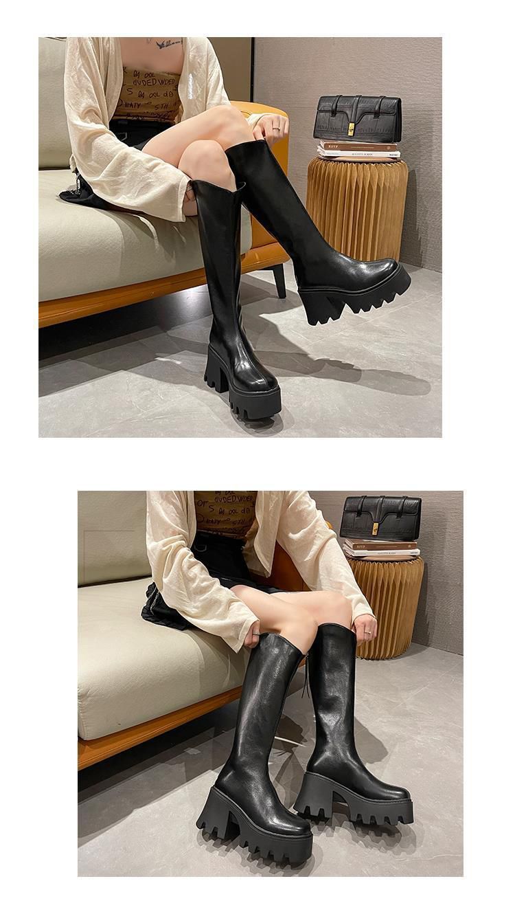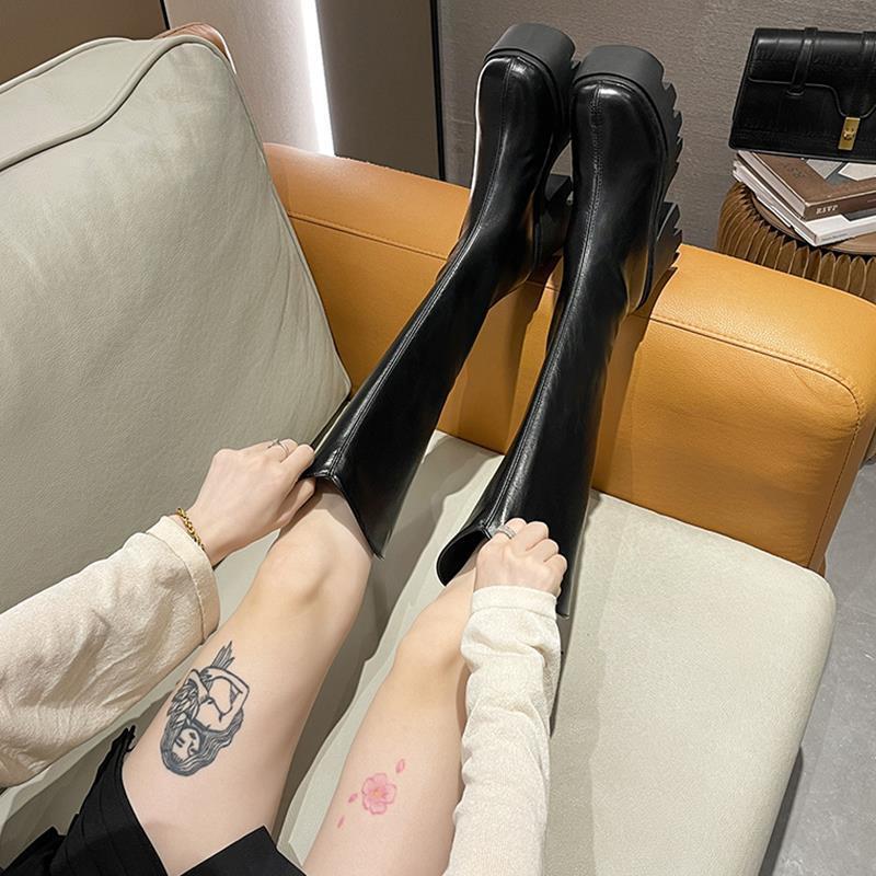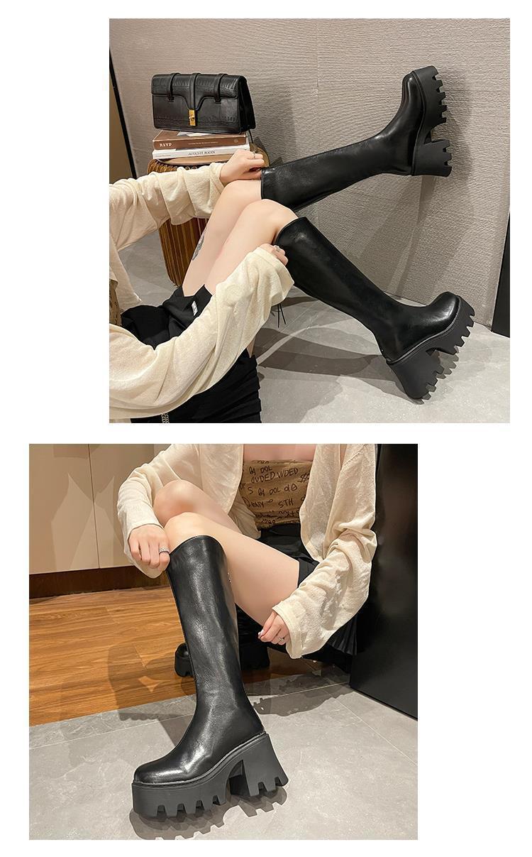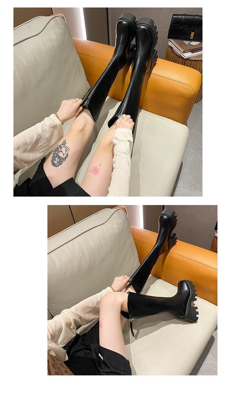 Botas largas cómodas de estilo británico para mujer, moda versátil, suela gruesa que aumenta la altura, botas retro de tubo alto, nuevo otoño e invierno 2025