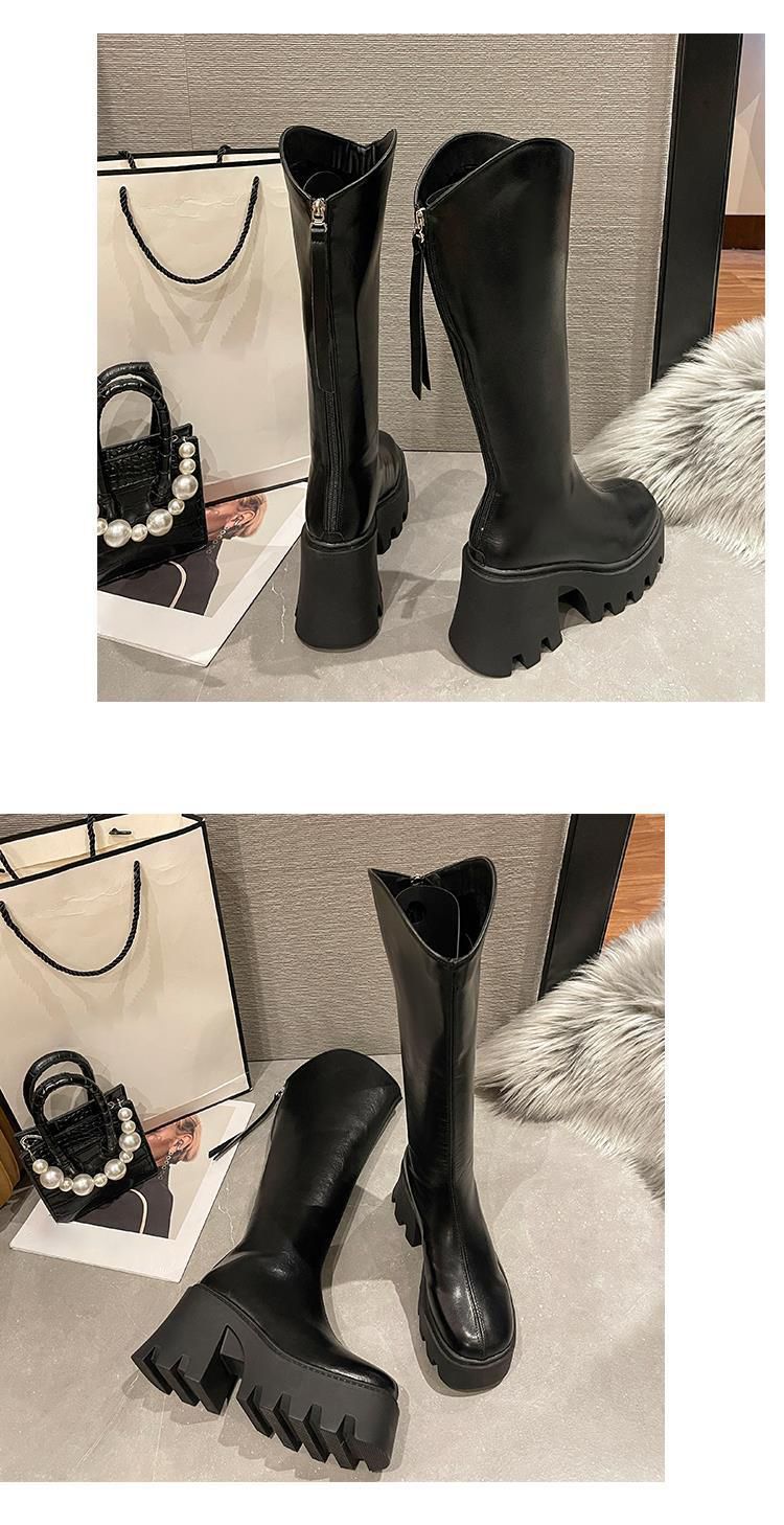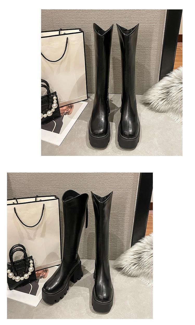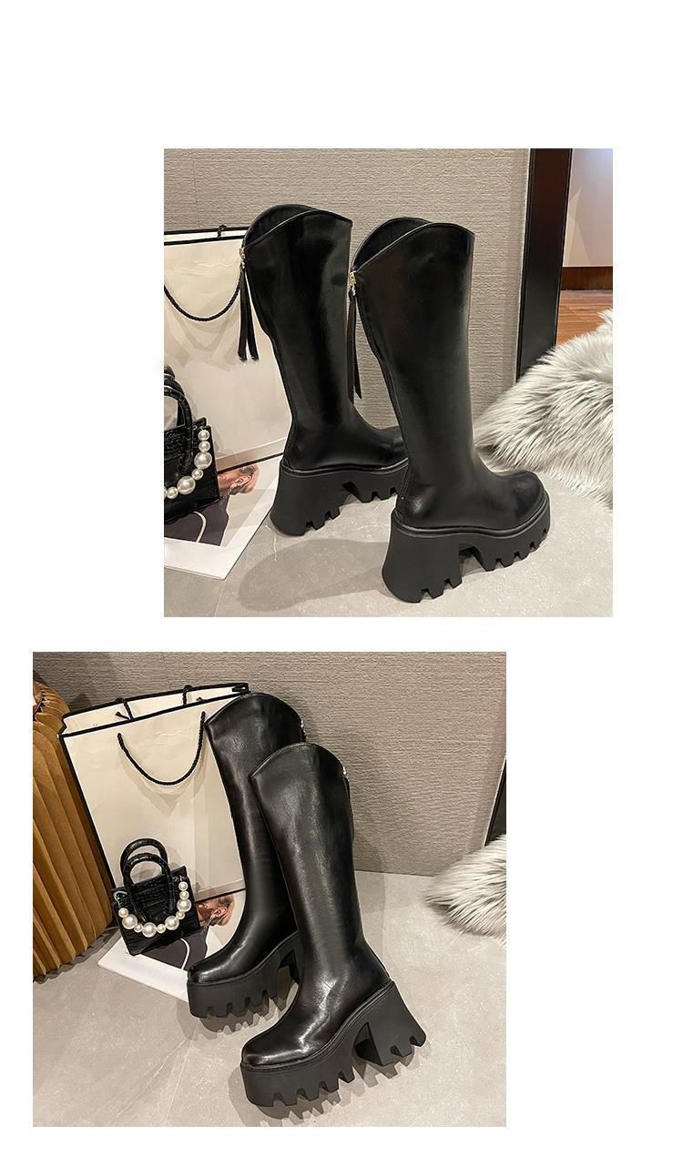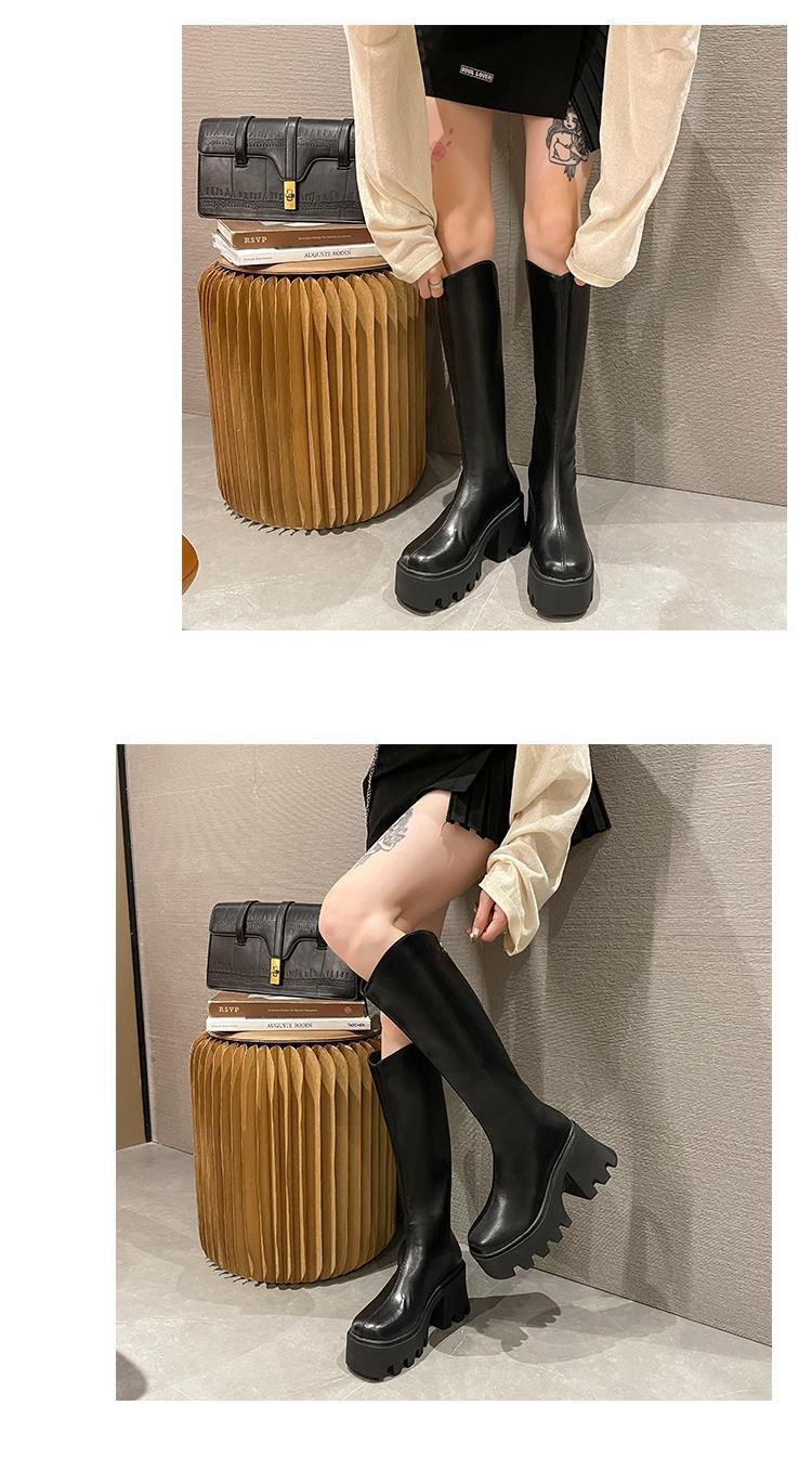 Botas largas cómodas de estilo británico para mujer, moda versátil, suela gruesa que aumenta la altura, botas retro de tubo alto, nuevo otoño e invierno 2025