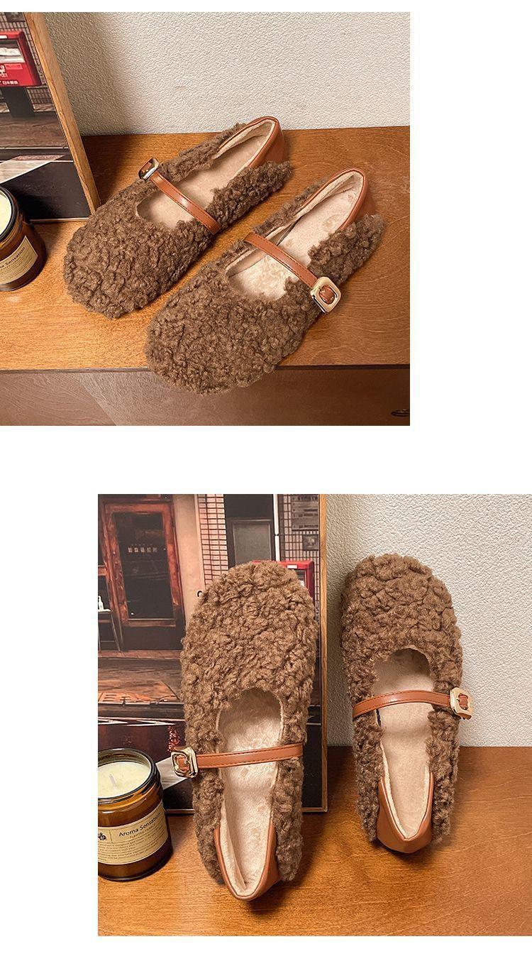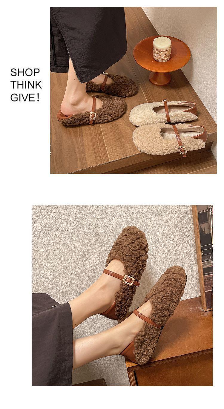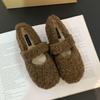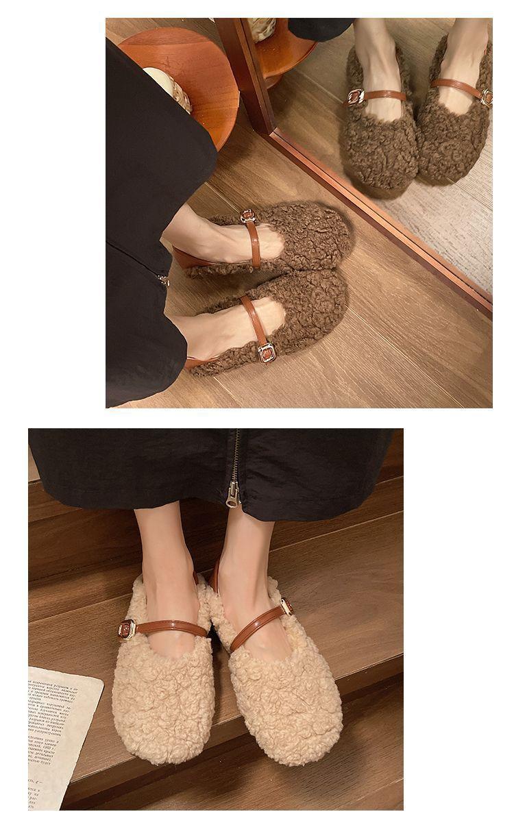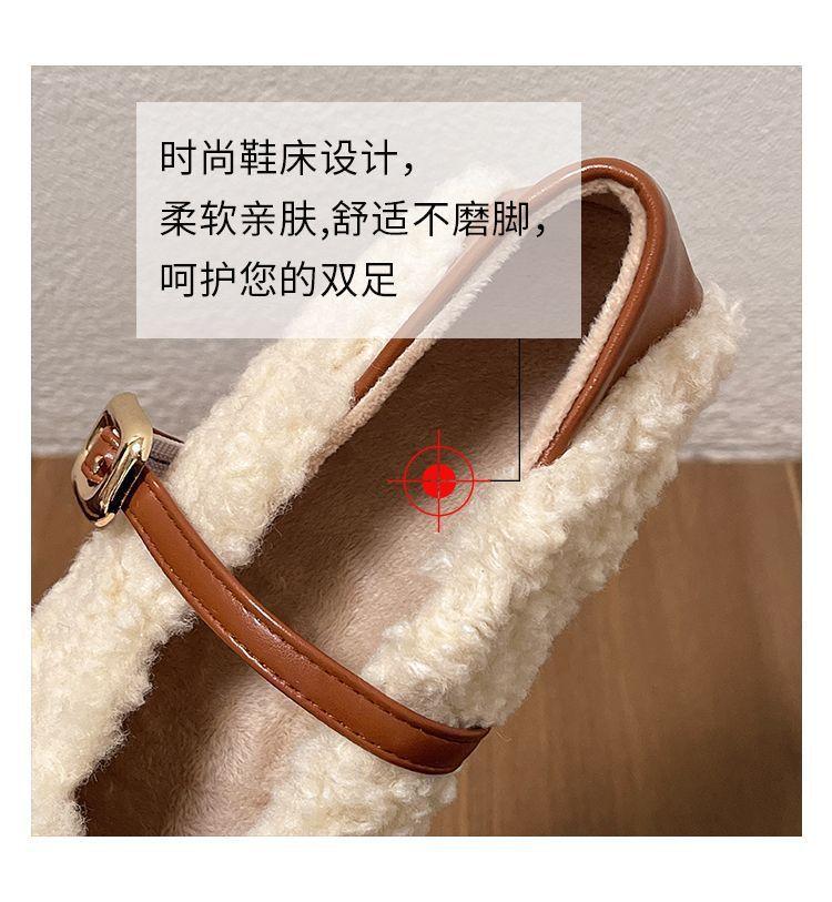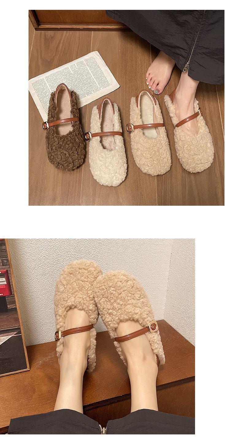 Ropa exterior más zapatos Mary Jane de terciopelo, zapatos peludos de boca baja, zapatos perezosos de un paso con suela suave, zapatos de frijol para mujer 2025 otoño e invierno nuevos