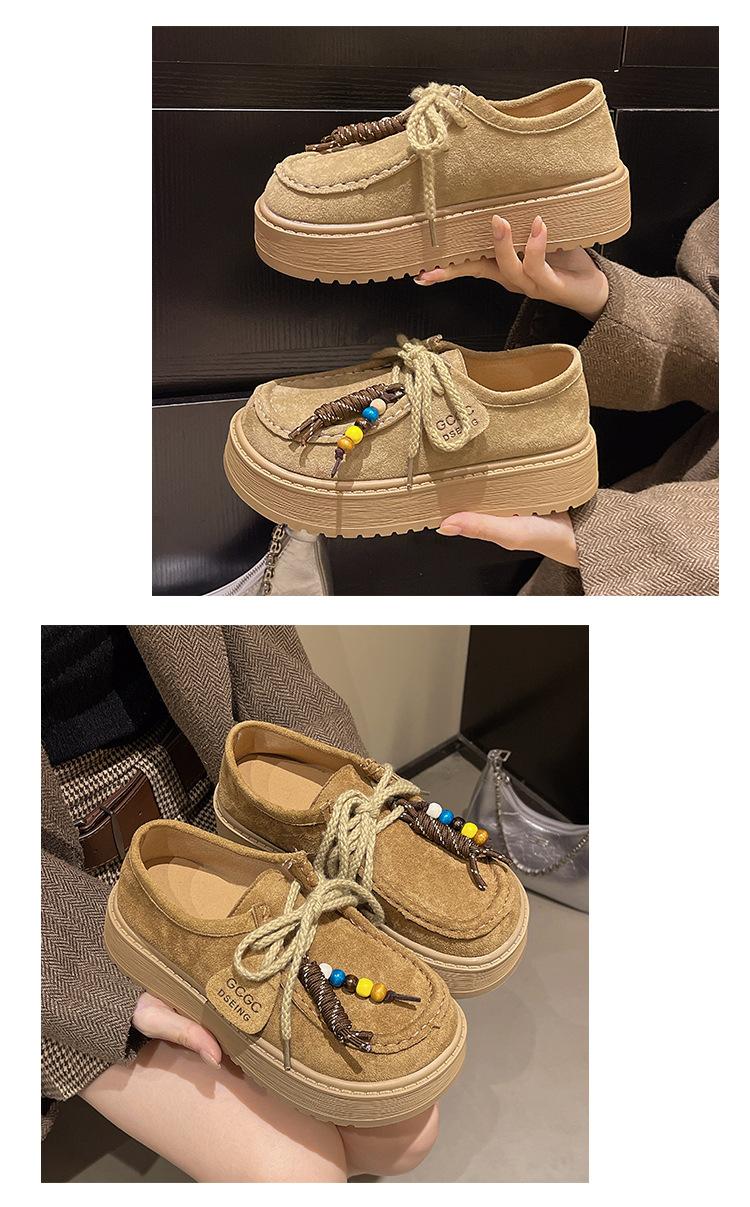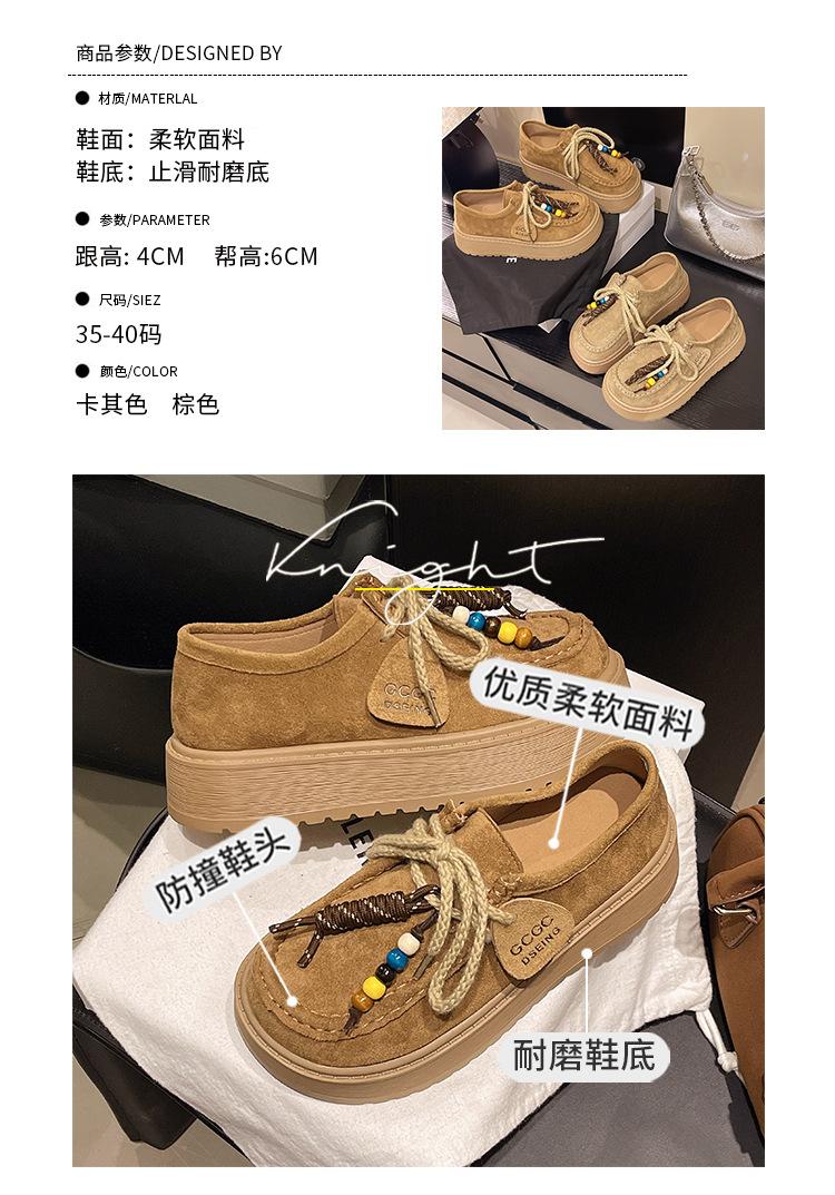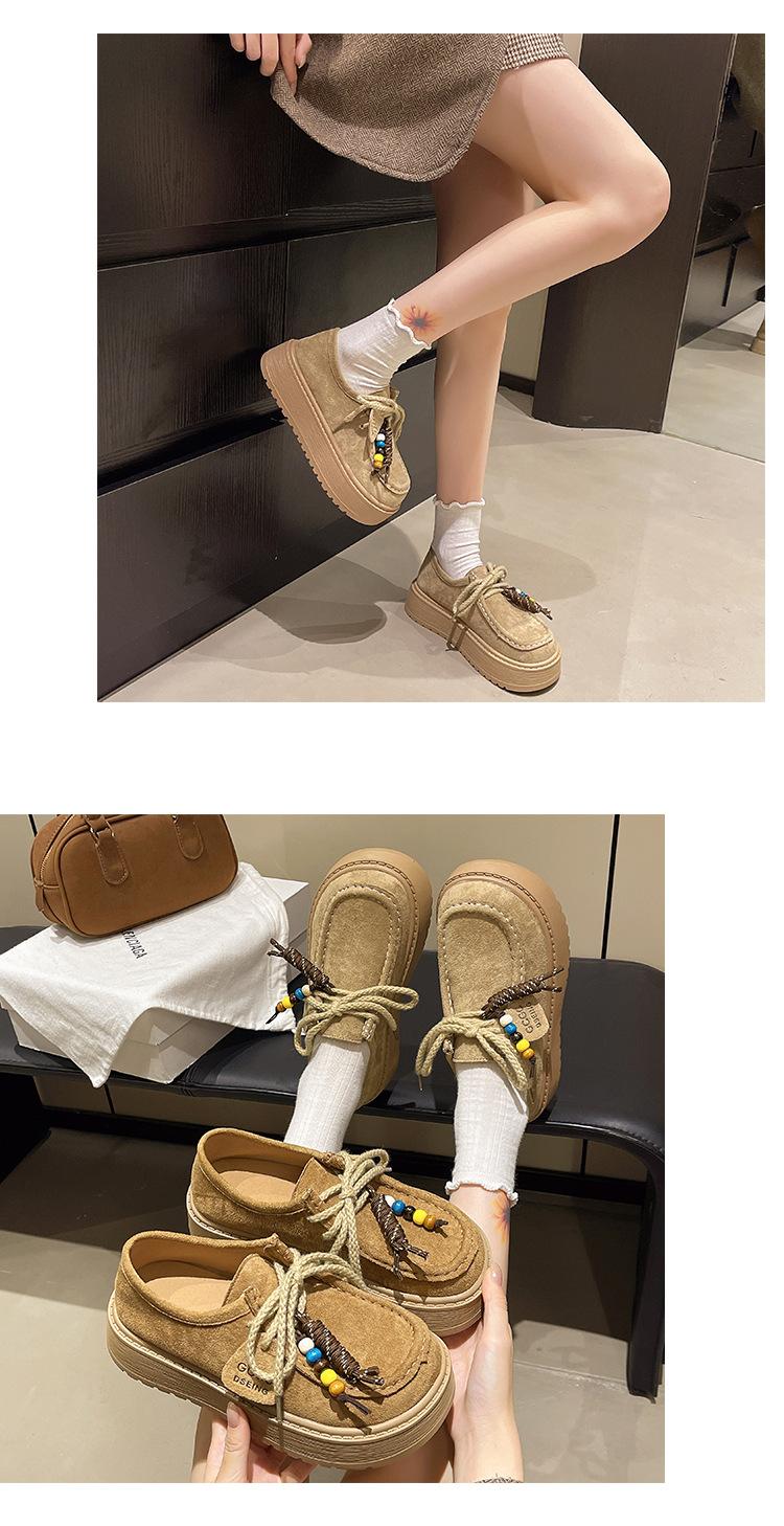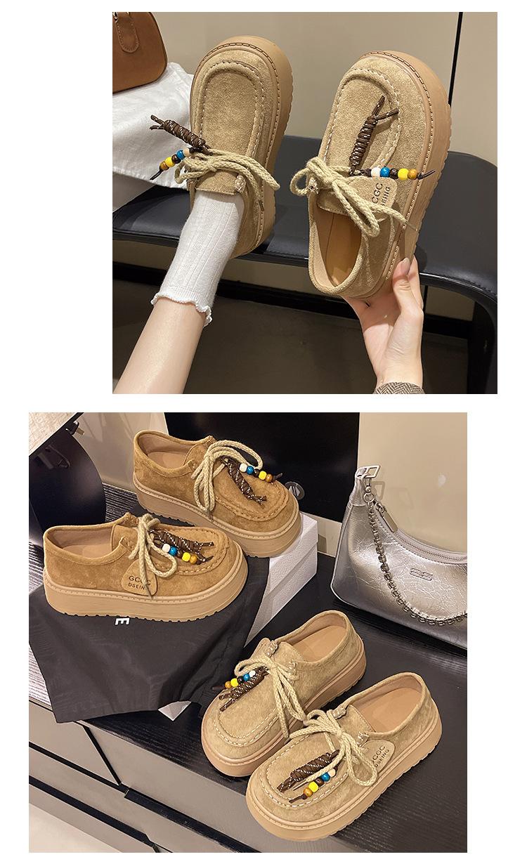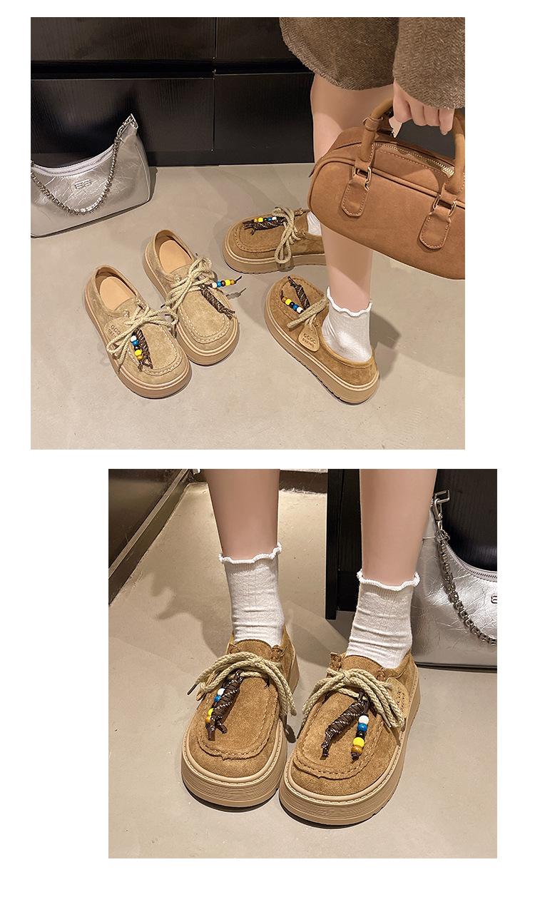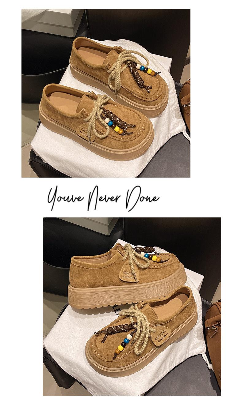 Zapatos individuales de moda de estilo étnico para mujer 2025 otoño nuevos esmerilados con cordones literarios retro de suela gruesa mocasines de boca baja para mujer