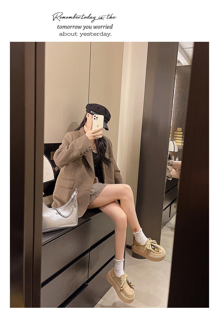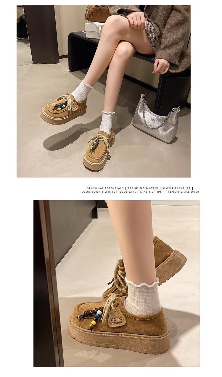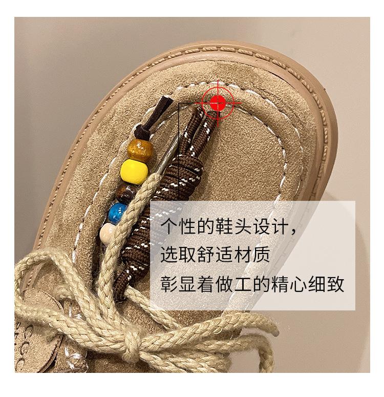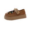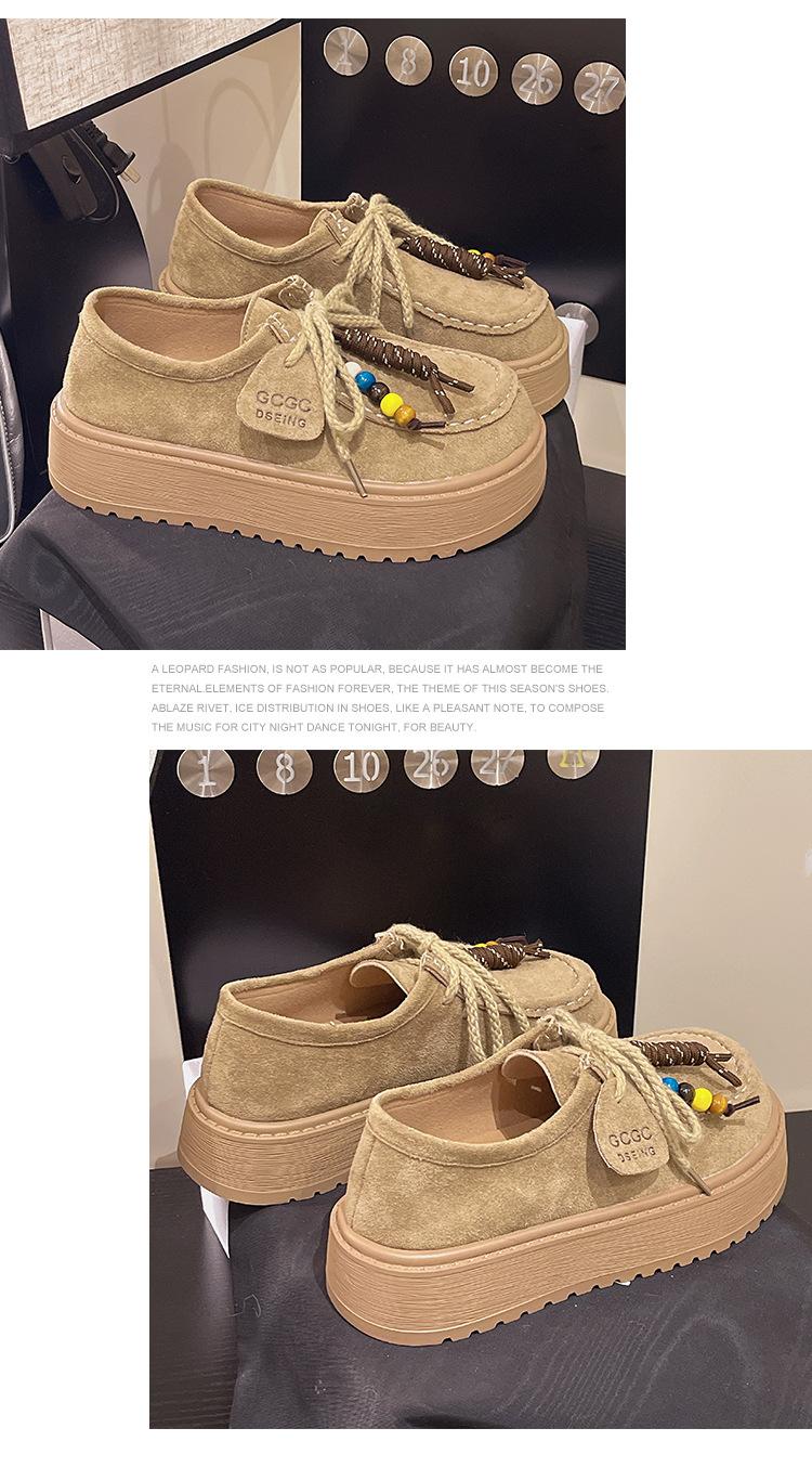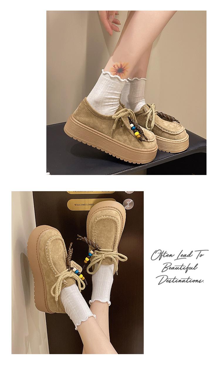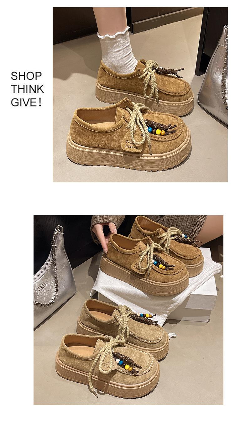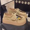 Zapatos individuales de moda de estilo étnico para mujer 2025 otoño nuevos esmerilados con cordones literarios retro de suela gruesa mocasines de boca baja para mujer