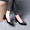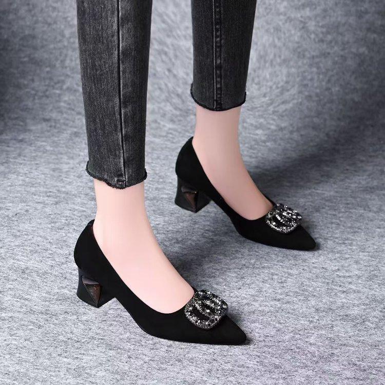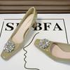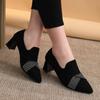 Zapatos individuales de tacón medio con pedrería de corte bajo francés para mujer, otoño 2025, nuevos, versátiles, de moda, con temperamento, tacones altos