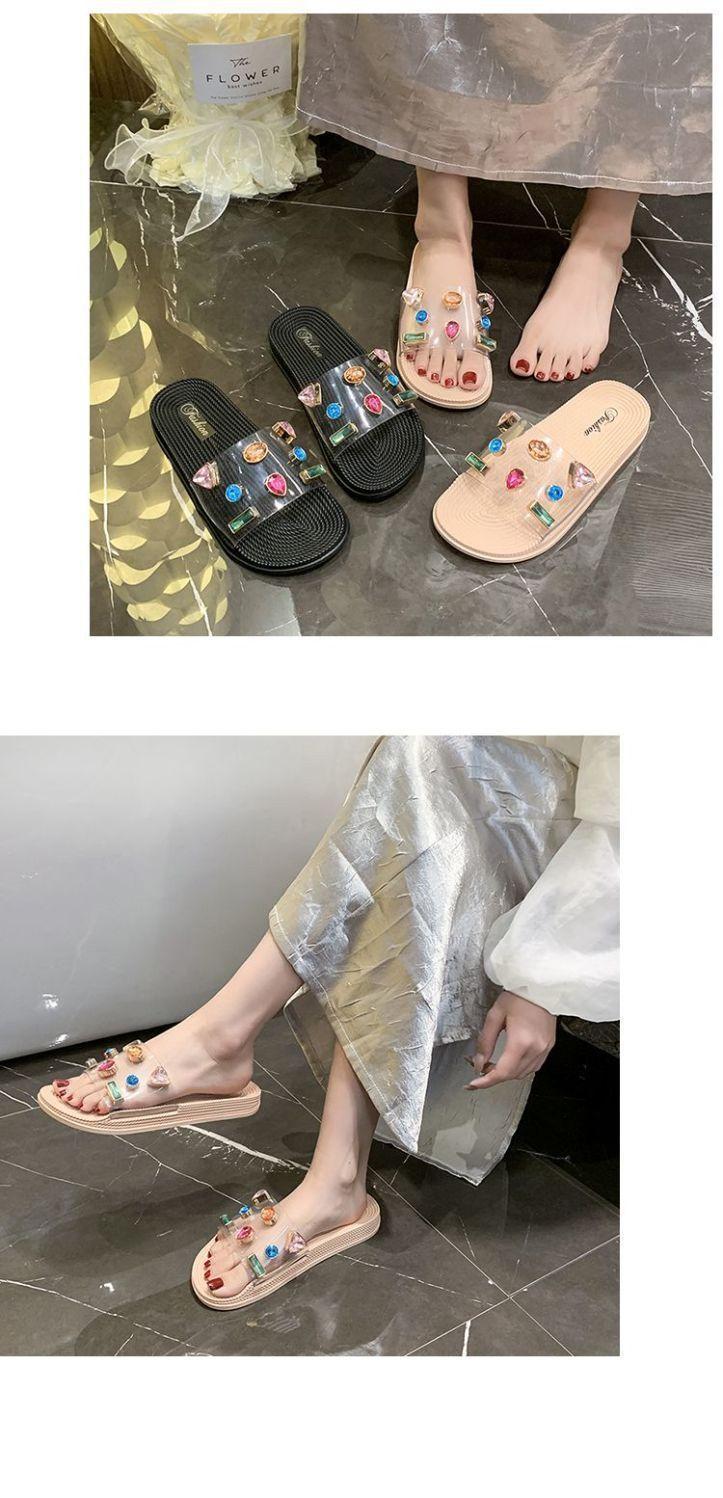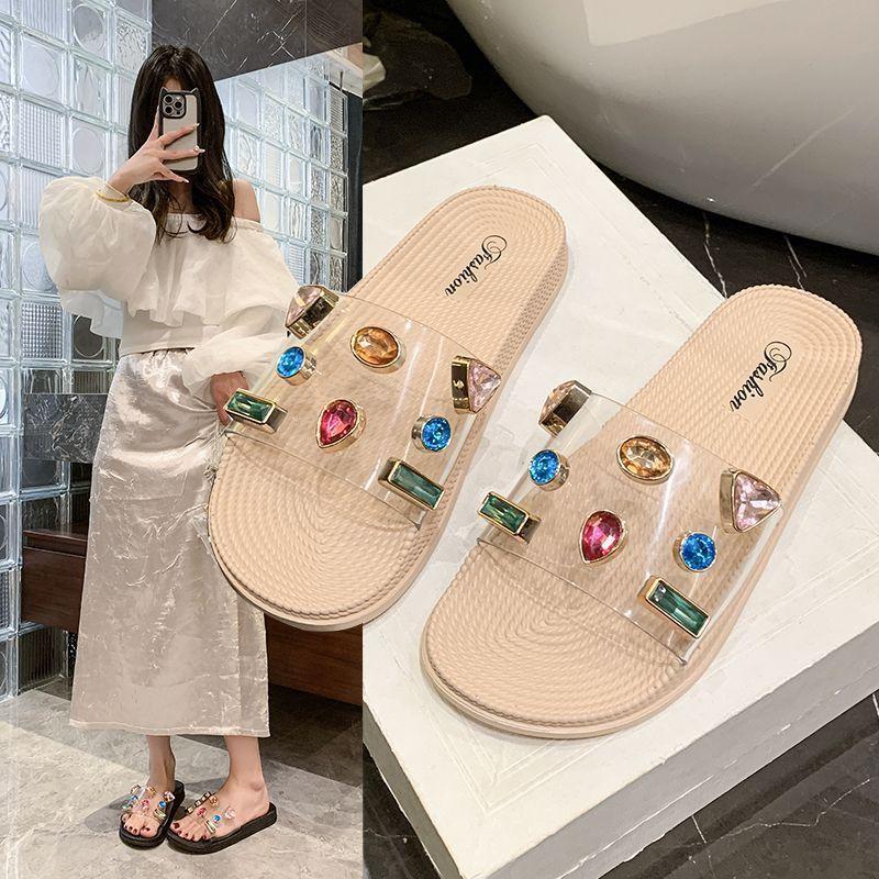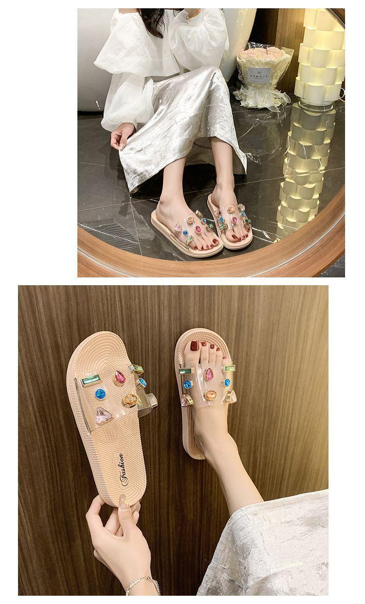 Sandalias Mujer Casual Transpirables Pedrería Chanclas 2025 Verano Otoño Nuevo Estilo Caliente Moda Cómodas Suela Plana Zapatillas de Suela Plana