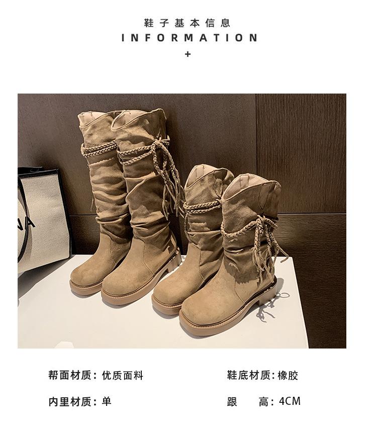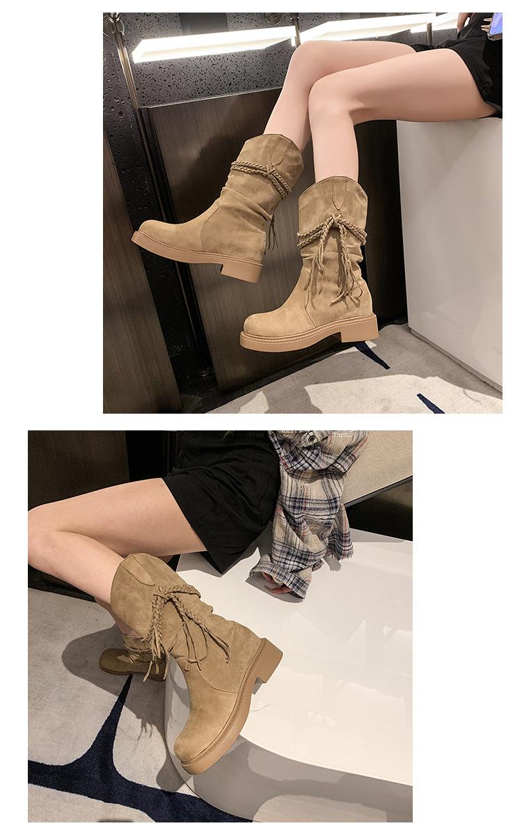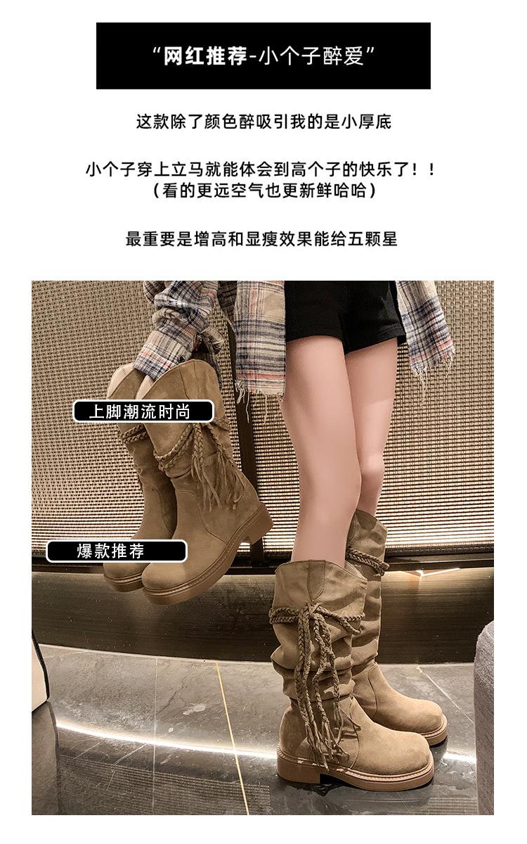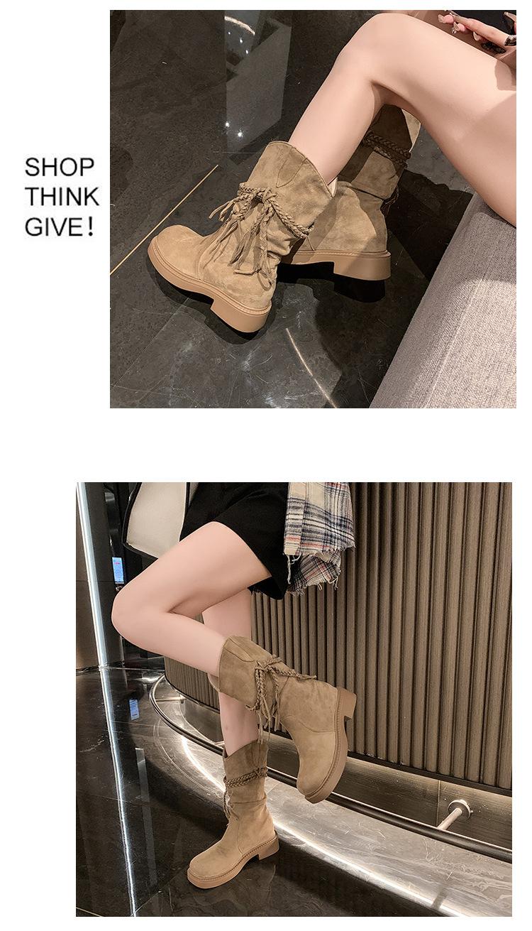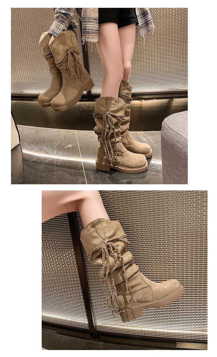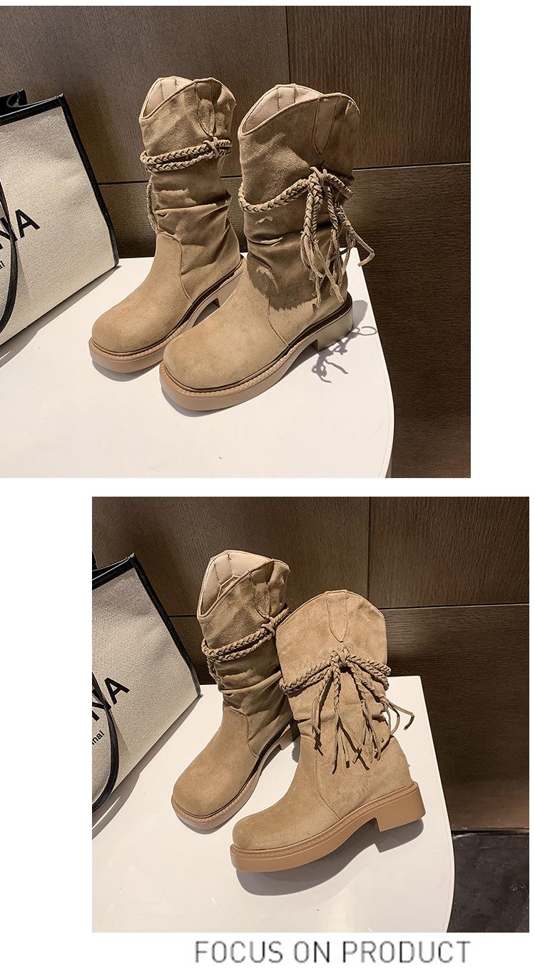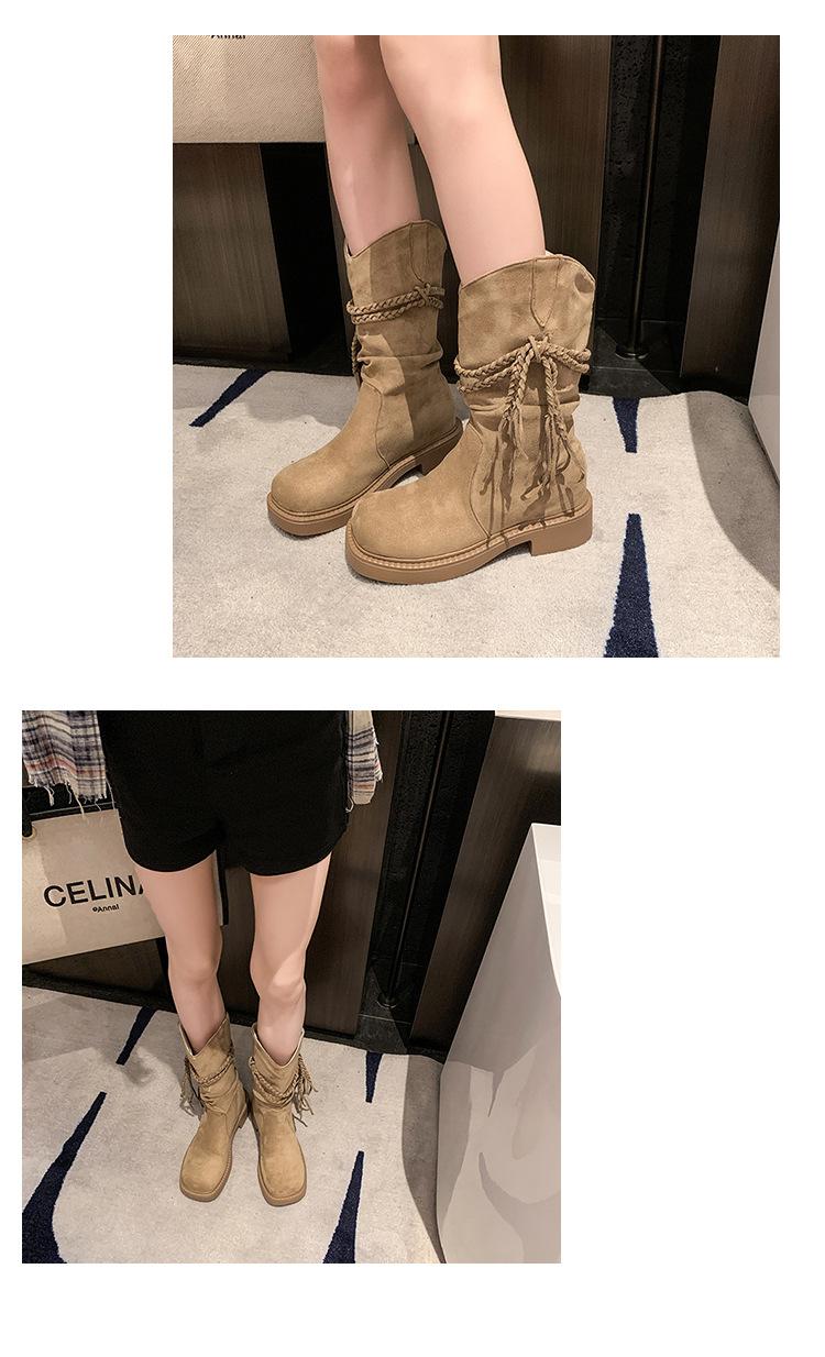 Botas de Tacón Apilado con Flecos Tejidos Estilo Hada para Mujer 2025 Otoño/Invierno Nuevas Botas de Plataforma Martin hasta Media Pantorrilla Botas de Moda Mujer