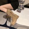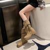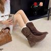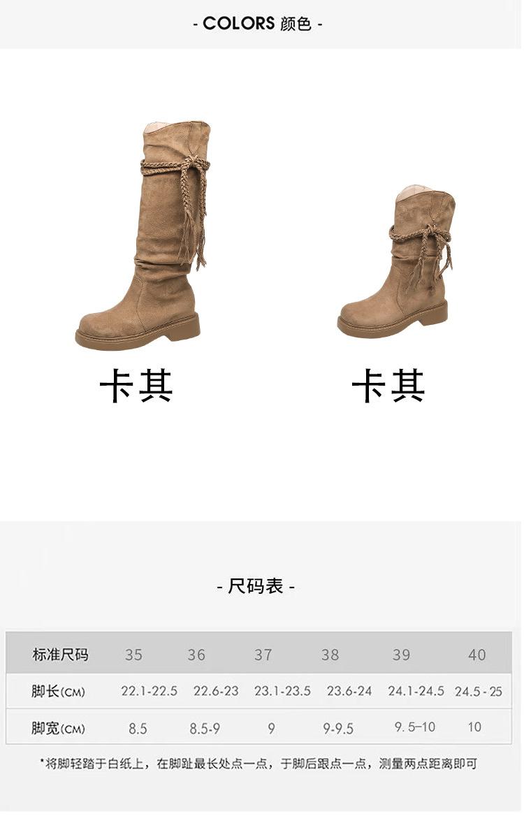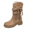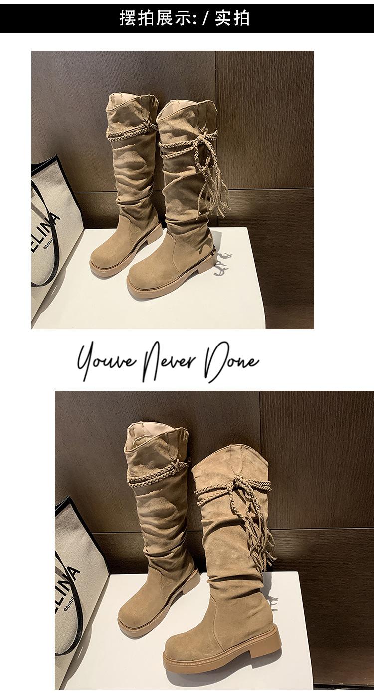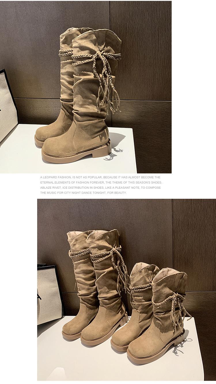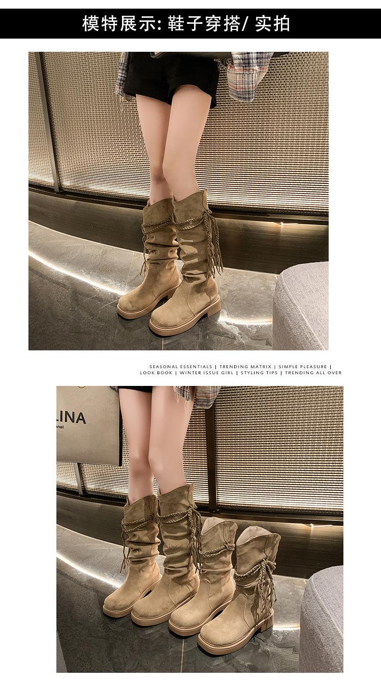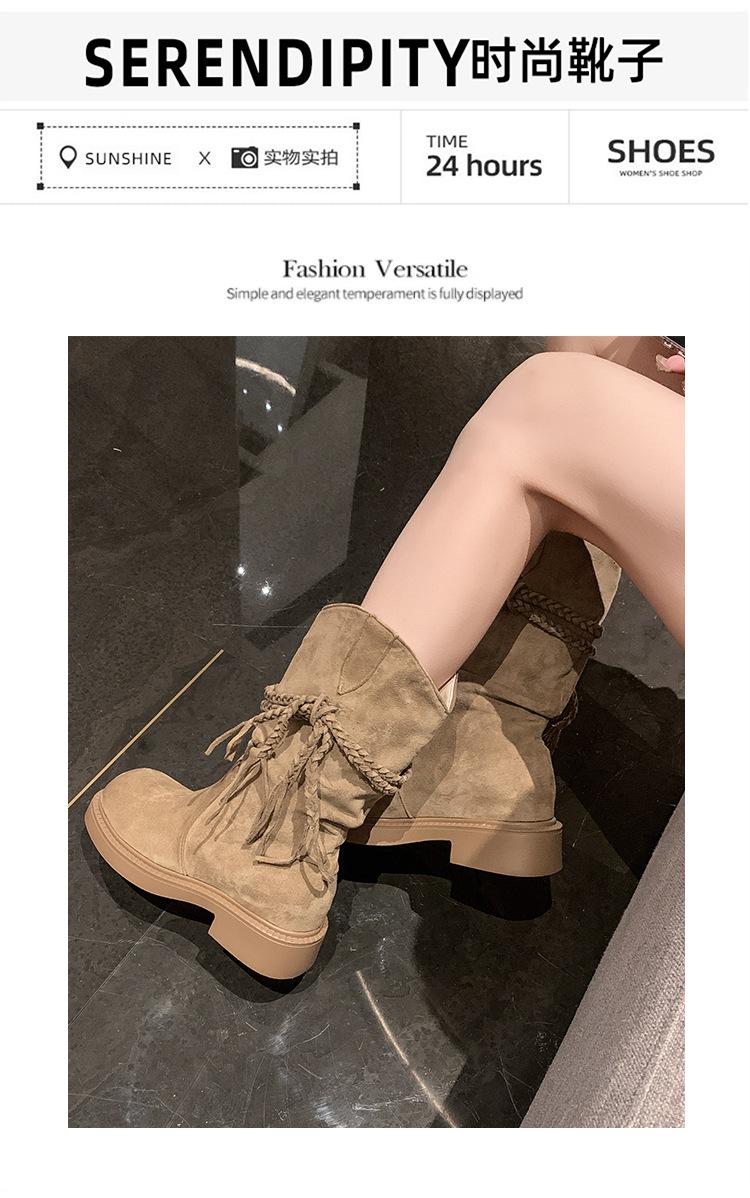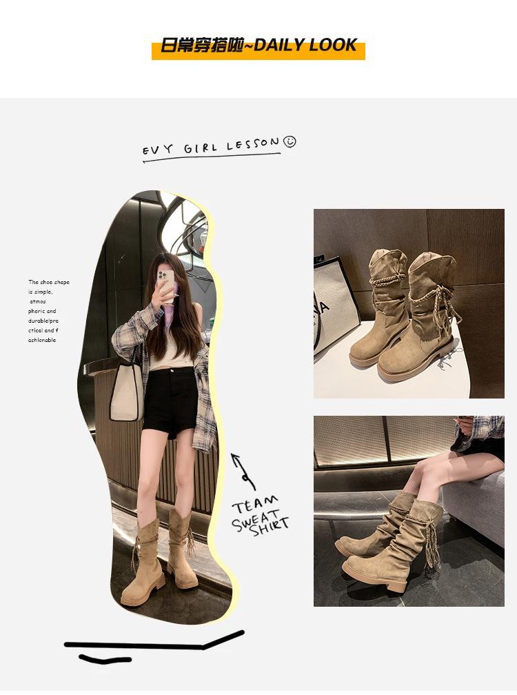 Botas de Tacón Apilado con Flecos Tejidos Estilo Hada para Mujer 2025 Otoño/Invierno Nuevas Botas de Plataforma Martin hasta Media Pantorrilla Botas de Moda Mujer