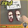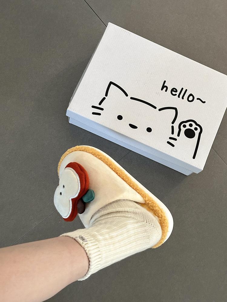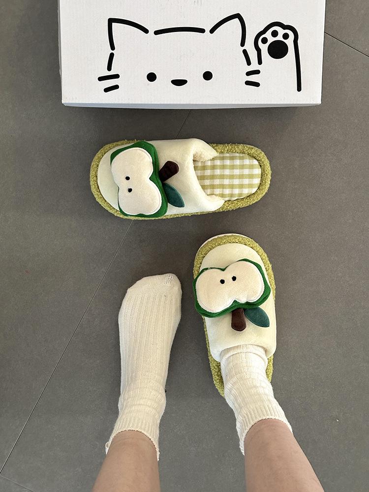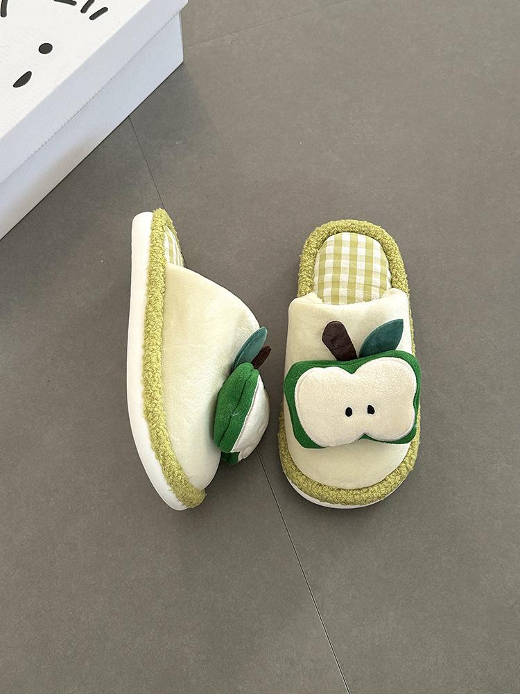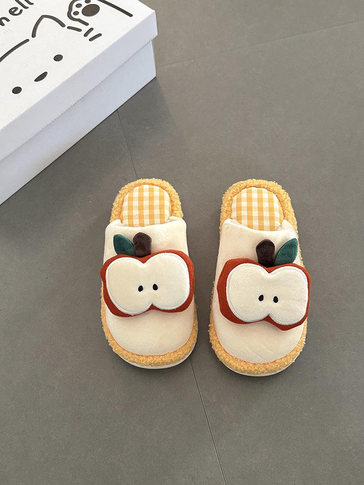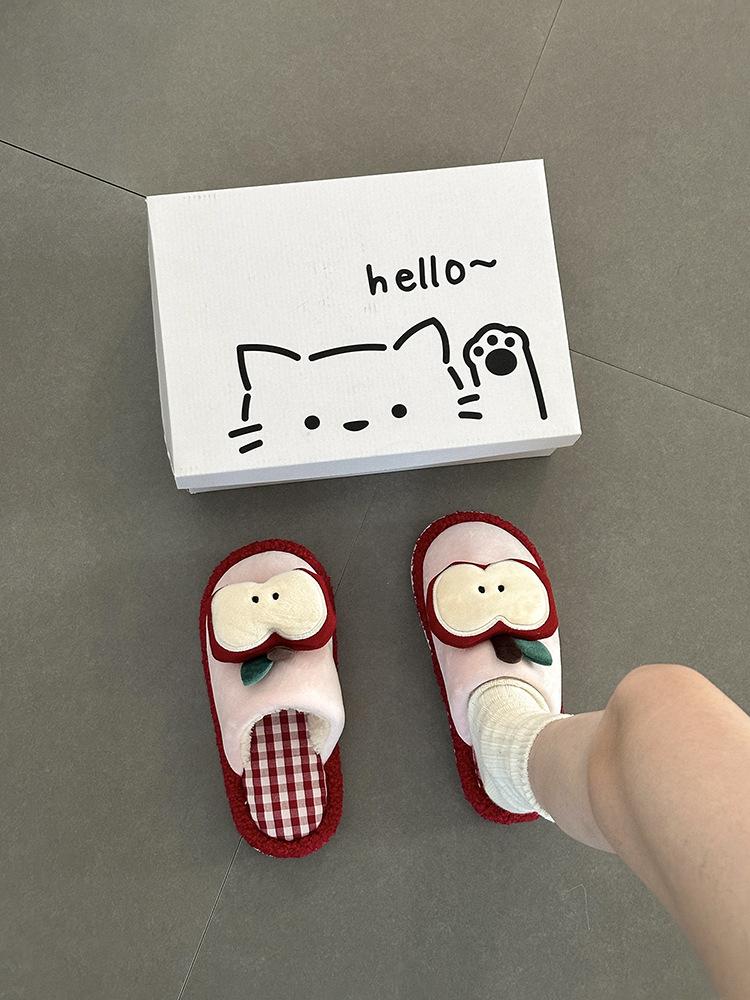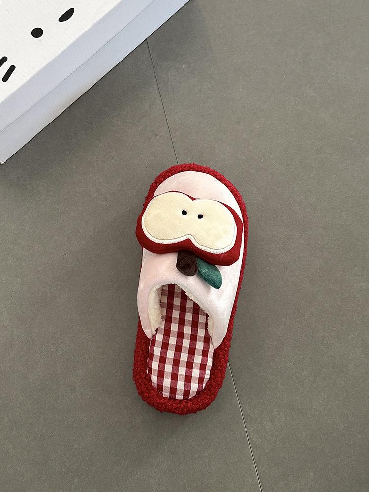 2025 Nuevas Pantuflas Peludas a Cuadros Estilo Apple para Mujer Otoño Invierno Lindas de Dibujos Animados para Casa Interior Punta Cerrada Algodón