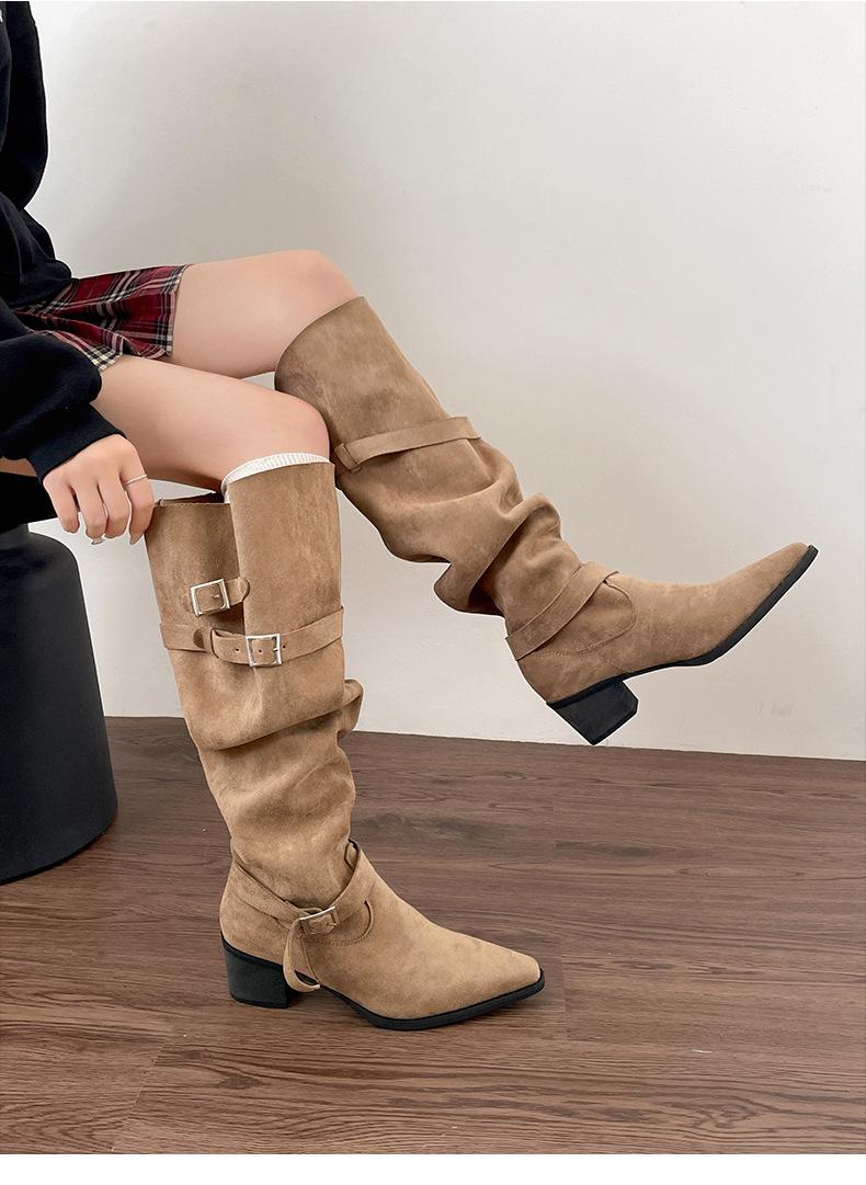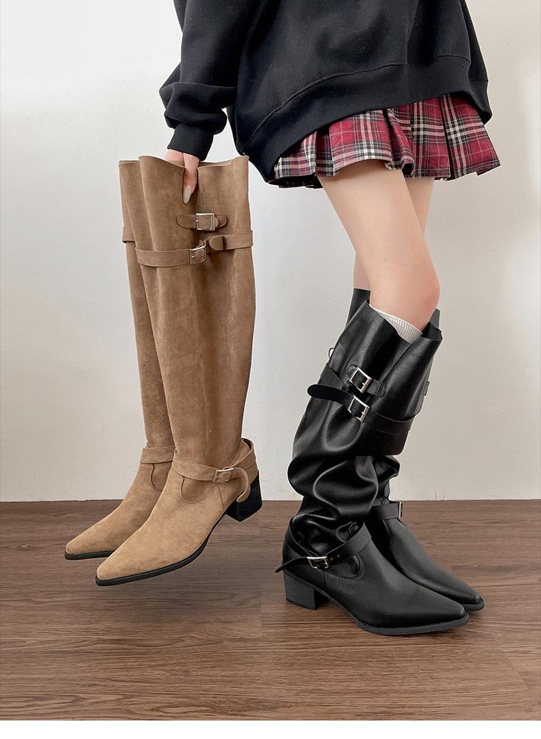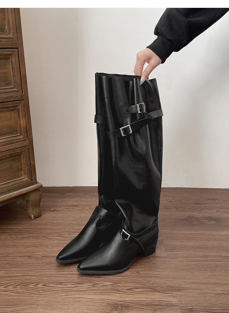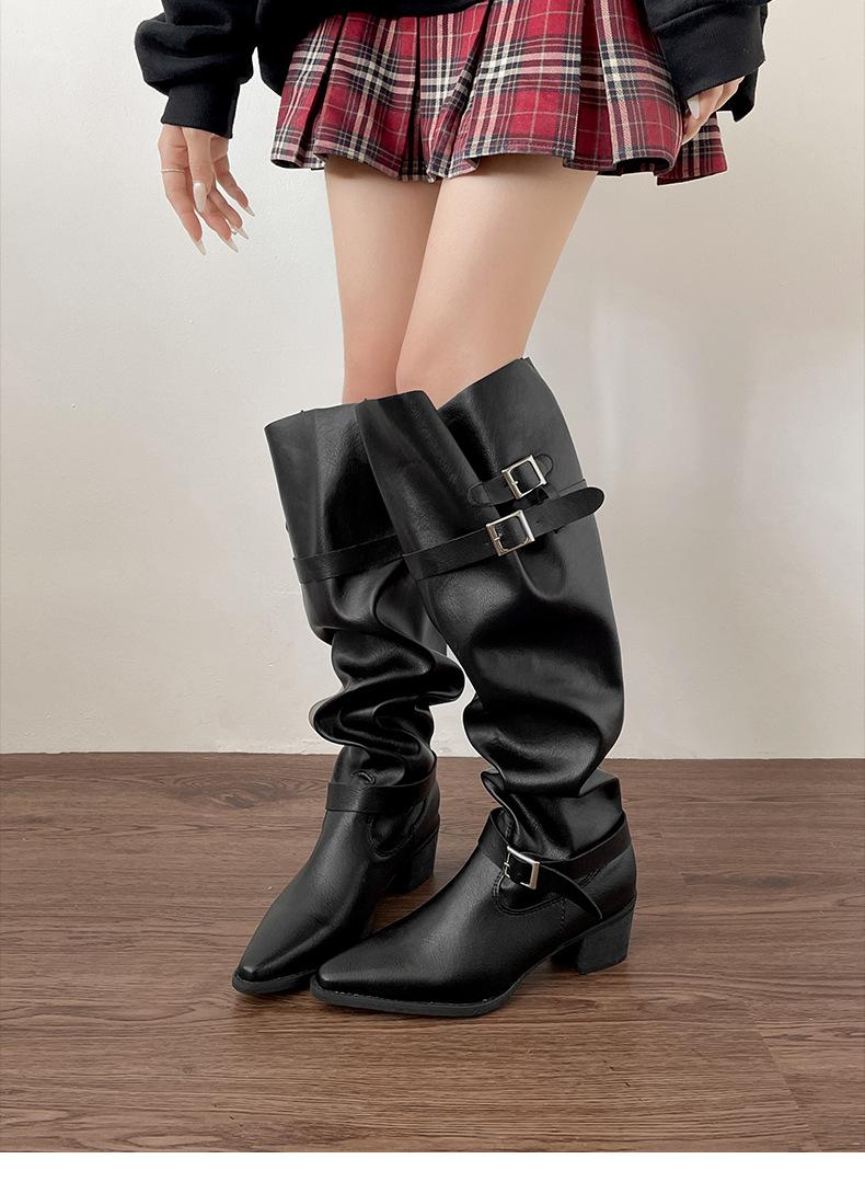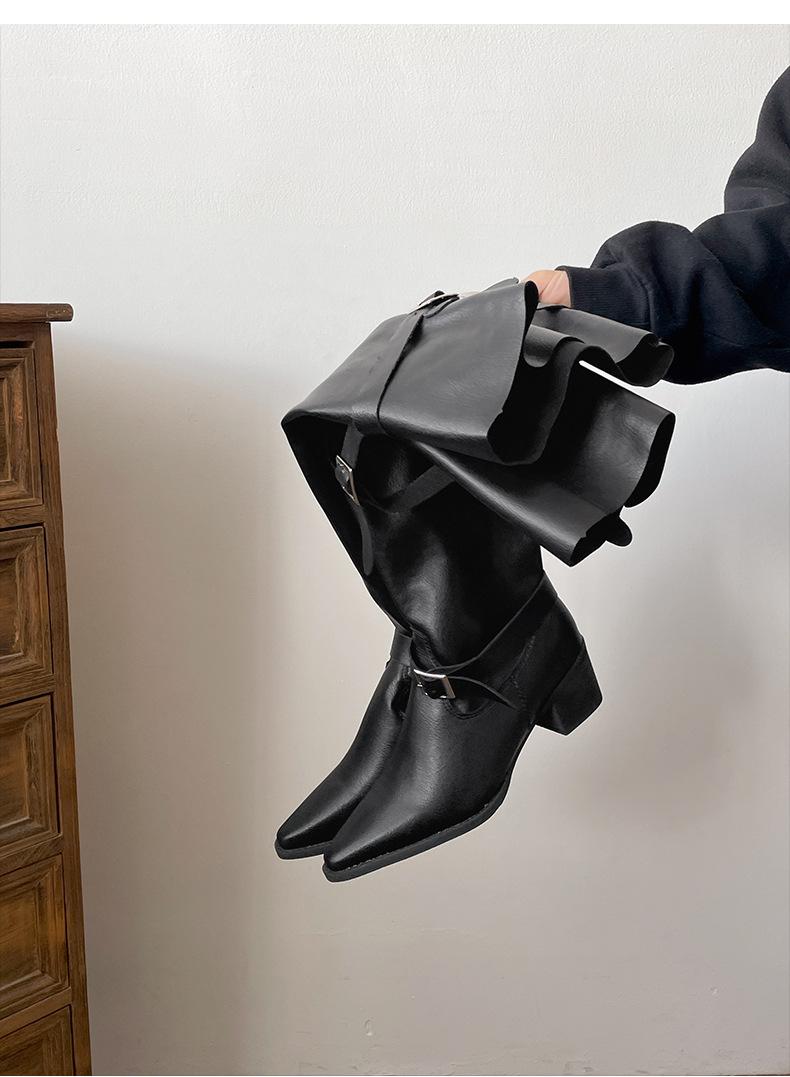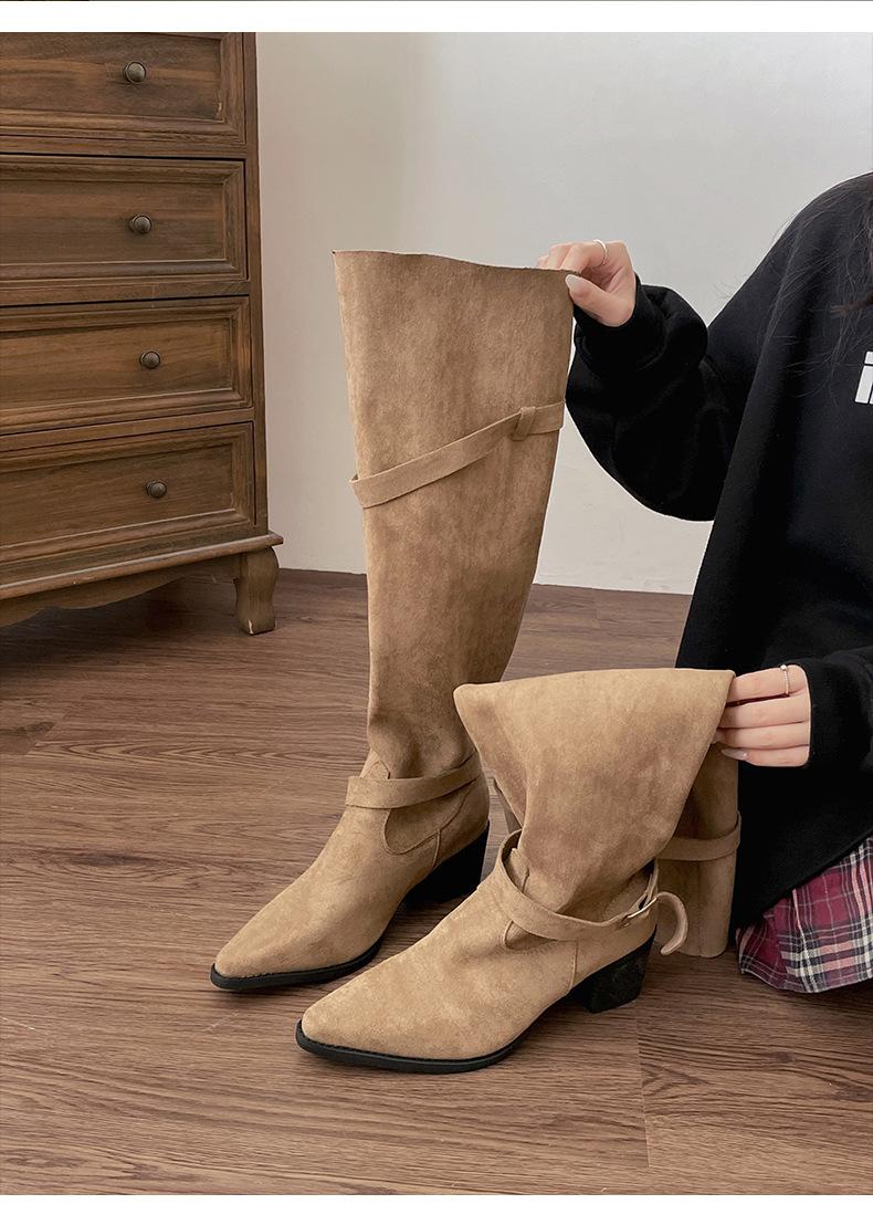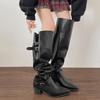 Botas altas hasta la rodilla para mujer estilo reina retro de tacón grueso y punta afilada 2025 nuevo otoño estilo británico adelgazantes botas de caballero