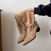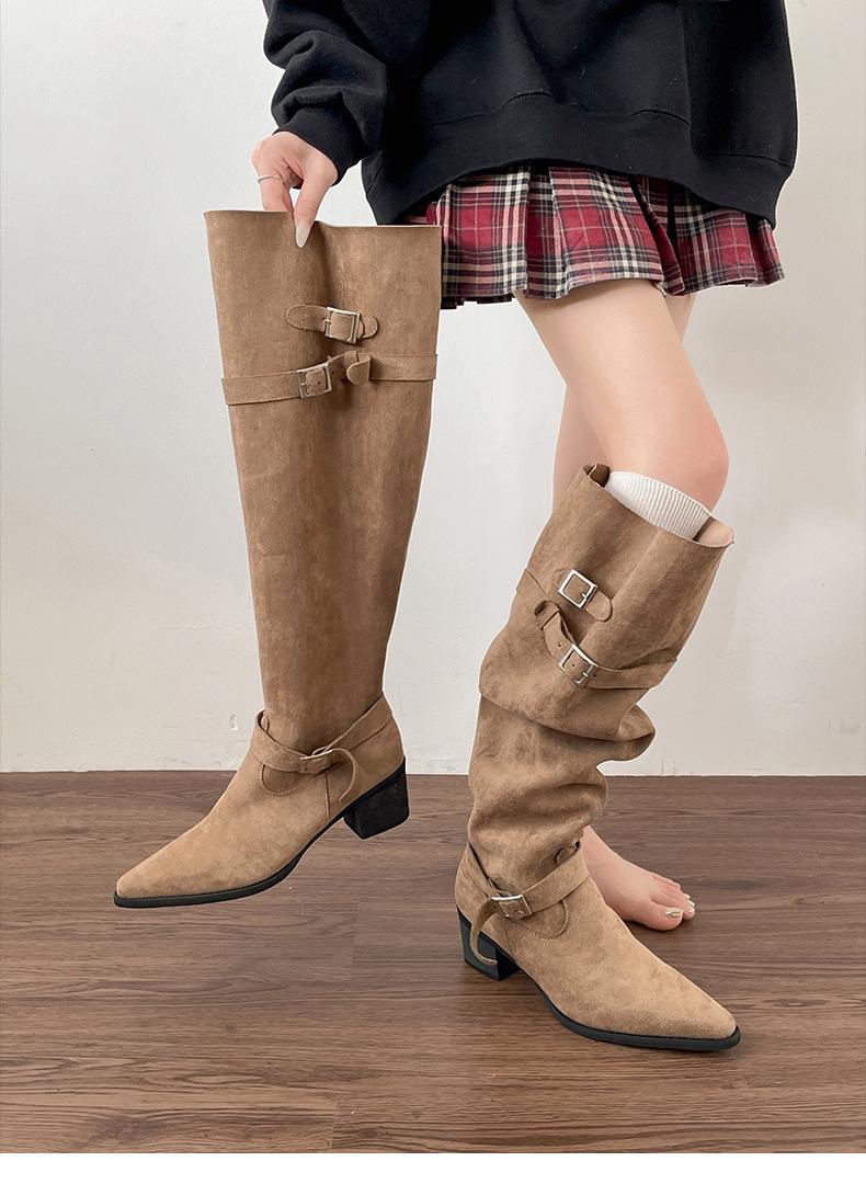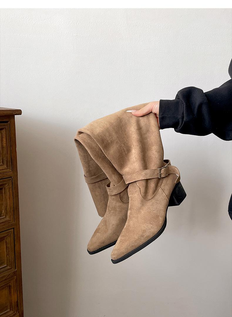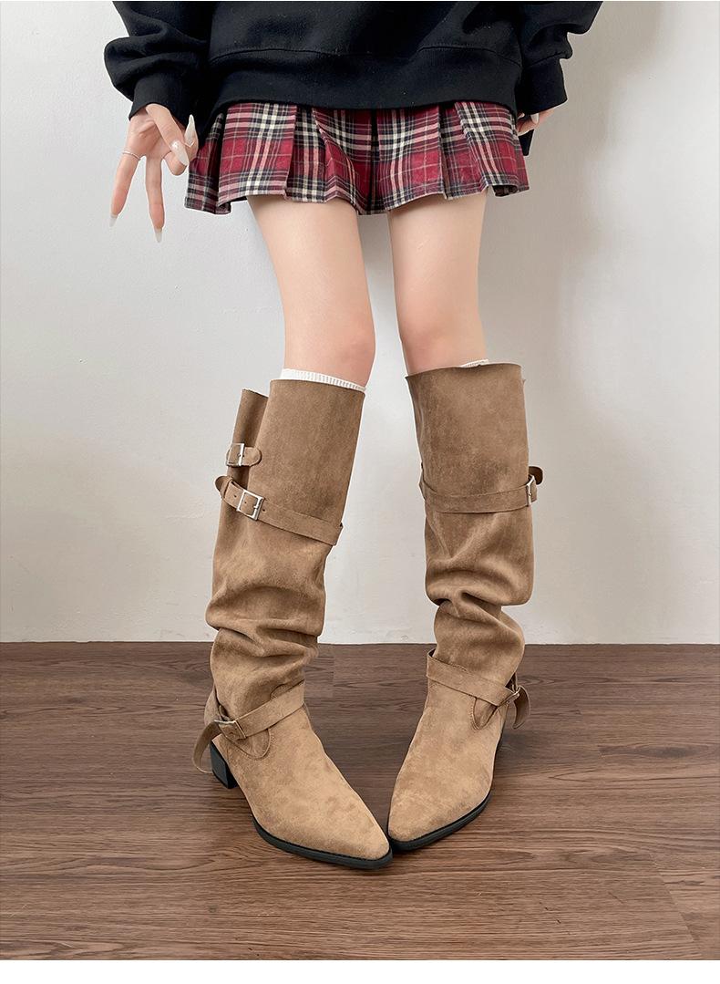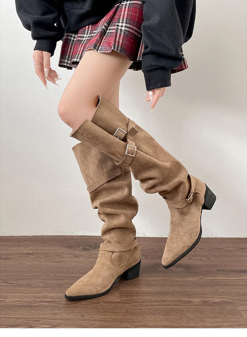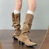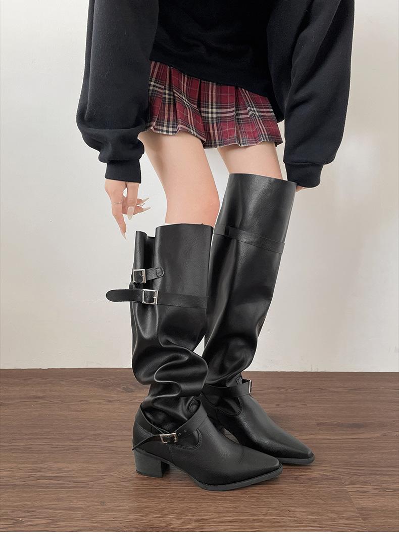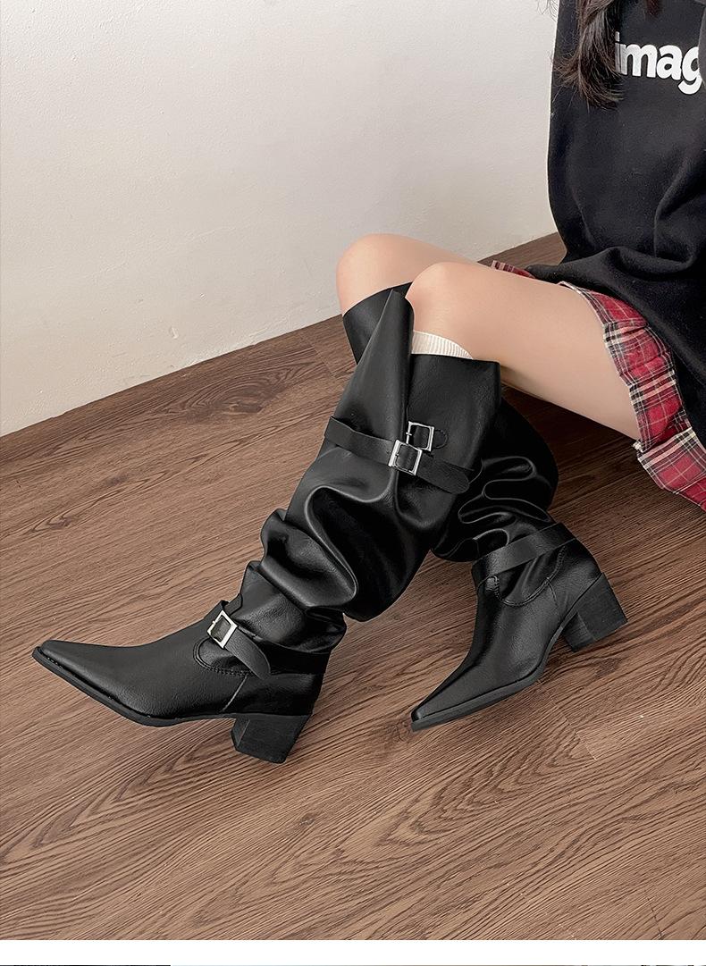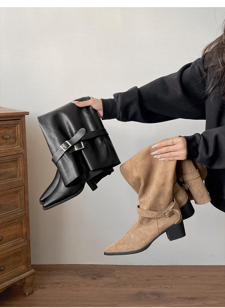 Botas altas hasta la rodilla para mujer estilo reina retro de tacón grueso y punta afilada 2025 nuevo otoño estilo británico adelgazantes botas de caballero