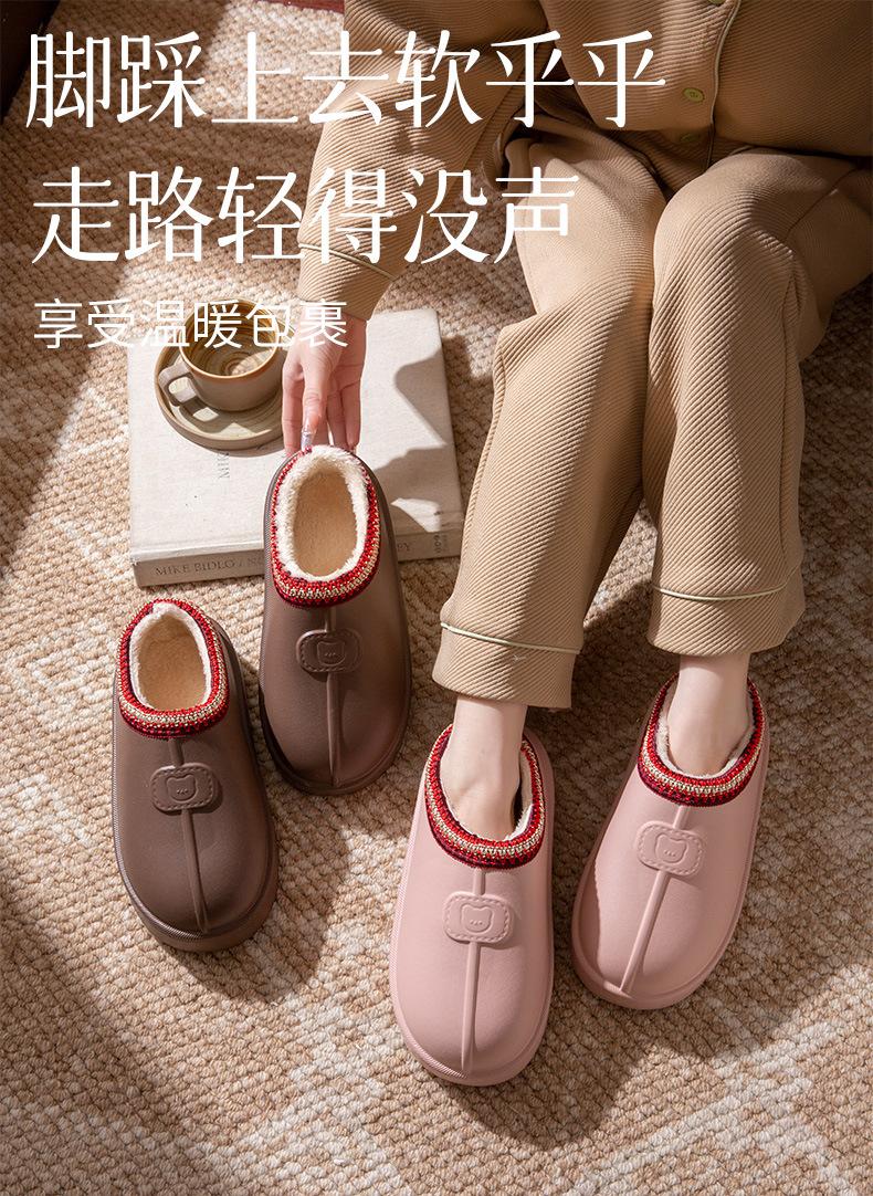 Pantuflas de algodón que cubren el talón para mujer invierno 2025 nuevo estilo para interior hogar más terciopelo cálidas suela gruesa antideslizantes zapatos de algodón para hombre para usar en exteriores