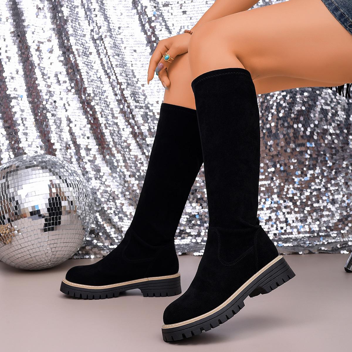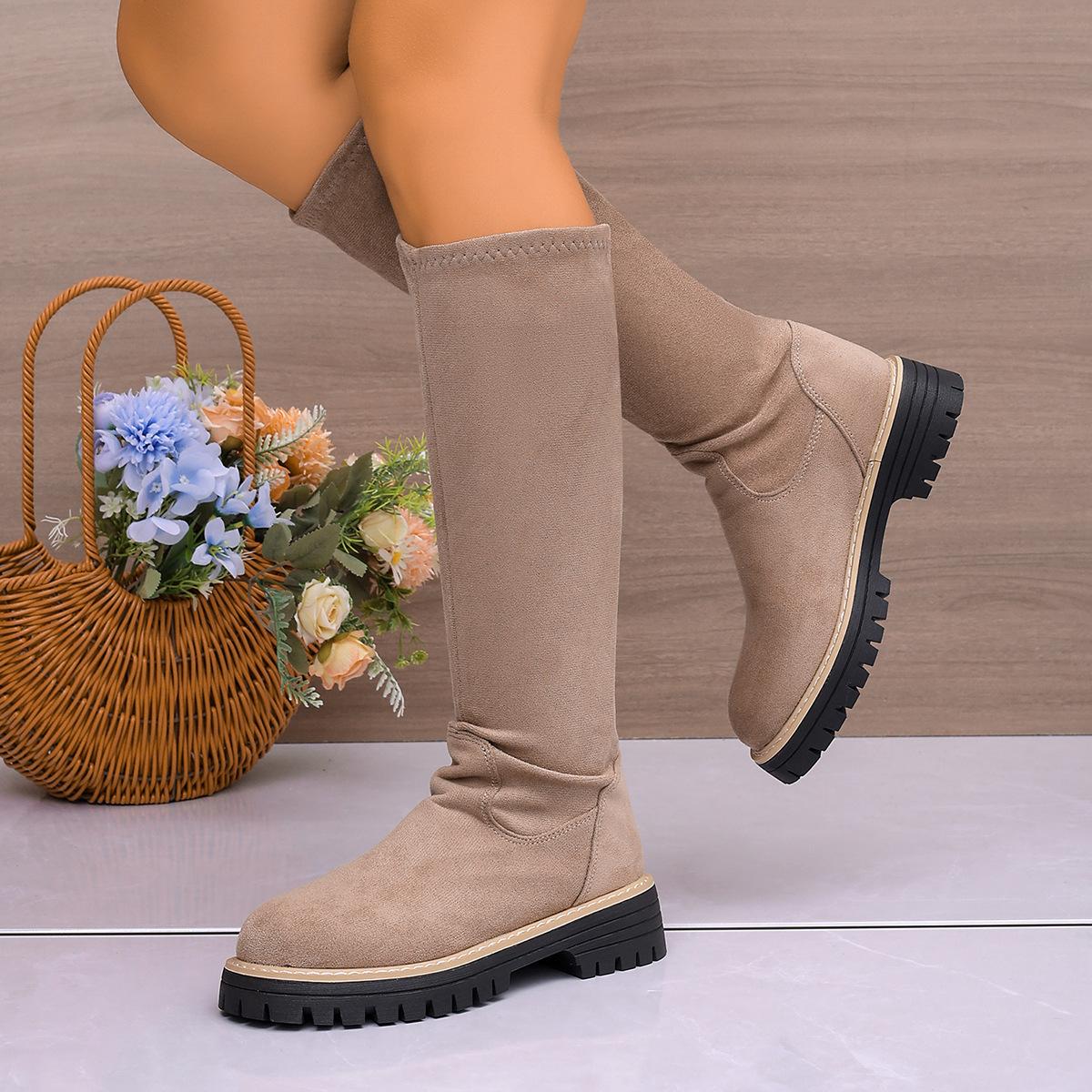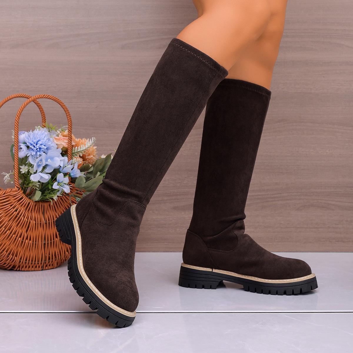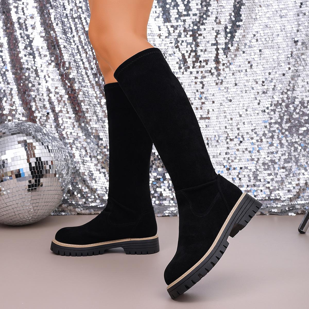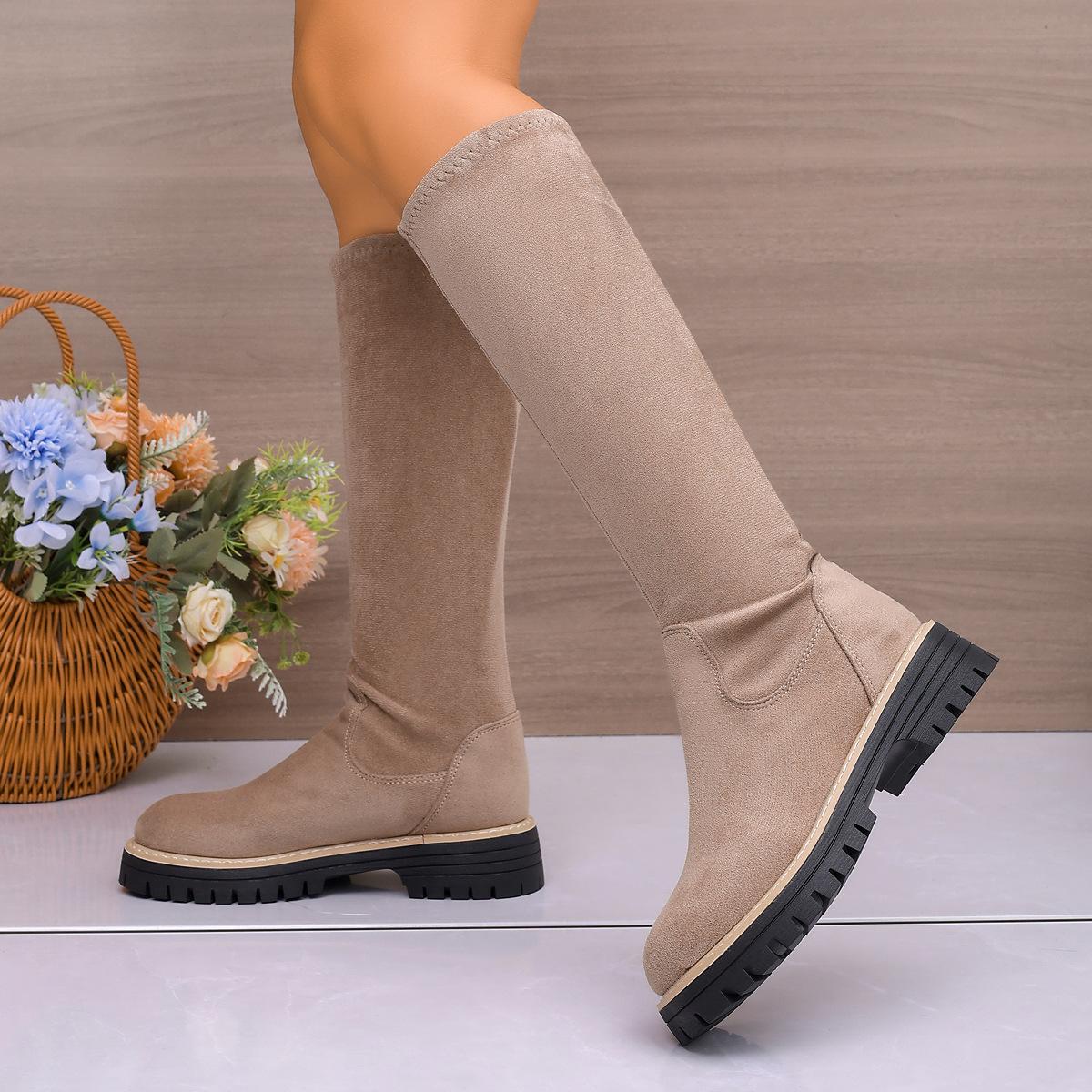 Botas Coreanas de Invierno/Otoño para Mujer Botas Altas de Gamuza Botas hasta la Rodilla Botas de Media Caña Estilo Coreano de Otoño/Invierno Botas de Tacón Plano Botas Largas Botas de Media Caña