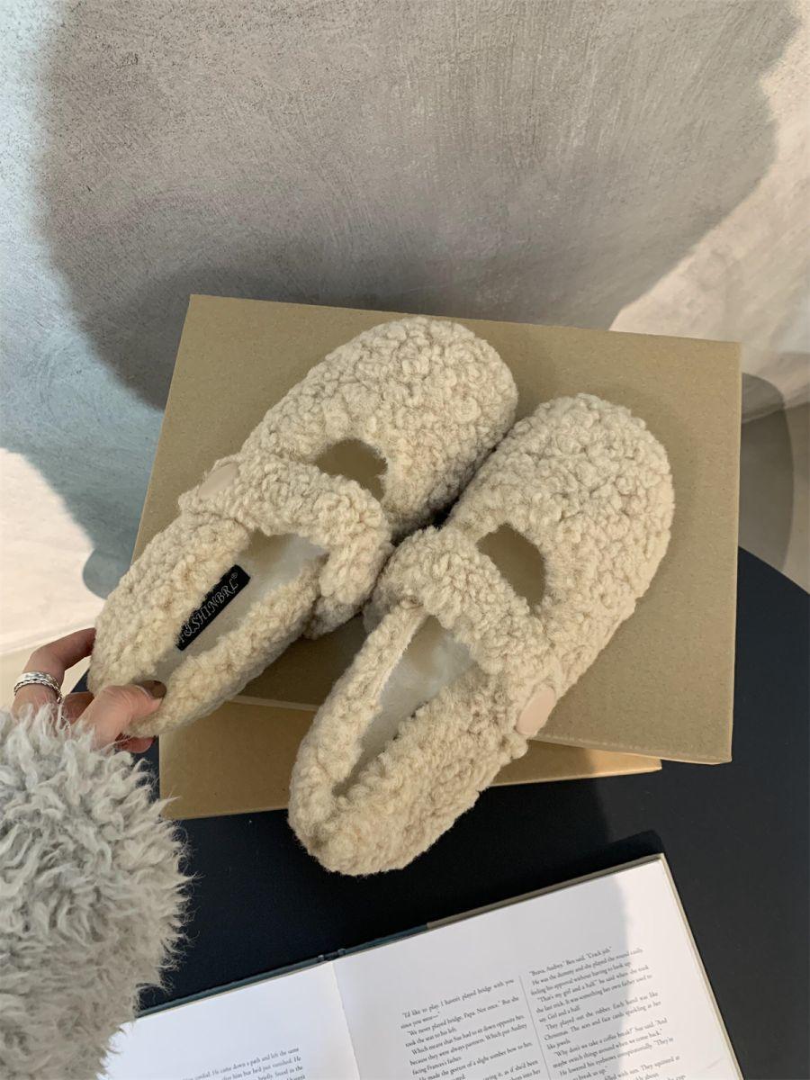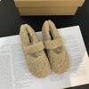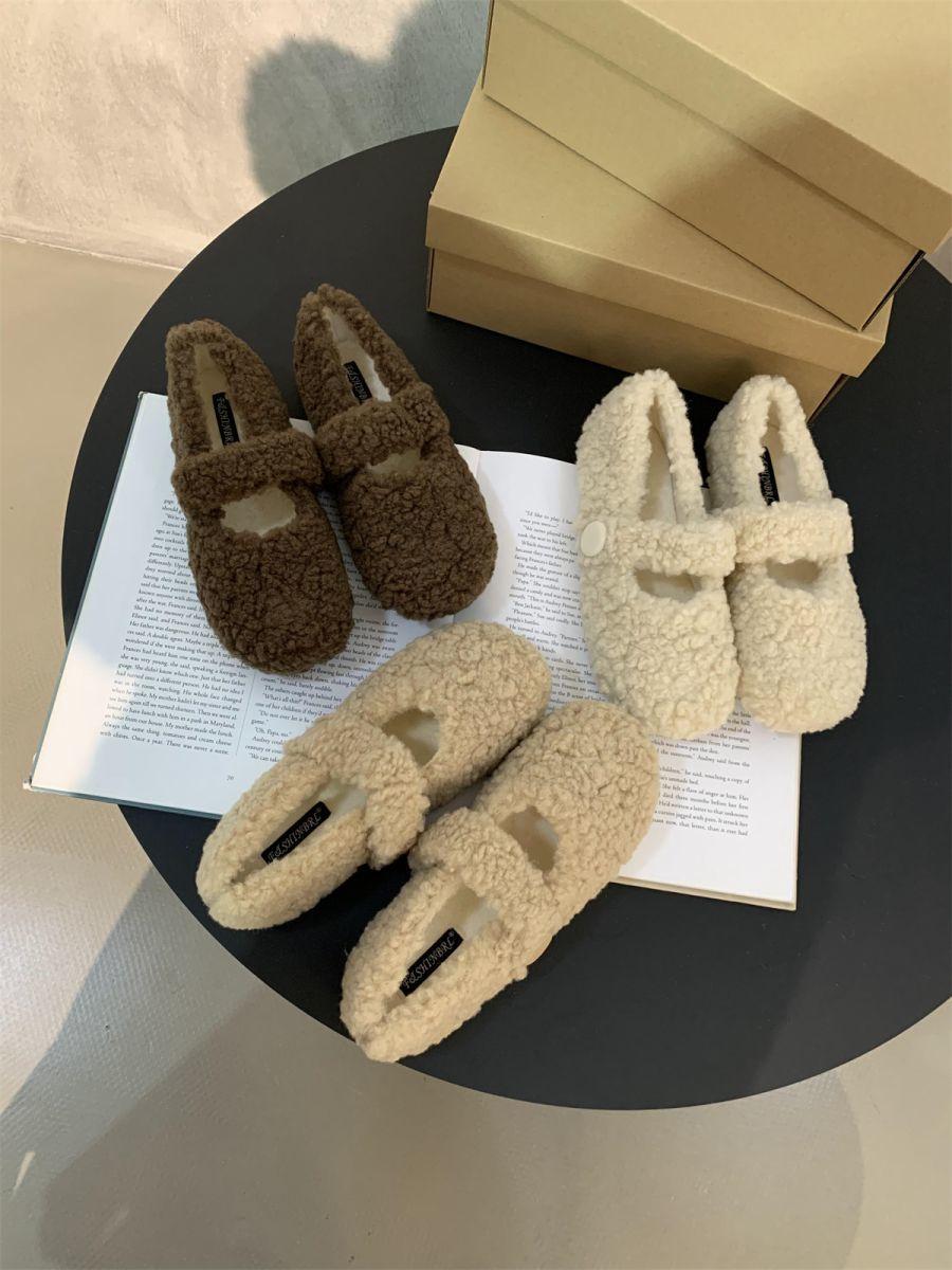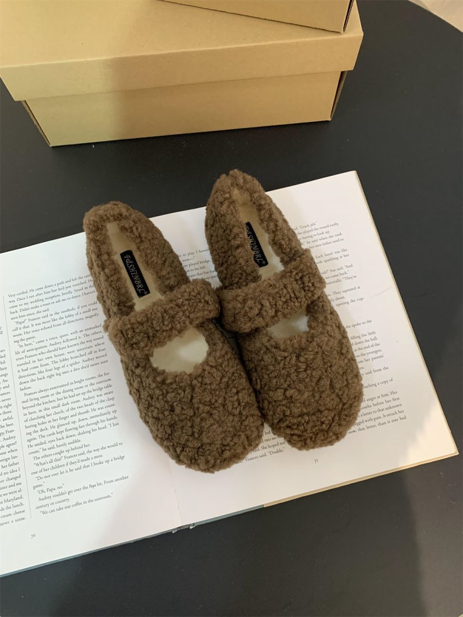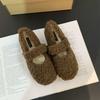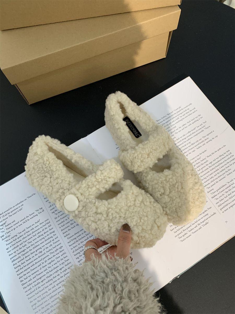 Zapatos planos peludos para mujer ropa de invierno 2025 nuevo estilo más zapatos de frijol de terciopelo súper absolutos Mary Jane de una sola correa zapatos individuales