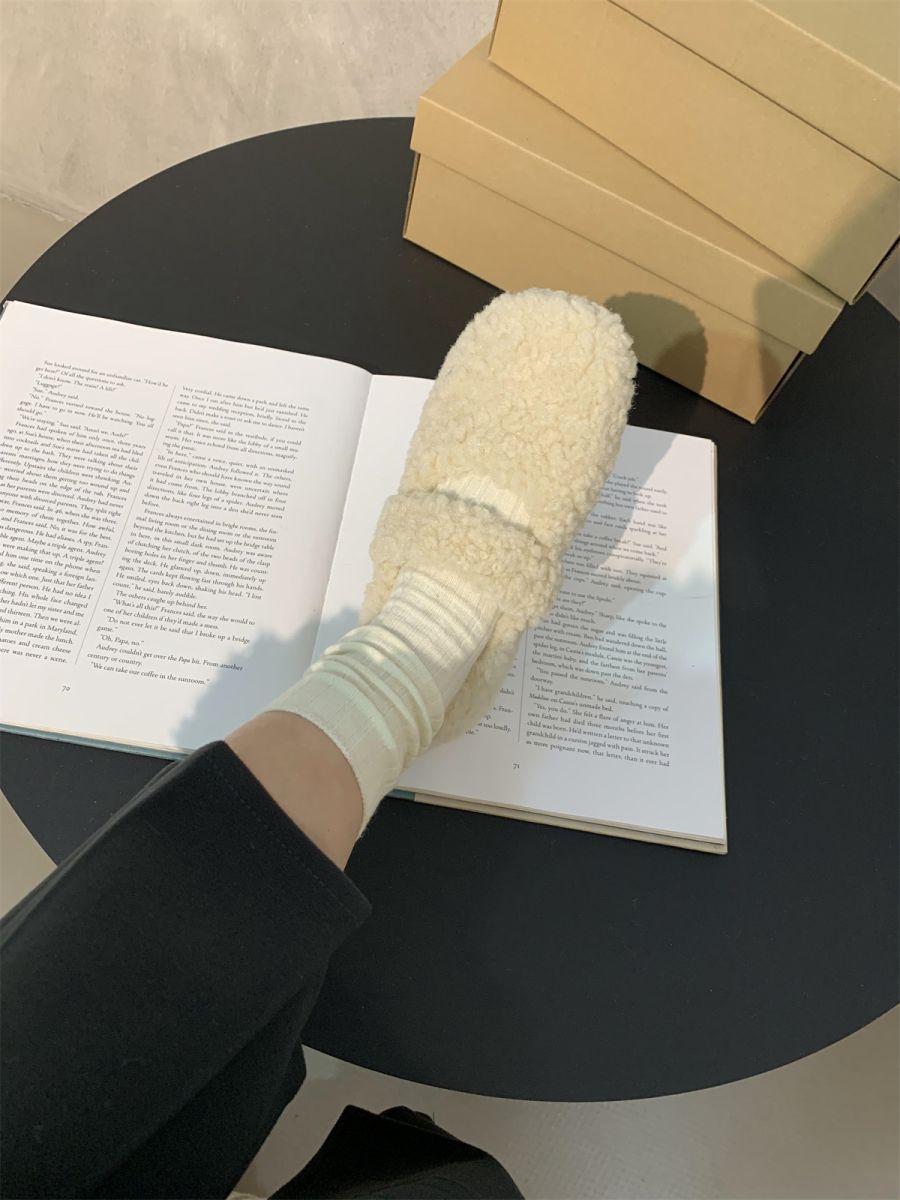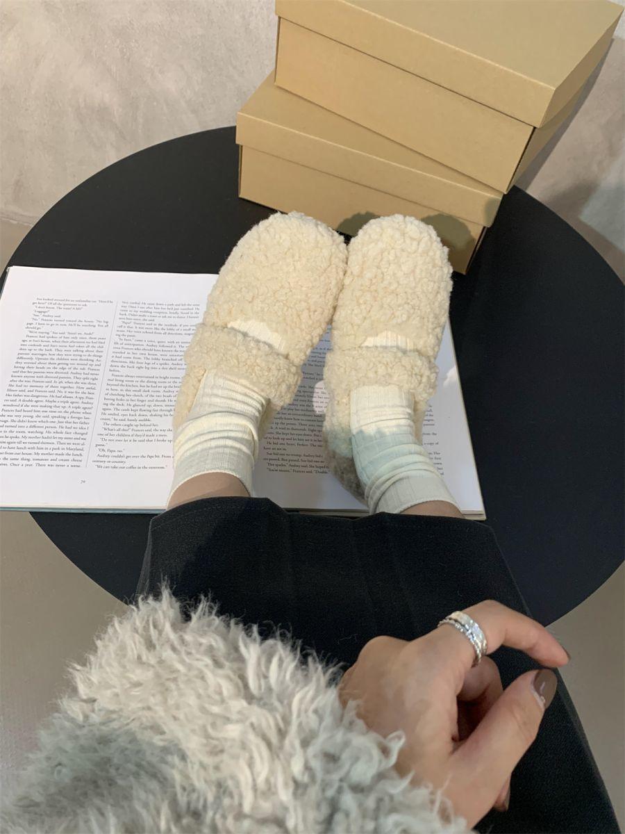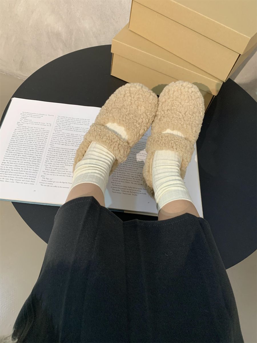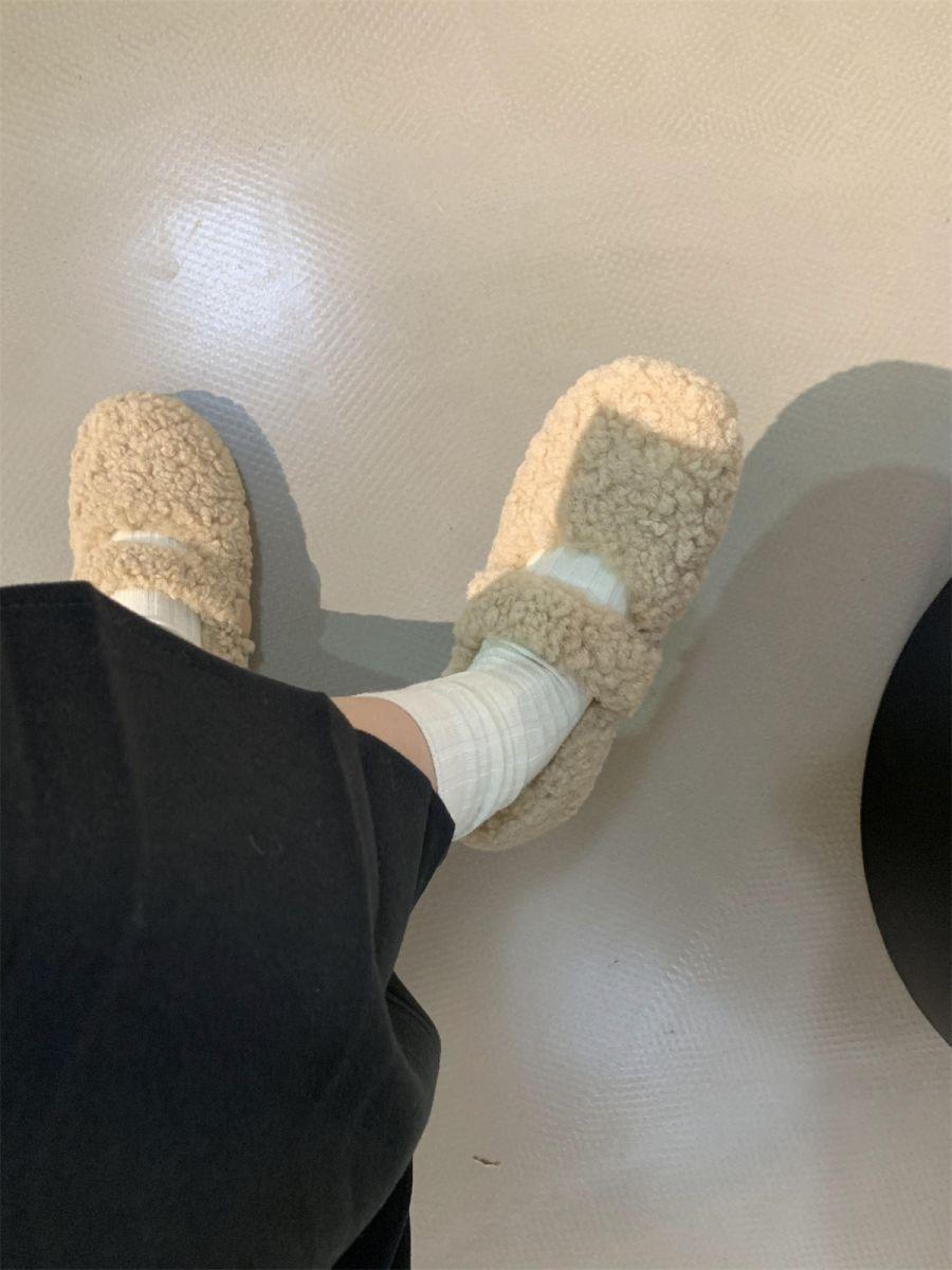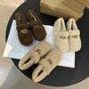 Zapatos planos peludos para mujer ropa de invierno 2025 nuevo estilo más zapatos de frijol de terciopelo súper absolutos Mary Jane de una sola correa zapatos individuales