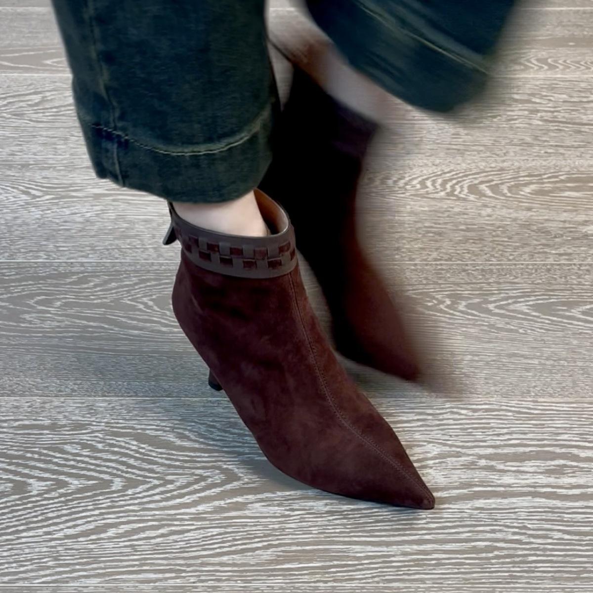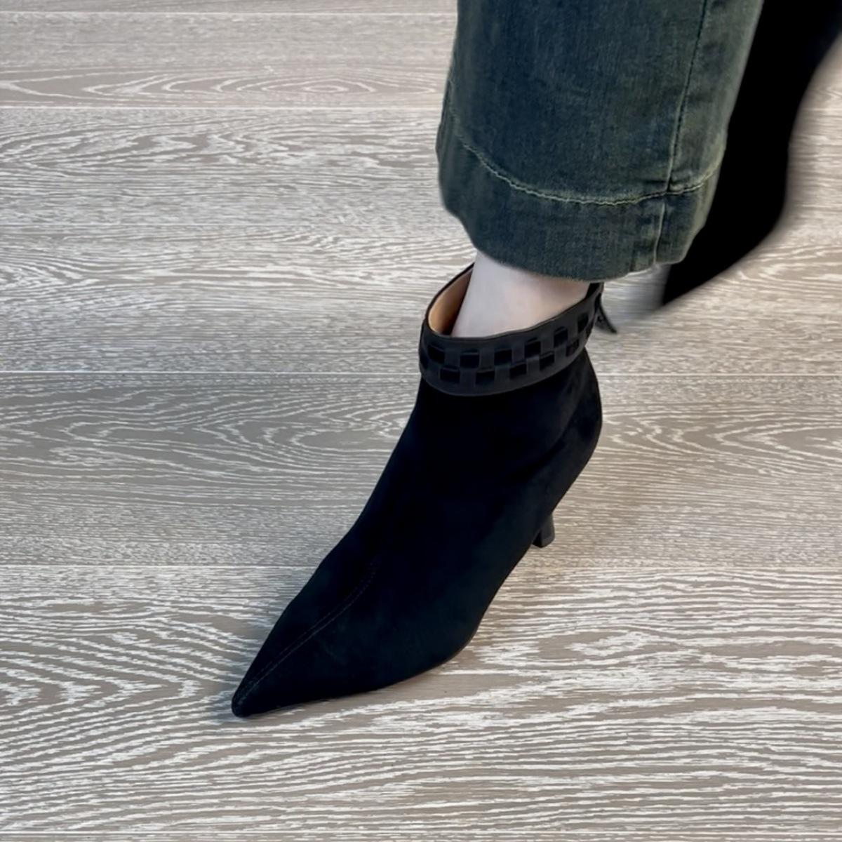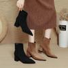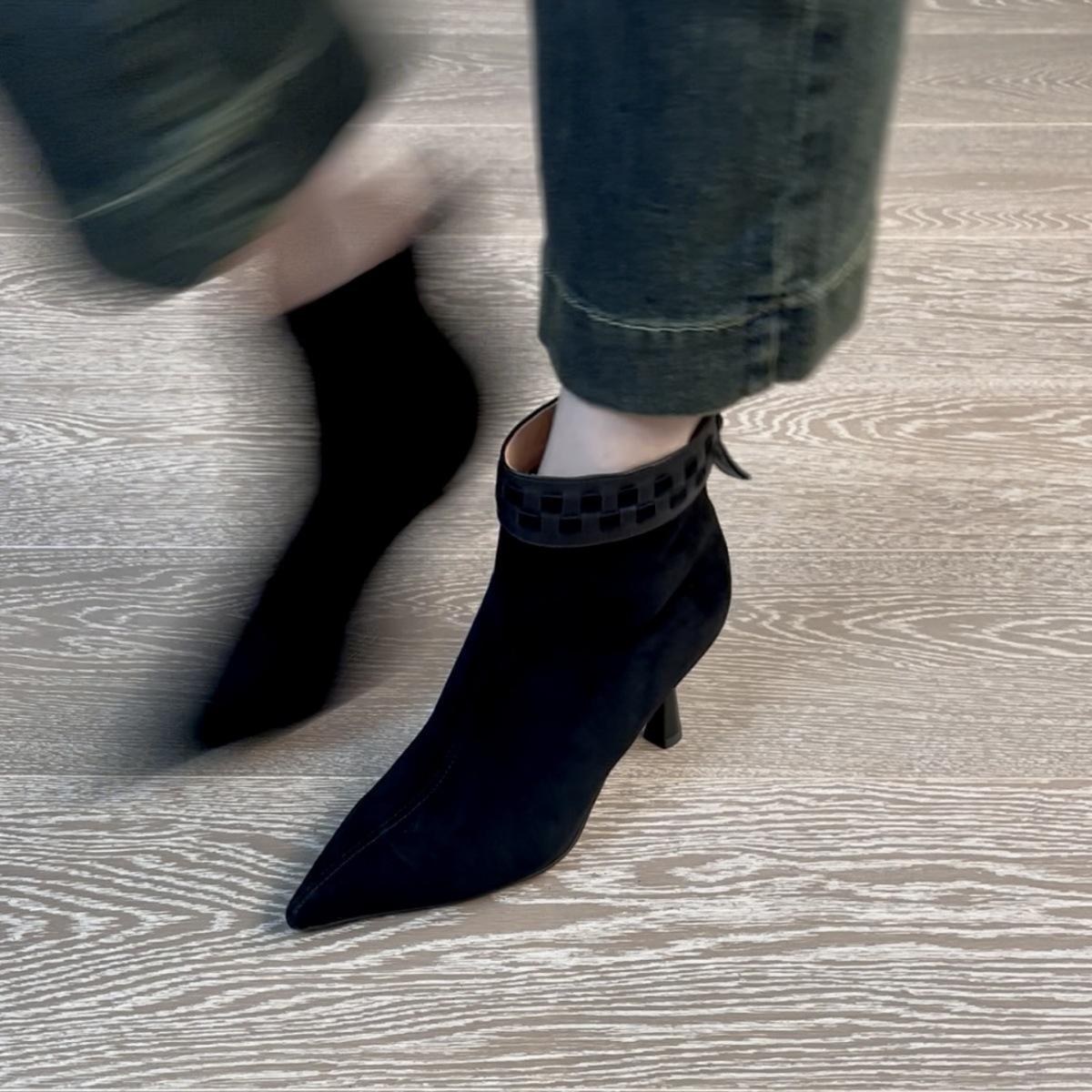 Botines de Tobillo de Tacón Alto Estilo Coreano de Moda de 7.5cm para Mujer Otoño Invierno Versátiles Botas de Punta Negras Moda Temperamento Botines