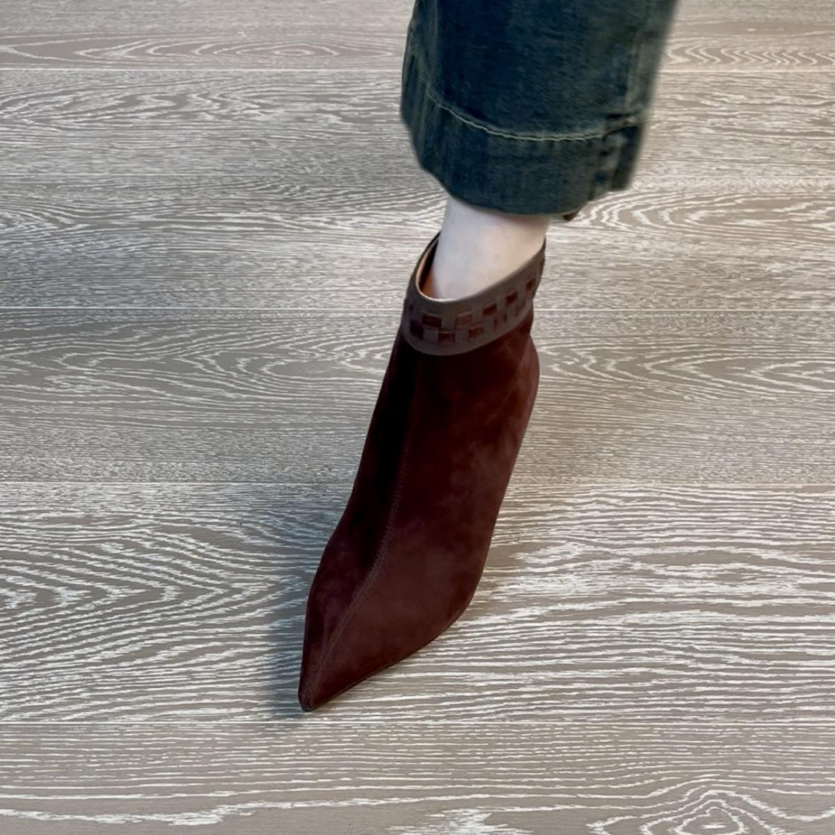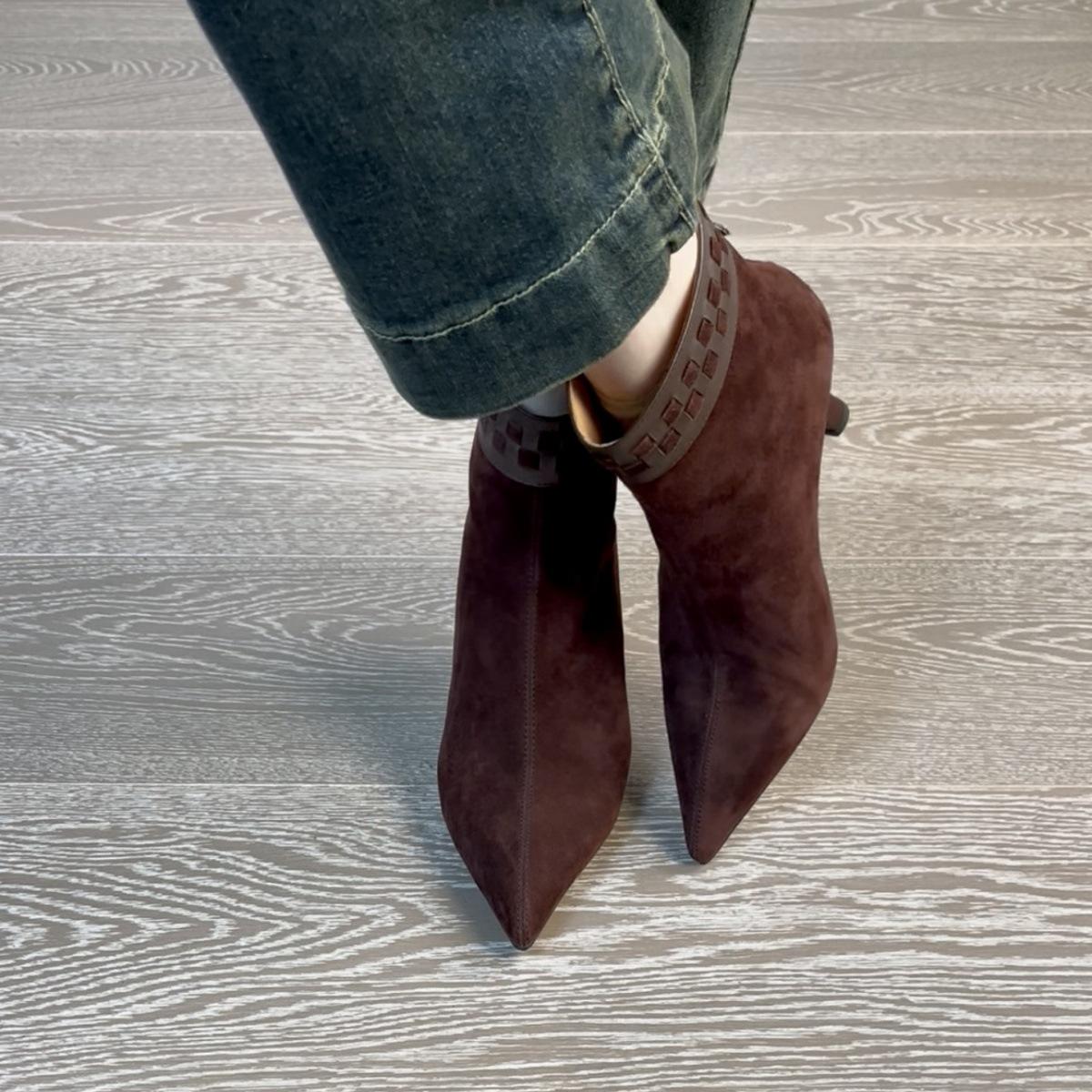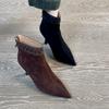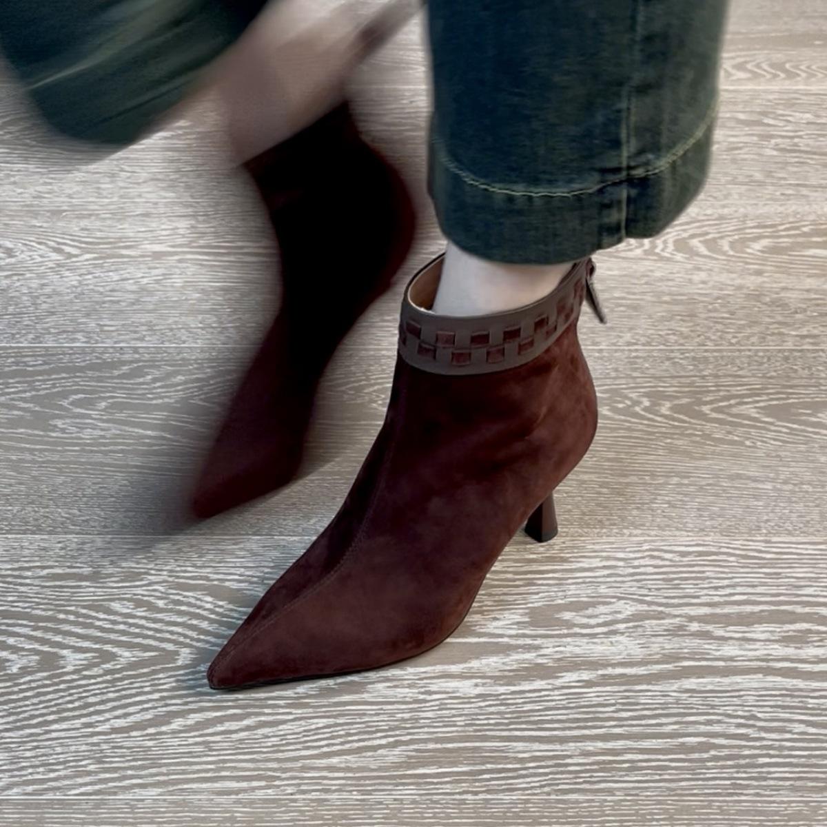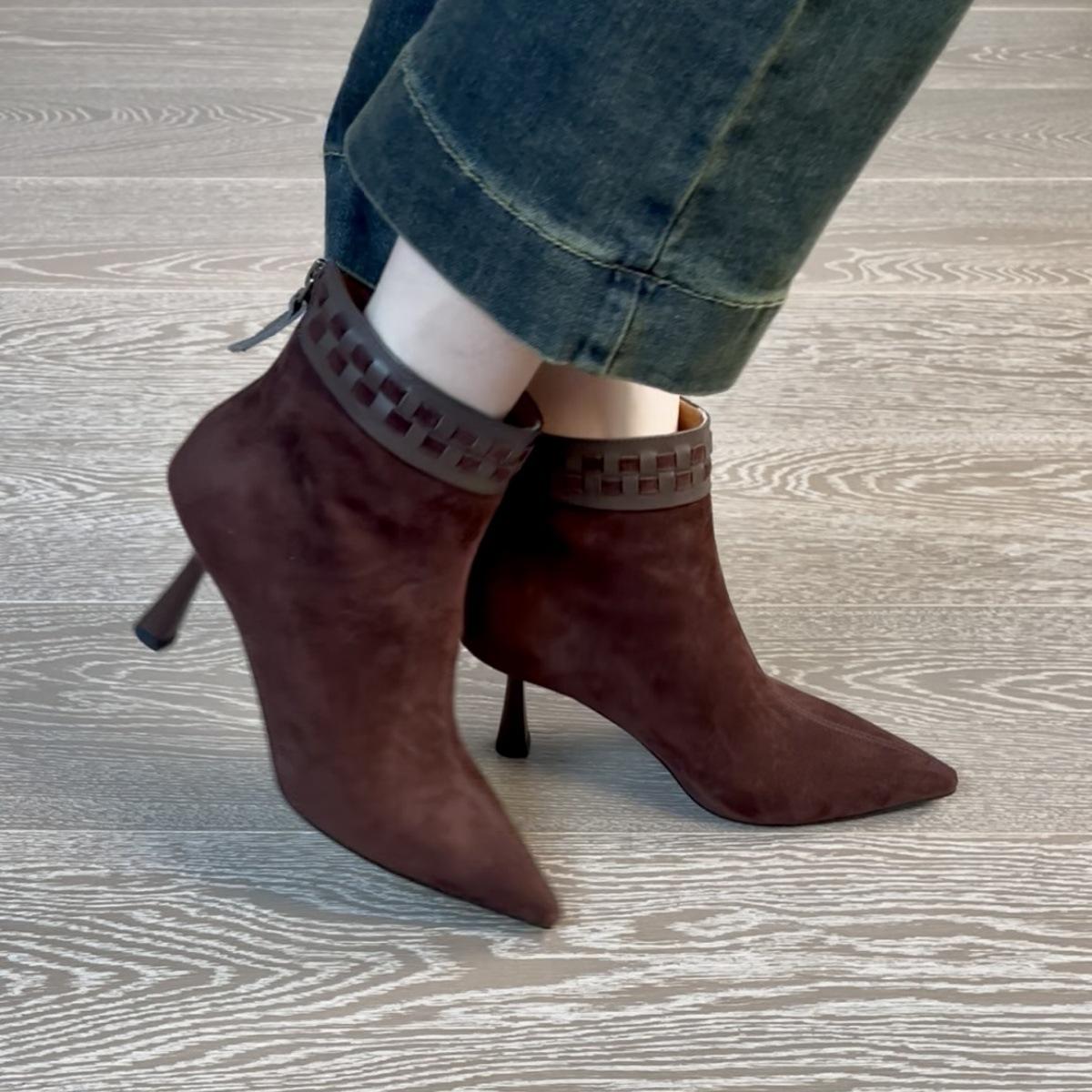 Botines de Tobillo de Tacón Alto Estilo Coreano de Moda de 7.5cm para Mujer Otoño Invierno Versátiles Botas de Punta Negras Moda Temperamento Botines