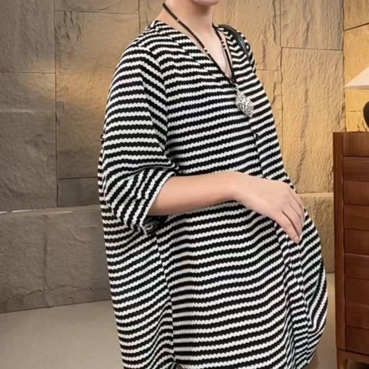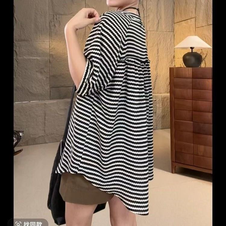 2025 Verano Nueva Moda y Elegante Ropa Exterior Rayada Holgada Casual Talla Grande Camisa Versátil Adelgazante Camisa con Temperamento