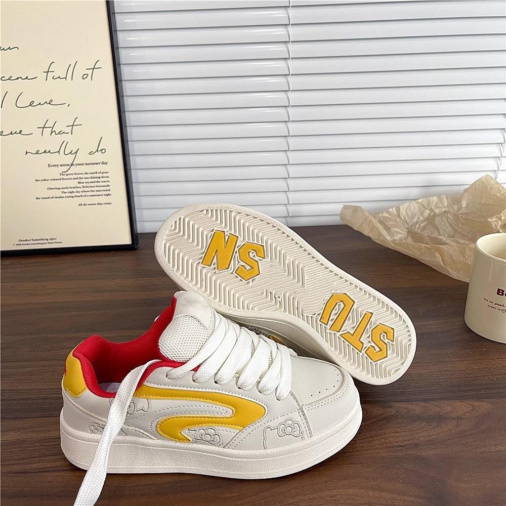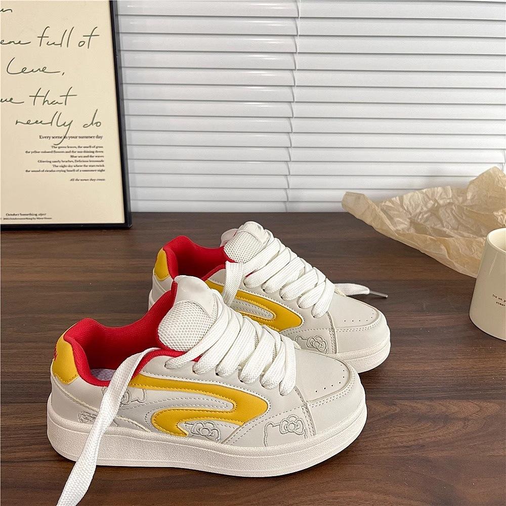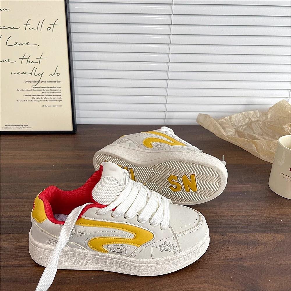Zapatos Blancos de Suela Gruesa Estilo Coreano para Mujer Tendencia Ins 2025 Verano Nuevo Nicho Versátil Transpirable Zapatos Deportivos de Estudiante