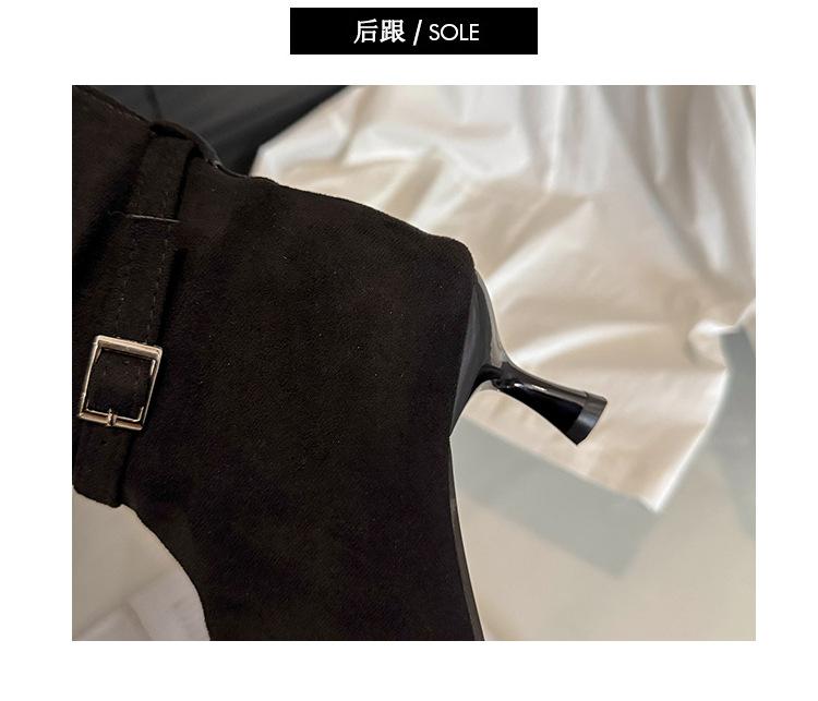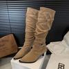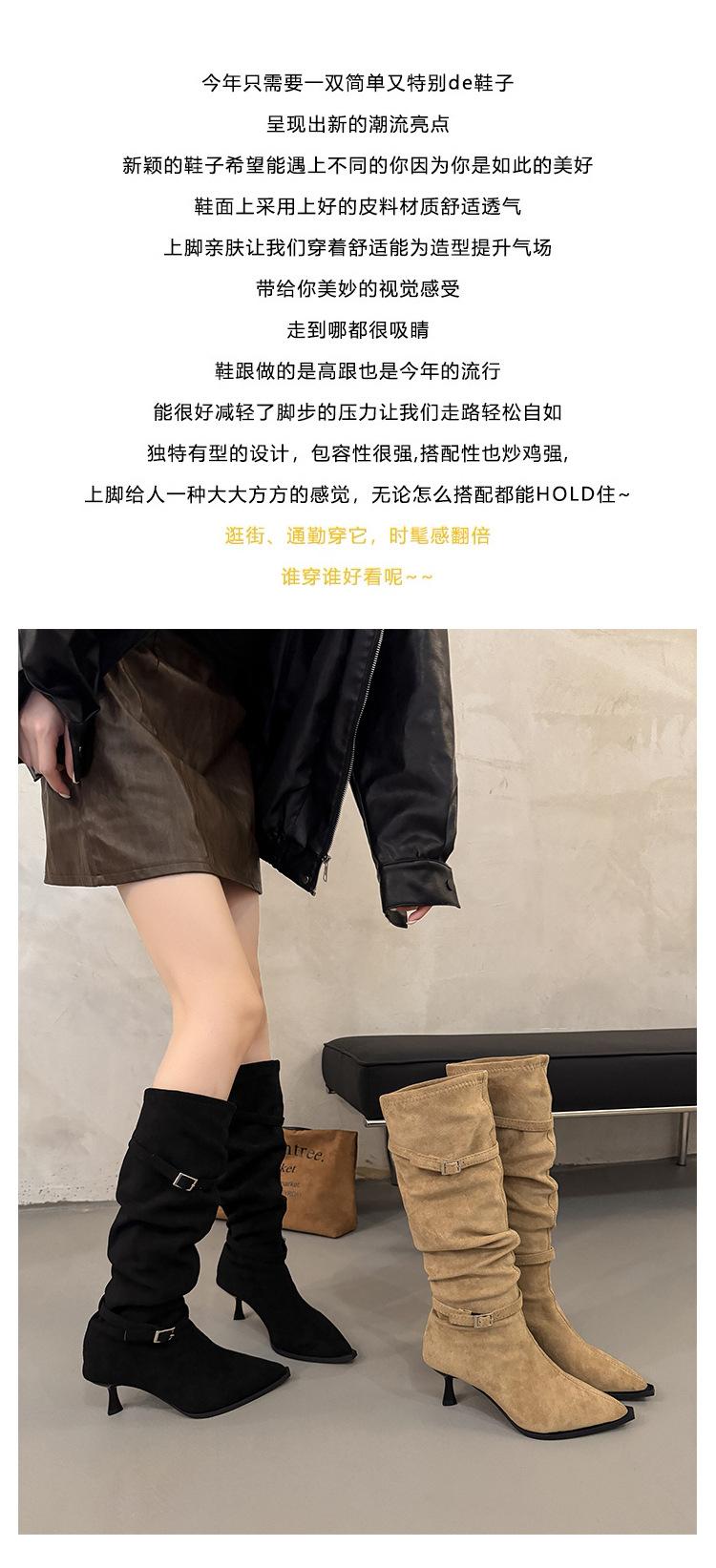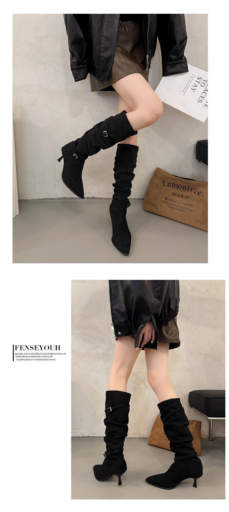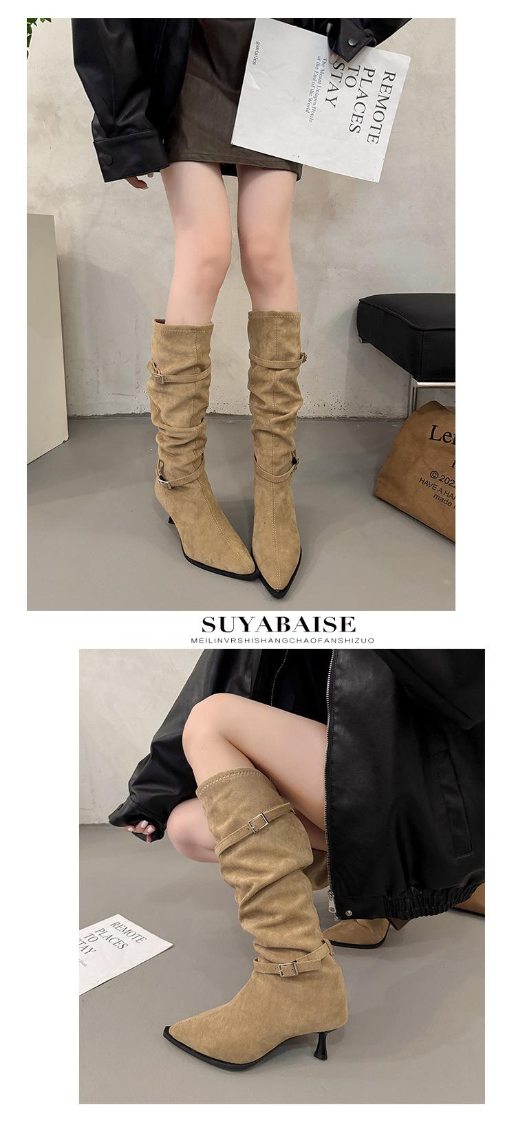 Botas Largas de Moda Punta Afilada Tacón de Aguja Hebilla Fruncidas Apiladas Mujer 2025 Otoño Nuevo Temperamento Adelgazantes Botas de Tacón Alto