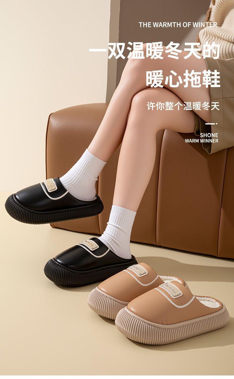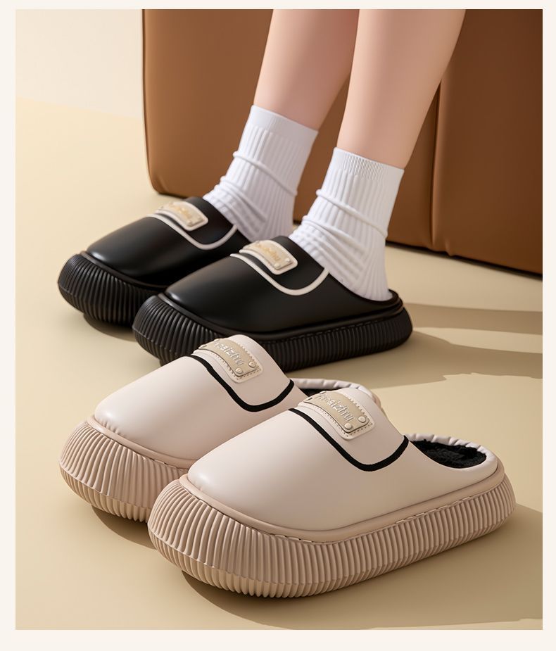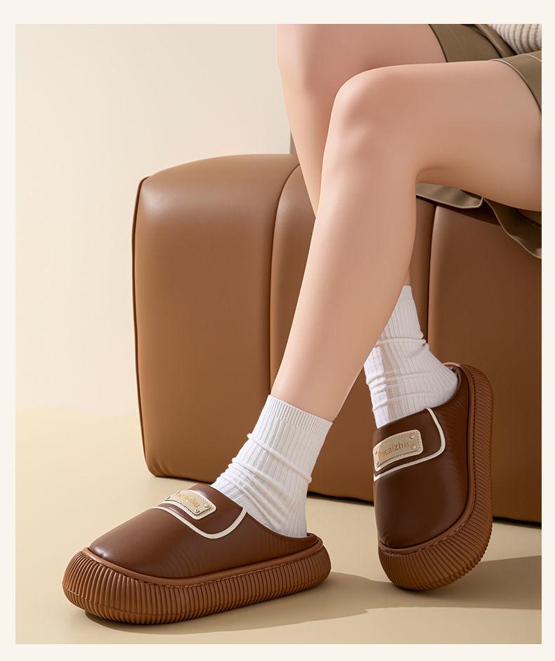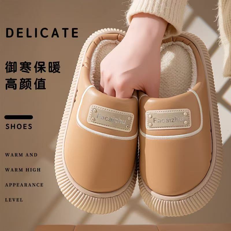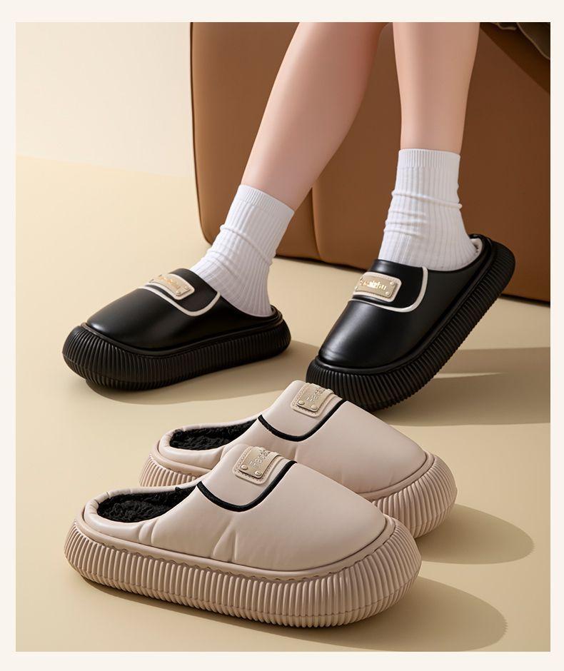 Zapatos de Algodón para Pareja Otoño/Invierno Nuevos Zapatillas de Algodón Cálidas Impermeables con Cubretalón para Mujer para Interior Hogar Antideslizantes Zapatos de Felpa