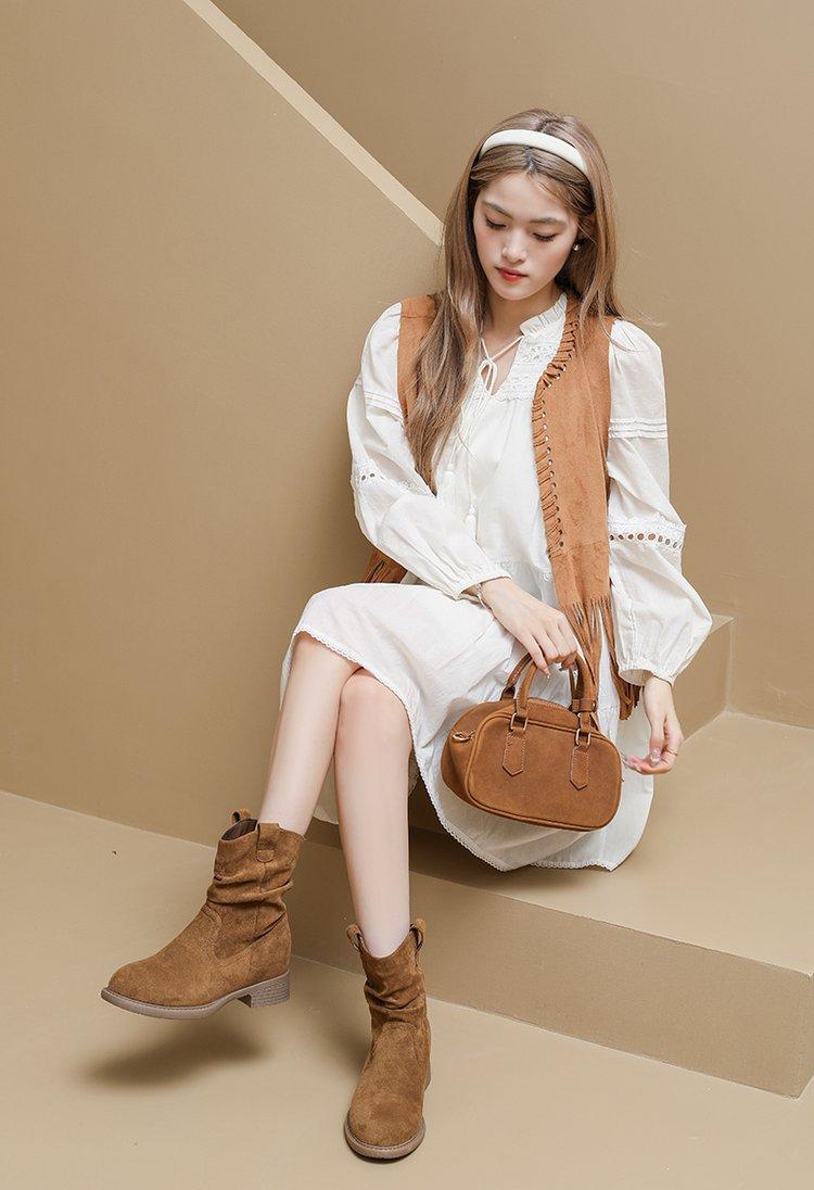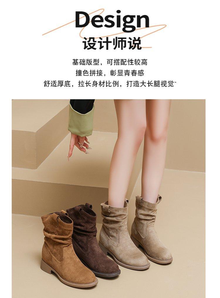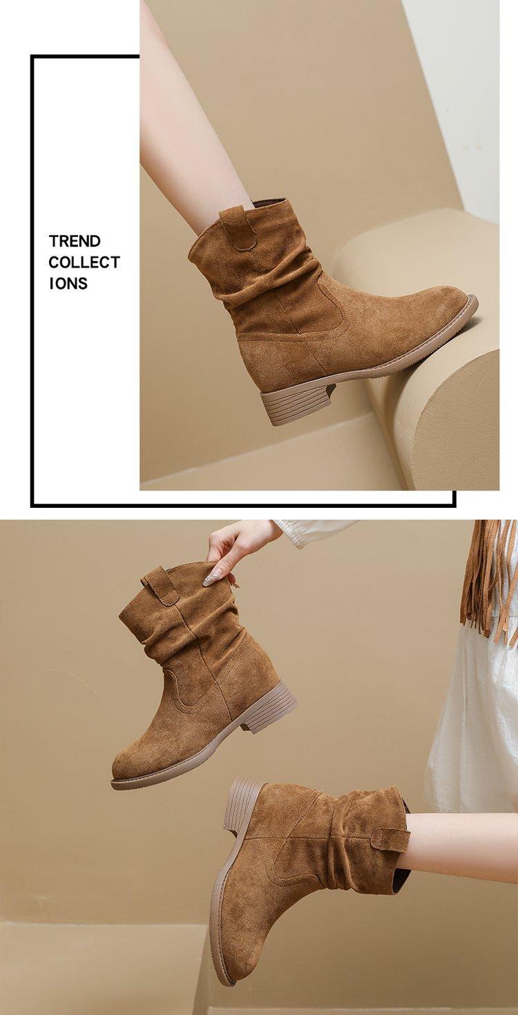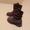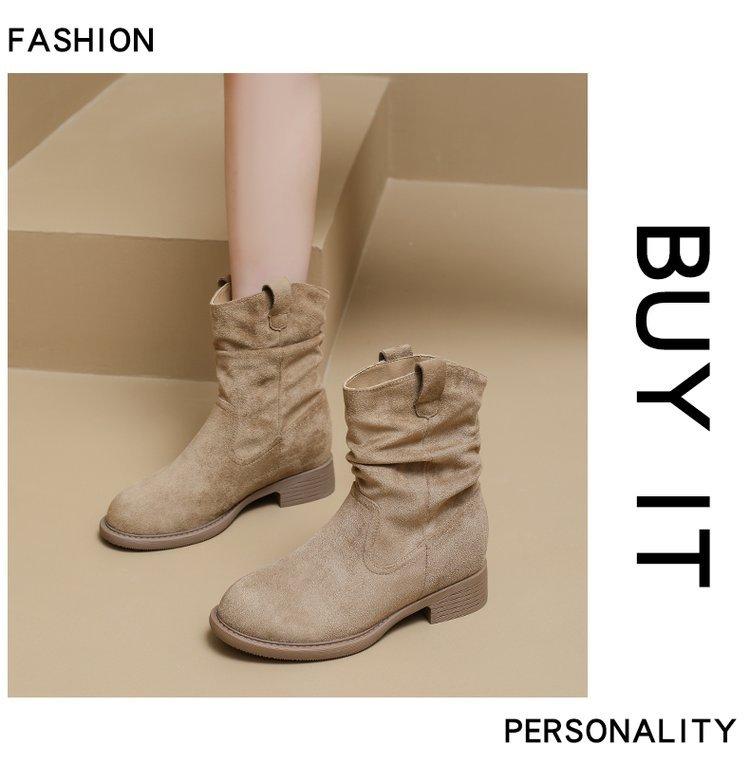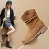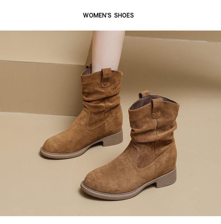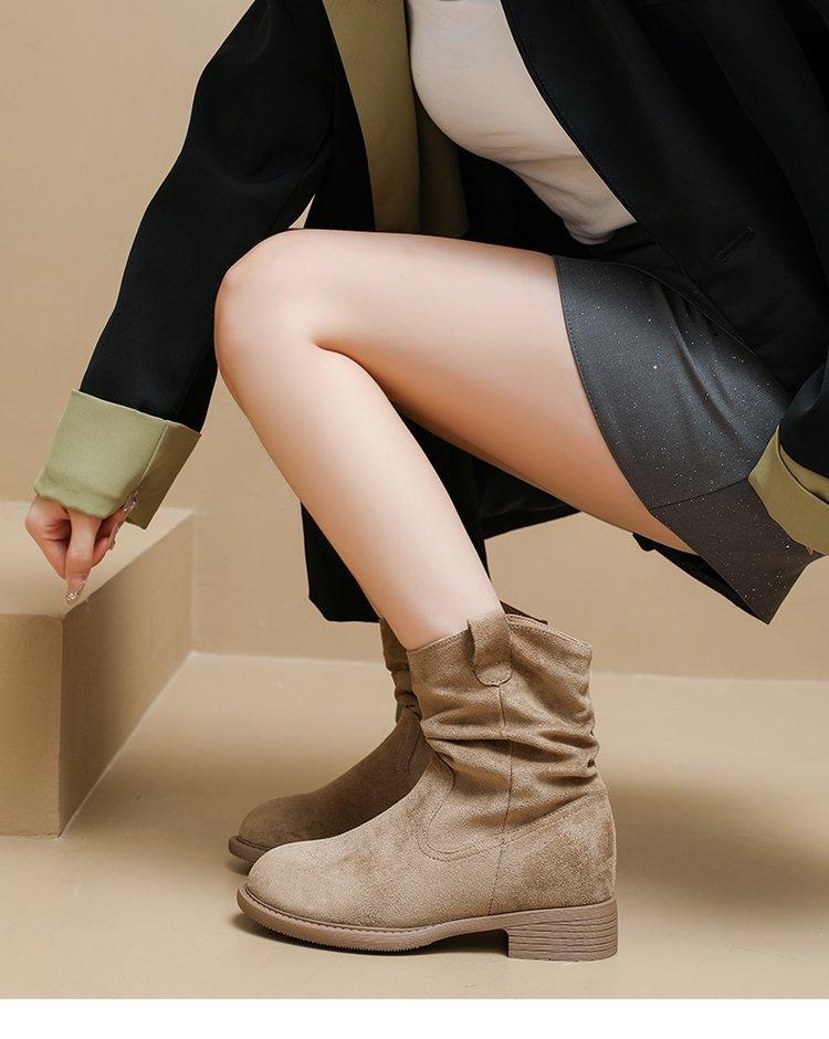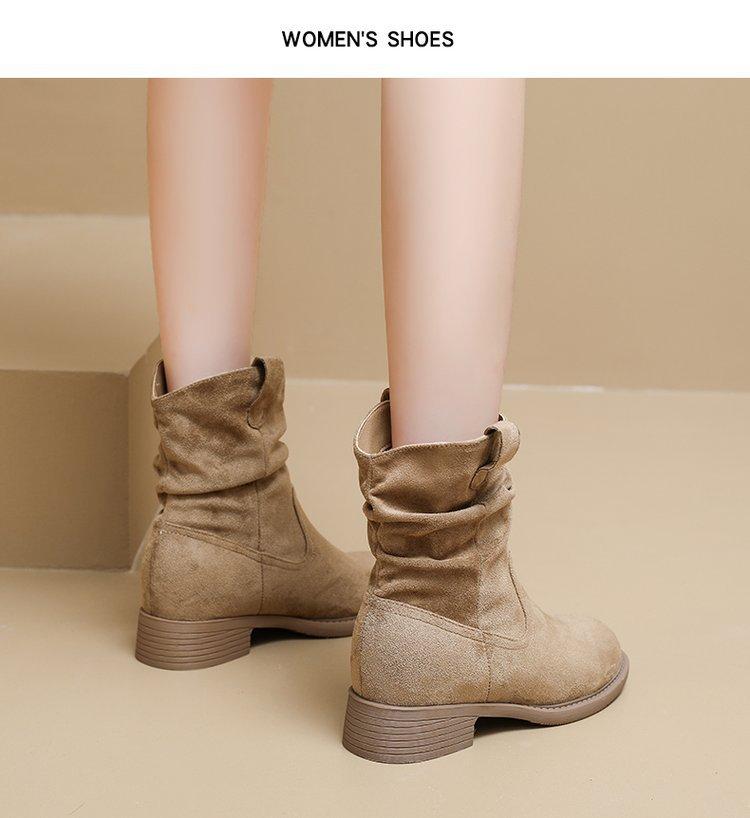 Versión de Cuero Suave Botas Martin para Mujer Petite Botas con Altura Interior 2025 Nuevo Primavera Tacón Alto Media Pantorrilla Botines Botas Apiladas