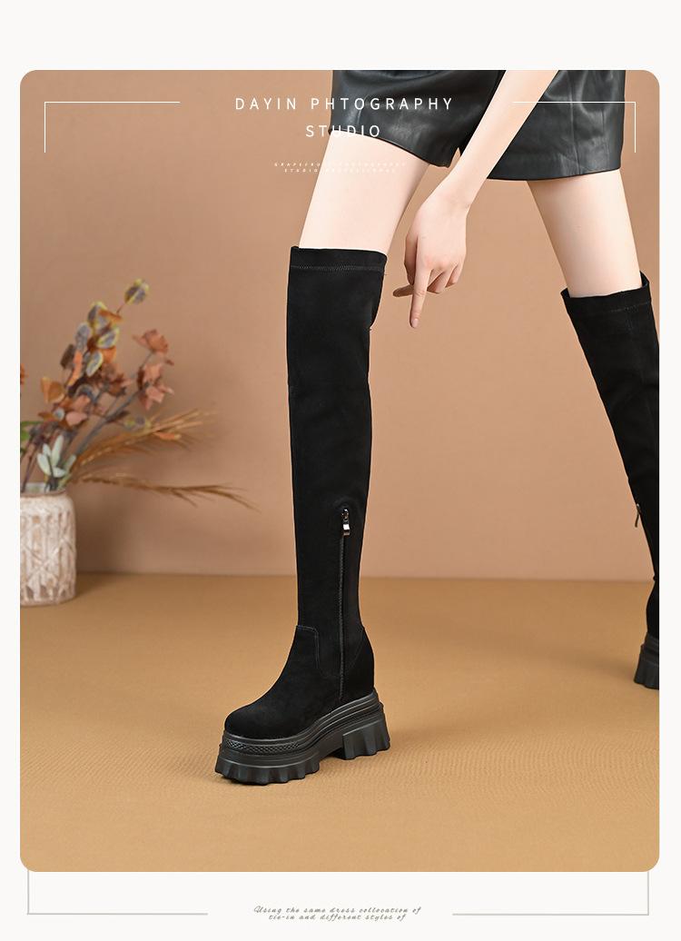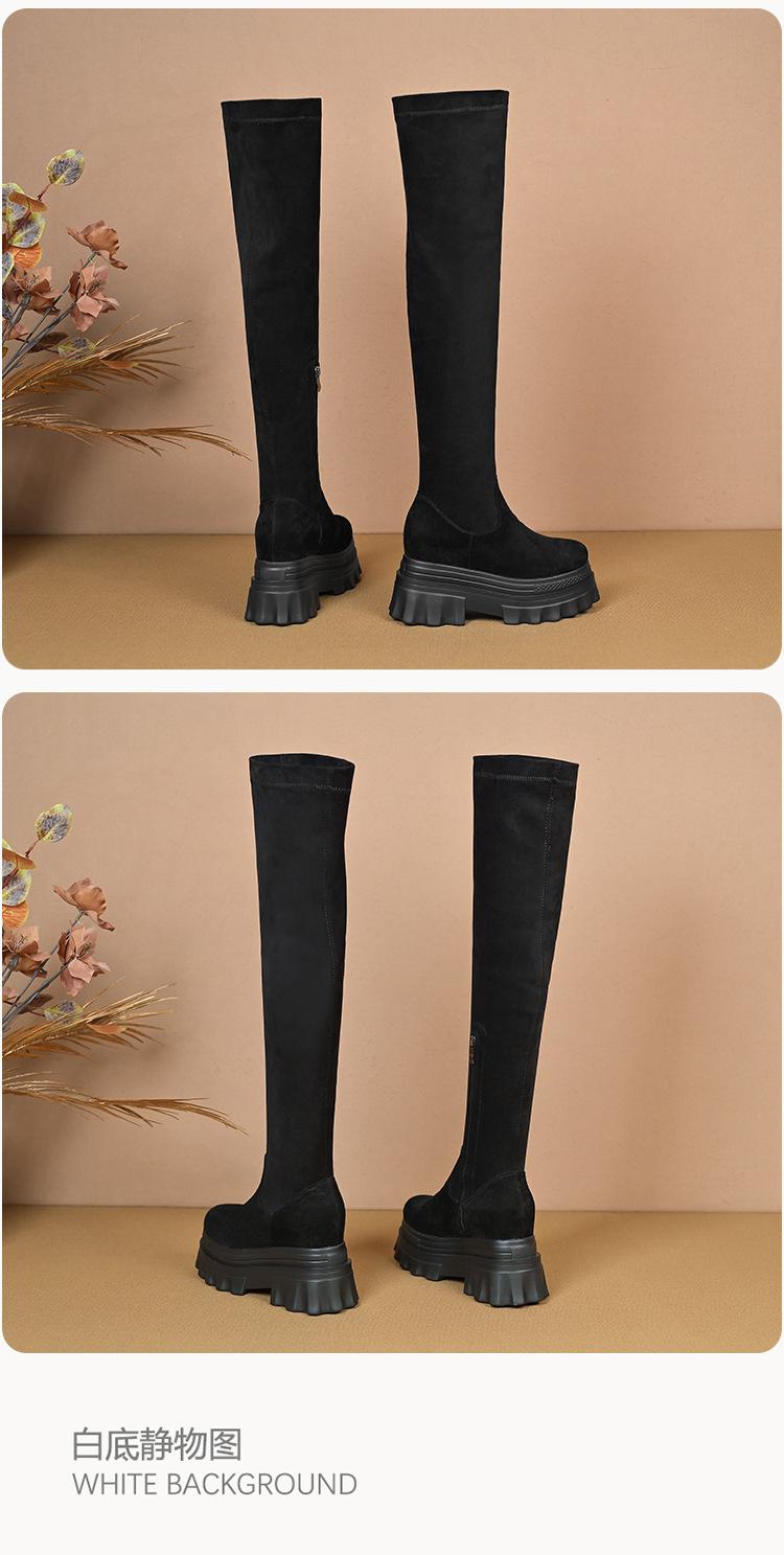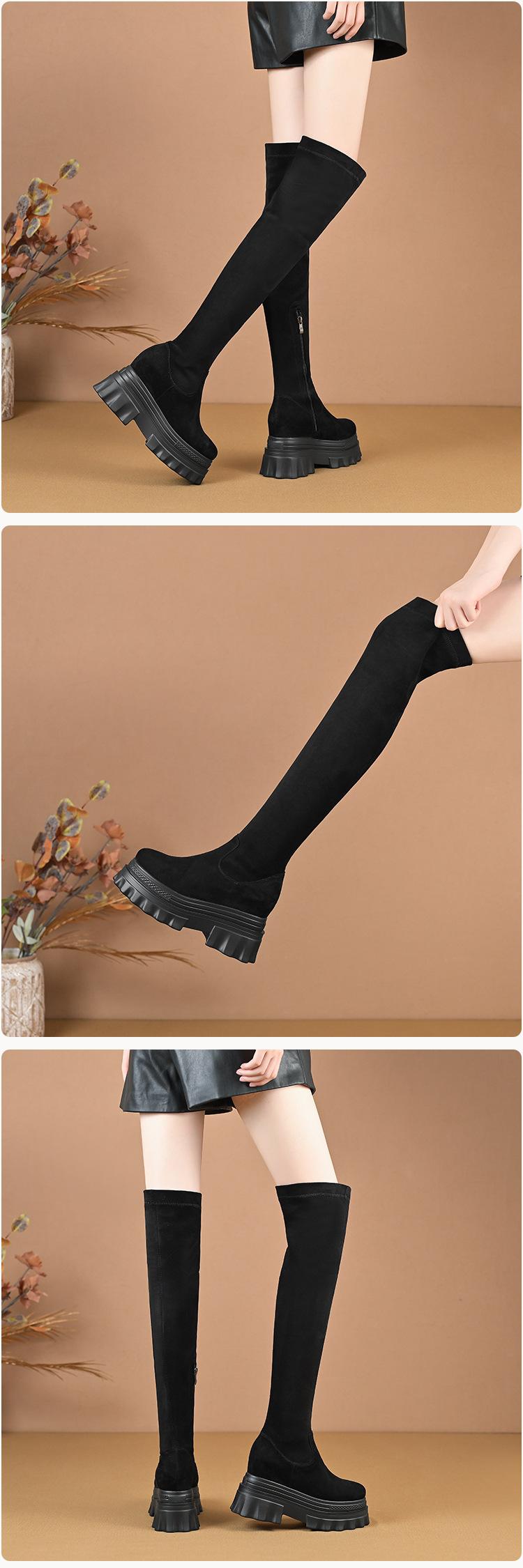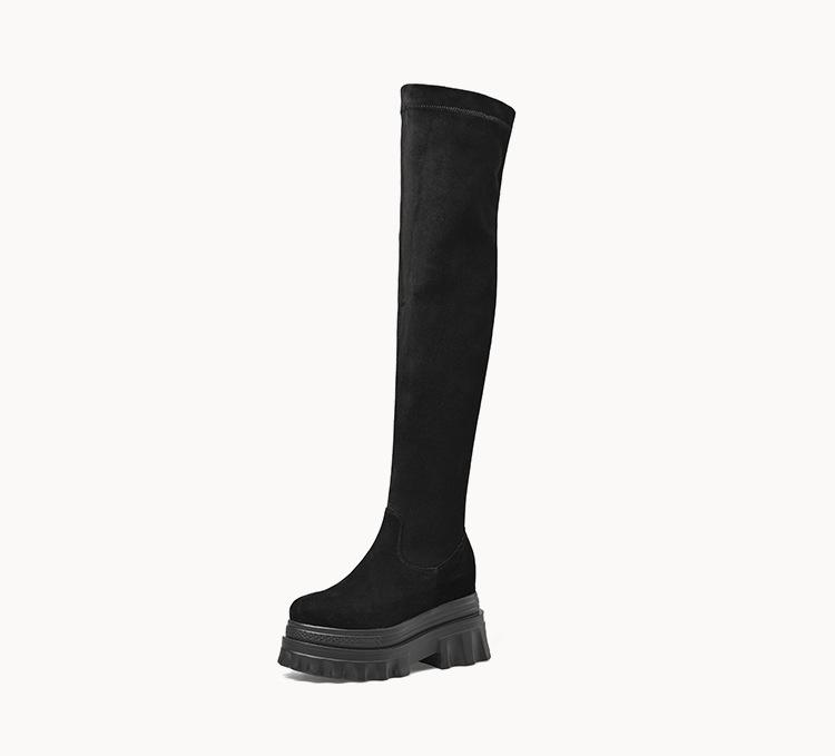 Botas Negras de Moda de 10CM con Suela Gruesa para Aumentar la Altura, Elásticas y Ajustadas, Estilo Británico, Combinan con Todo, Punta Redonda, Aumentan la Altura, Botas por Encima de la Rodilla