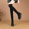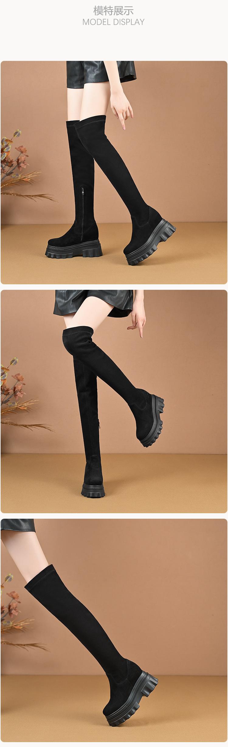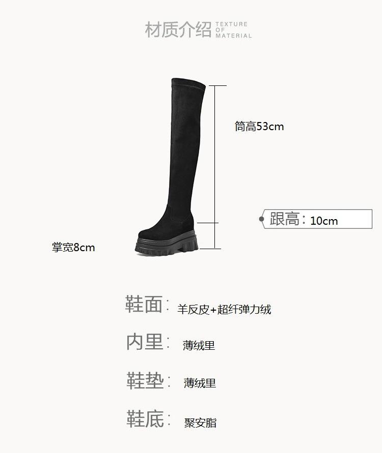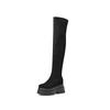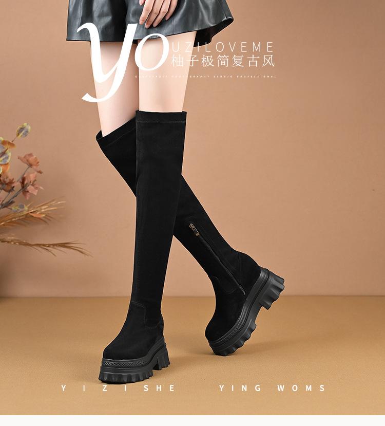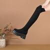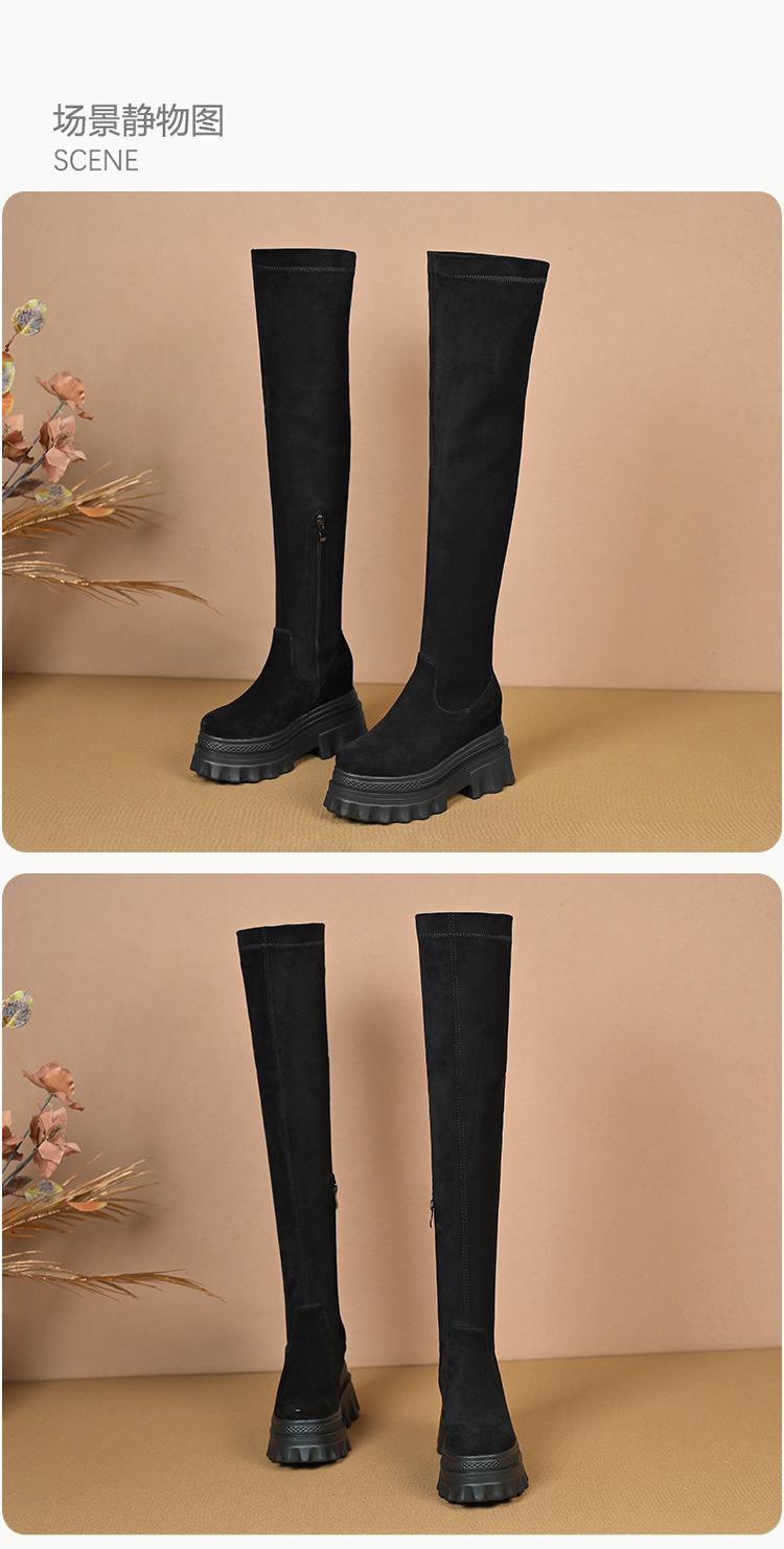 Botas Negras de Moda de 10CM con Suela Gruesa para Aumentar la Altura, Elásticas y Ajustadas, Estilo Británico, Combinan con Todo, Punta Redonda, Aumentan la Altura, Botas por Encima de la Rodilla