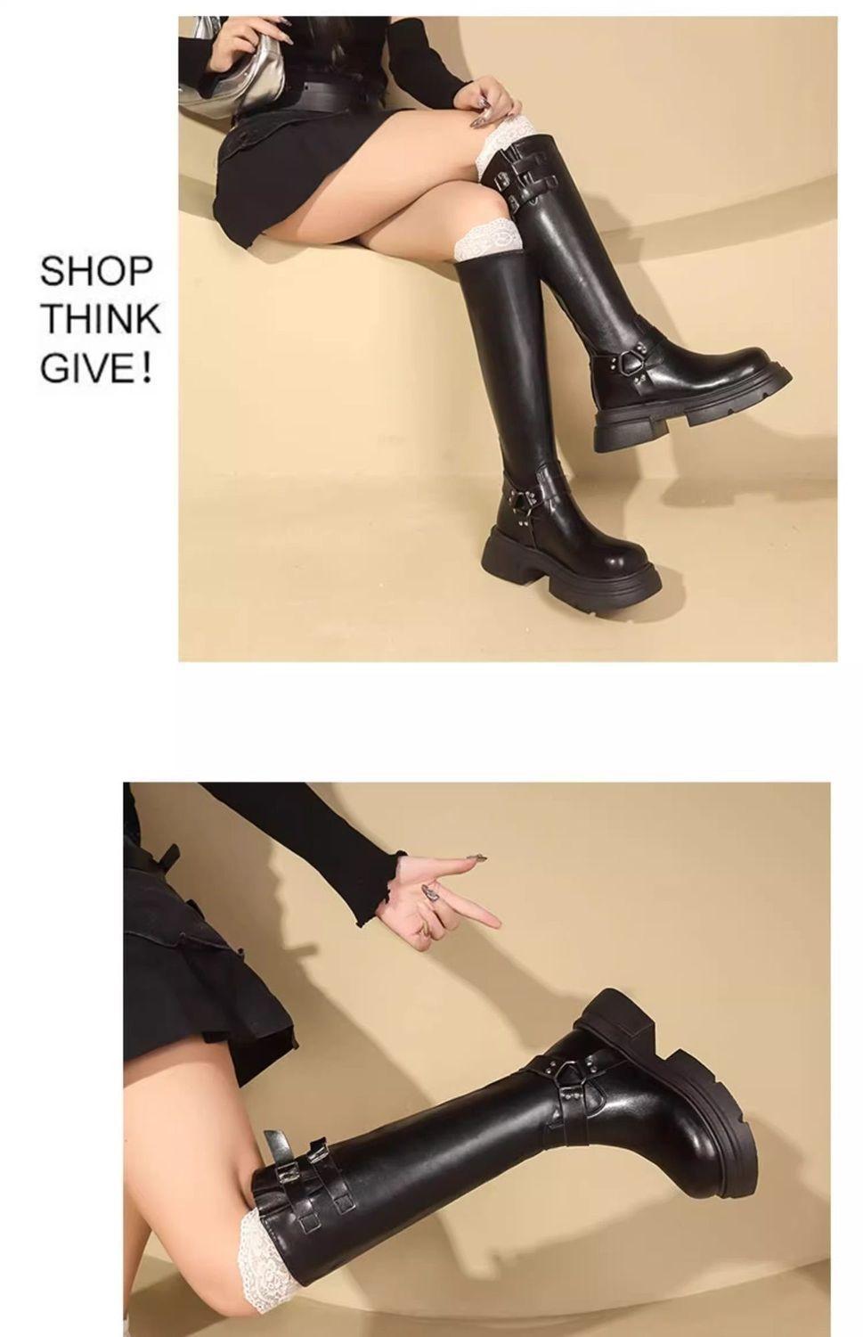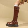 Botas Largas Cómodas con Cremallera Trasera Estilo Coreano para Mujer 2024 Otoño/Invierno Estilo Caliente Moda Retro Botas Altas Suela Gruesa Aumento de Altura Botas de Caballero