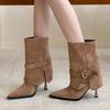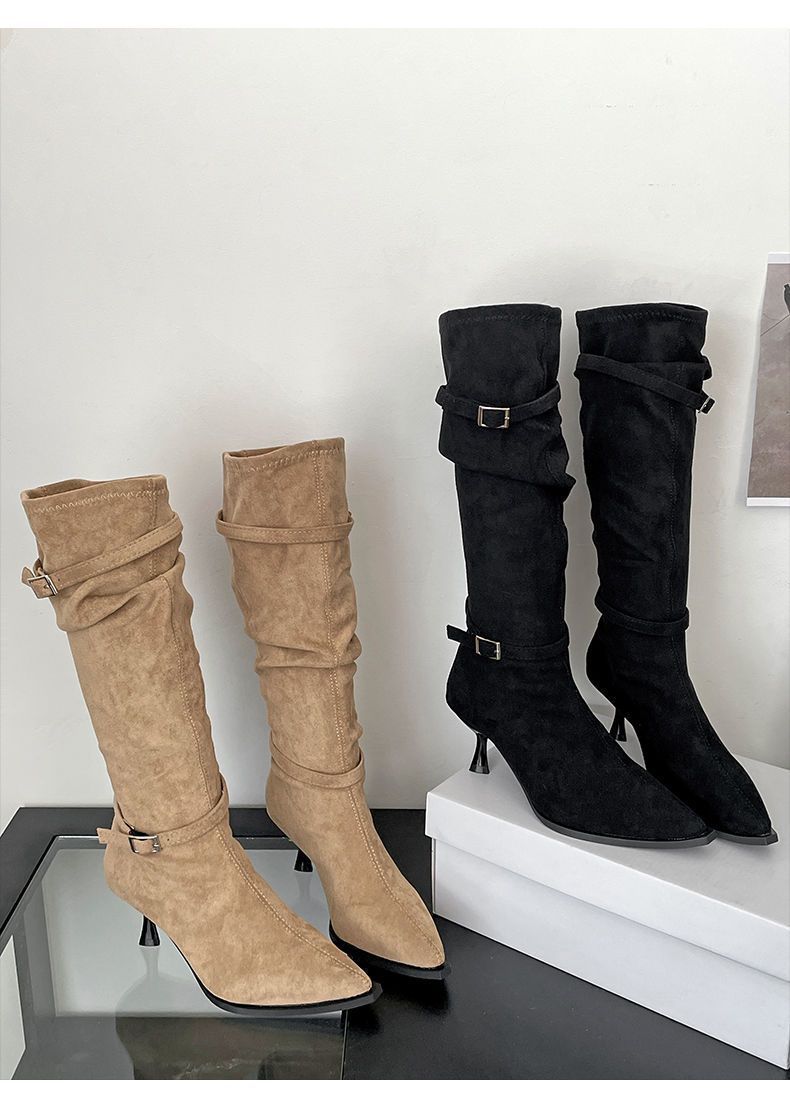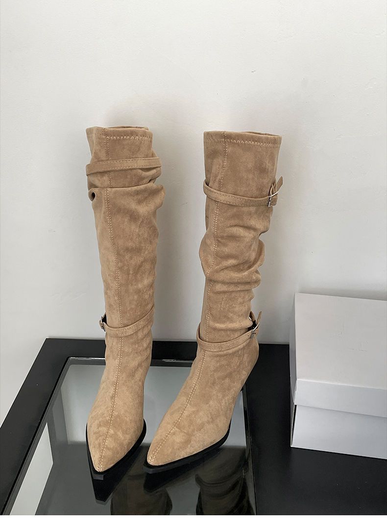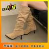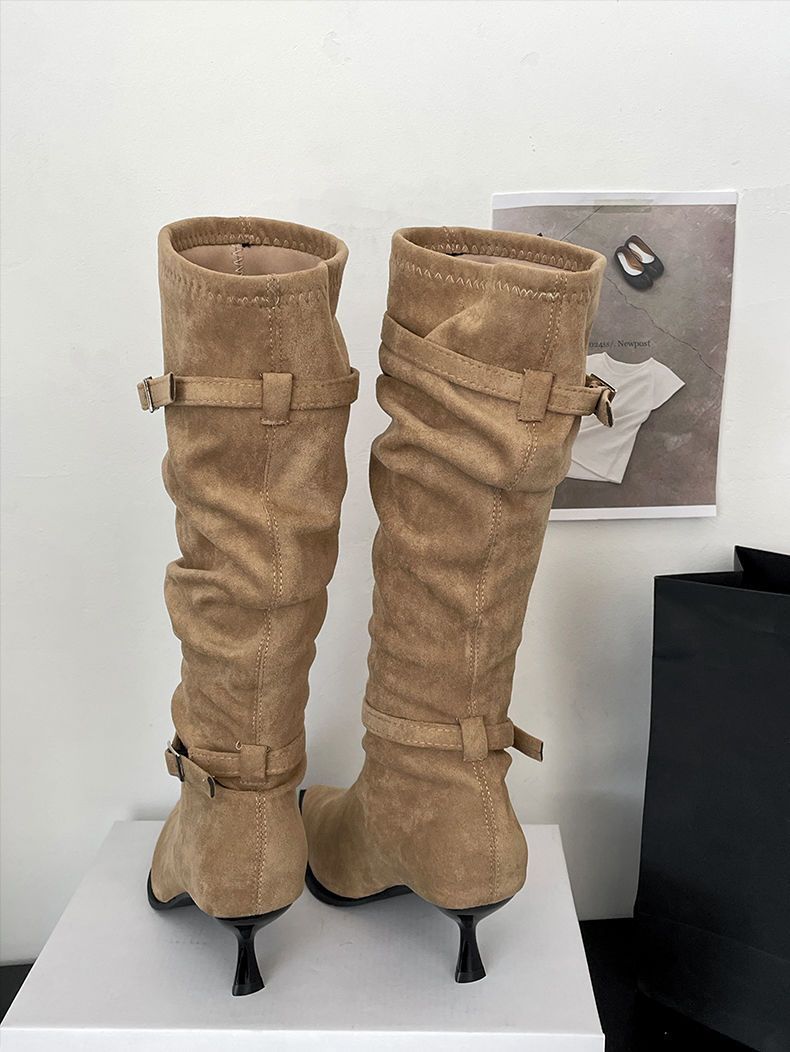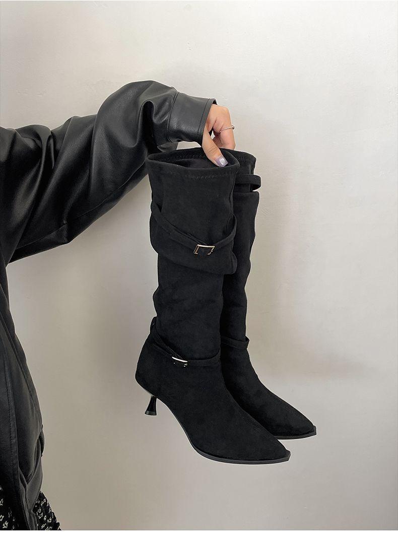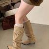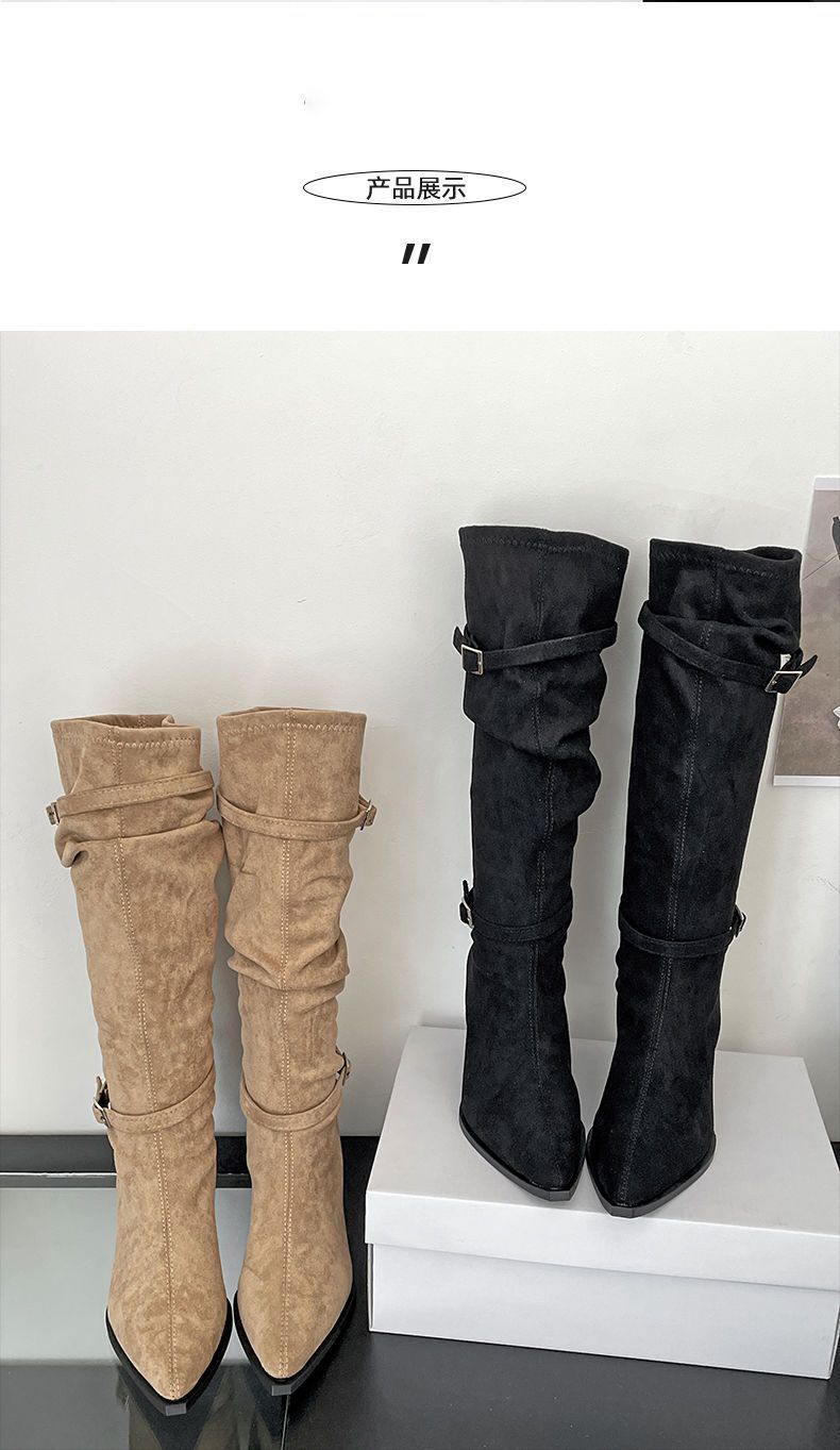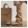 2025 Otoño/Invierno Nuevo Estilo con Falda Botas de Caballero Adelgazantes Estilo Británico Vintage Botas de Tacón de Aguja Punta Afilada Botas hasta la Rodilla para Mujer