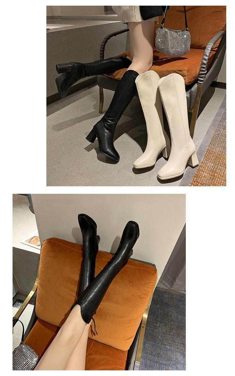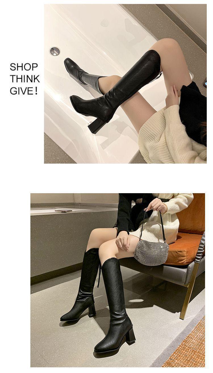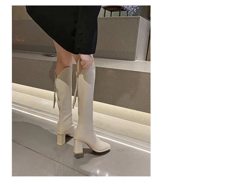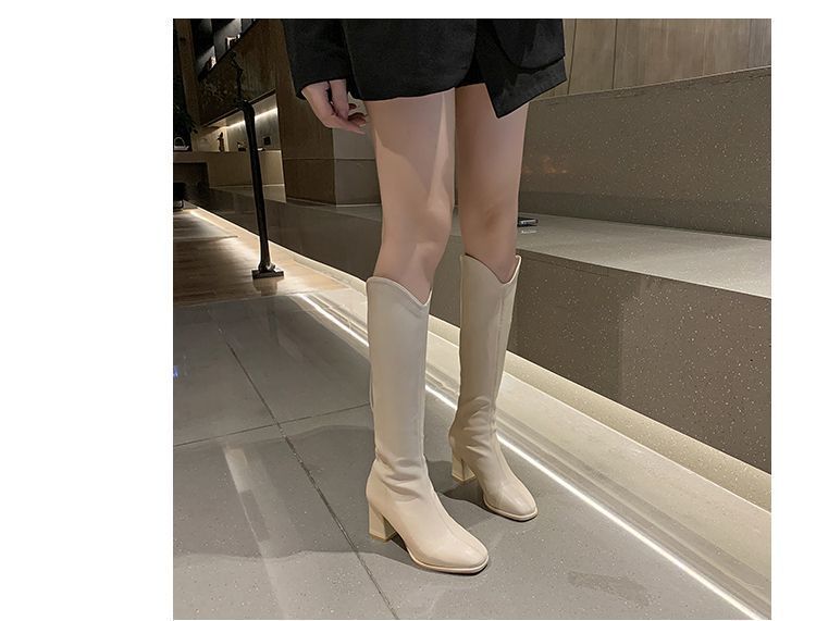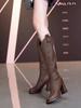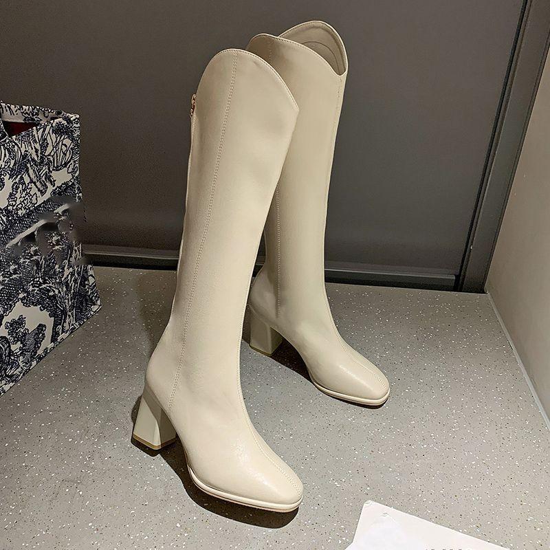 Botas largas versátiles de tacón alto con tacón grueso por encima de la rodilla, botas altas para mujer, botas de caballero, otoño/invierno 2025, nuevo estilo británico, adelgazantes