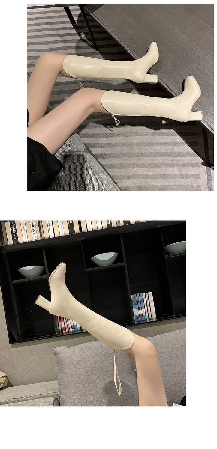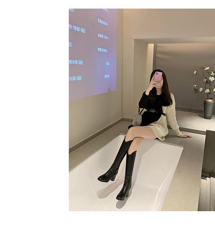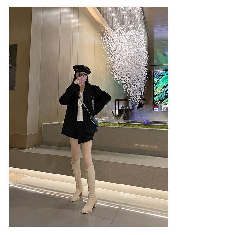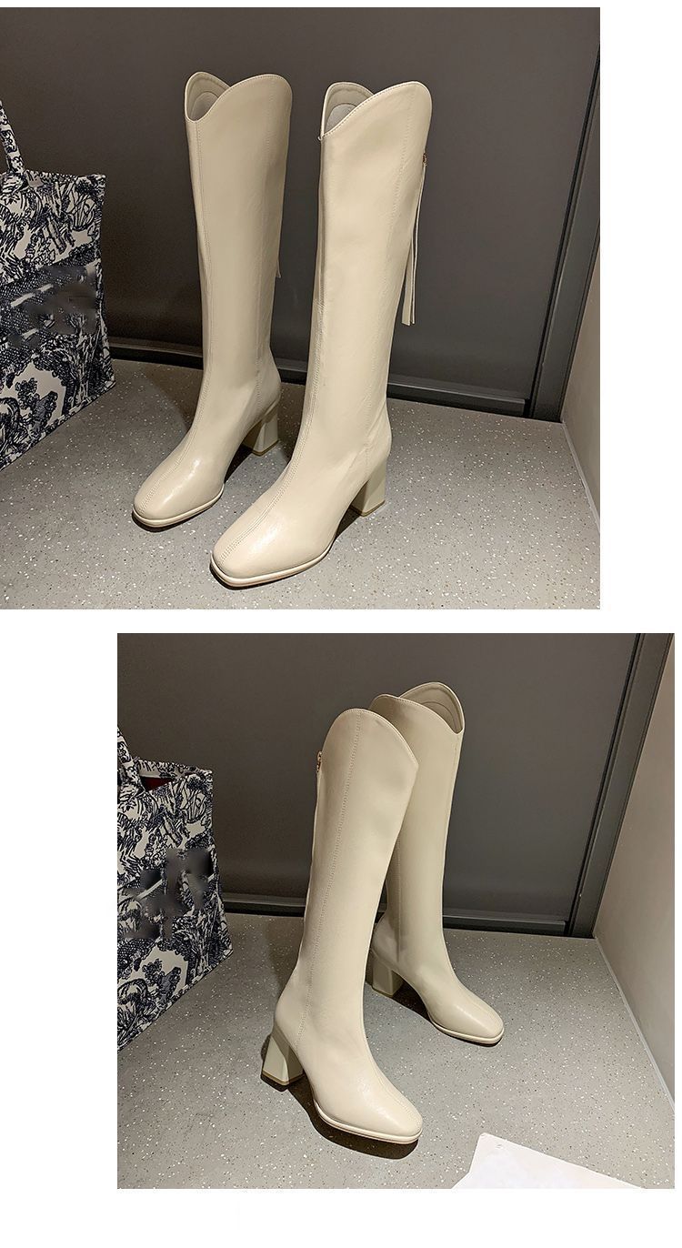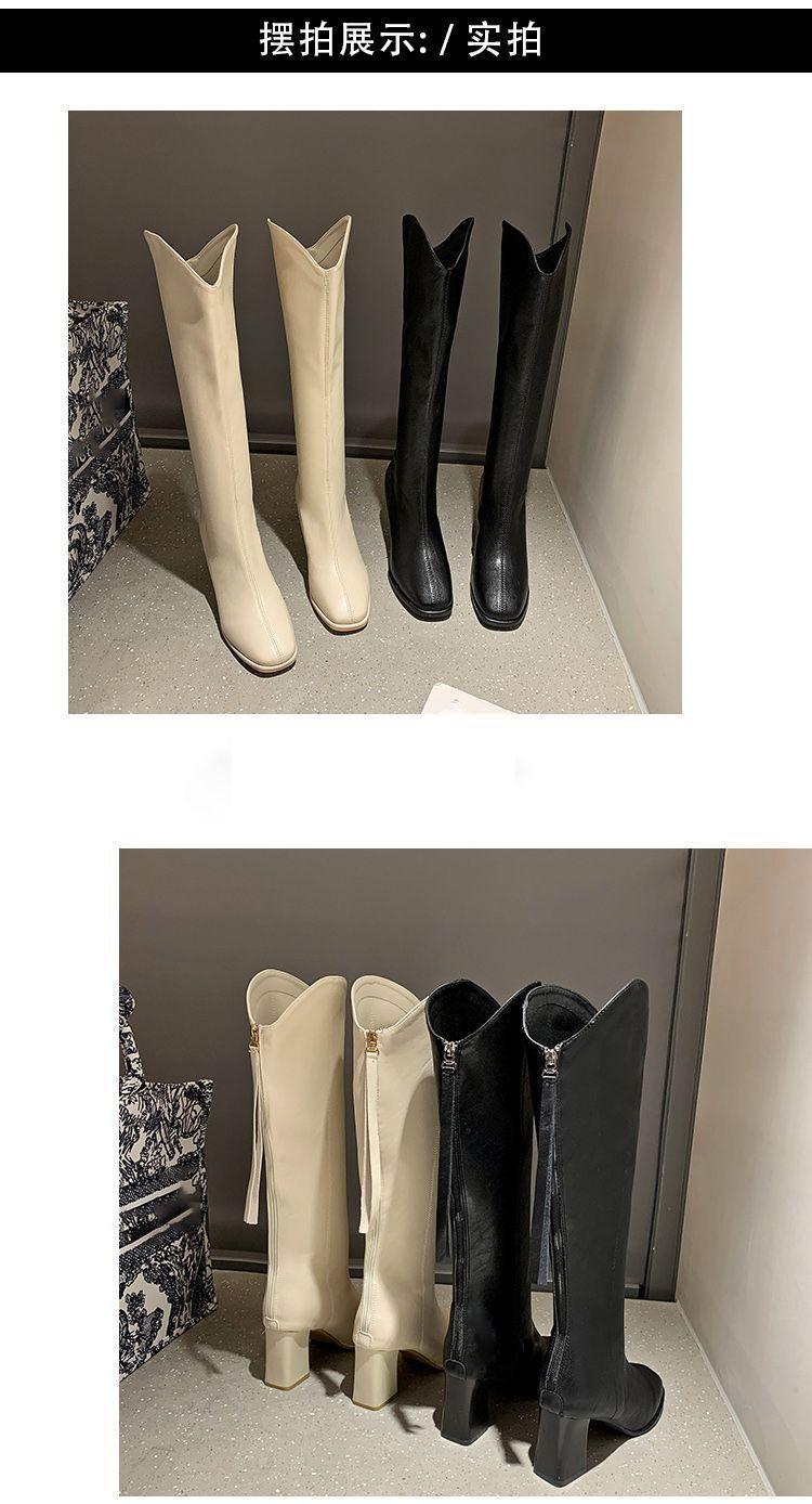 Botas largas versátiles de tacón alto con tacón grueso por encima de la rodilla, botas altas para mujer, botas de caballero, otoño/invierno 2025, nuevo estilo británico, adelgazantes