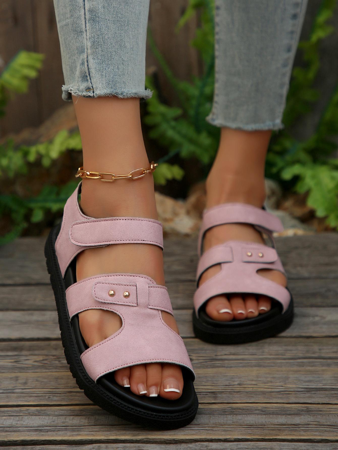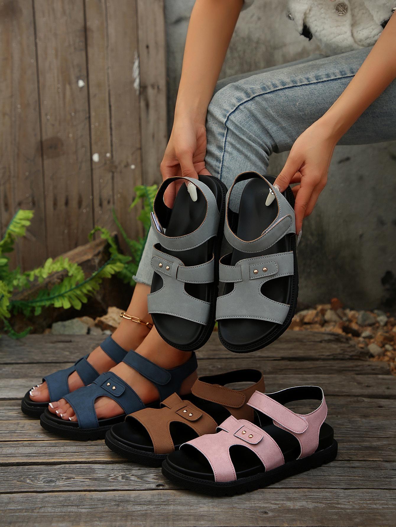 Comercio Exterior Nuevo Tamaño Grande Hebilla de Cinturón Sandalias de Suela Gruesa para Mujer Estilo Deportivo Transfronterizo Remaches Ligeras Sandalias de Playa y Pantuflas en Stock
