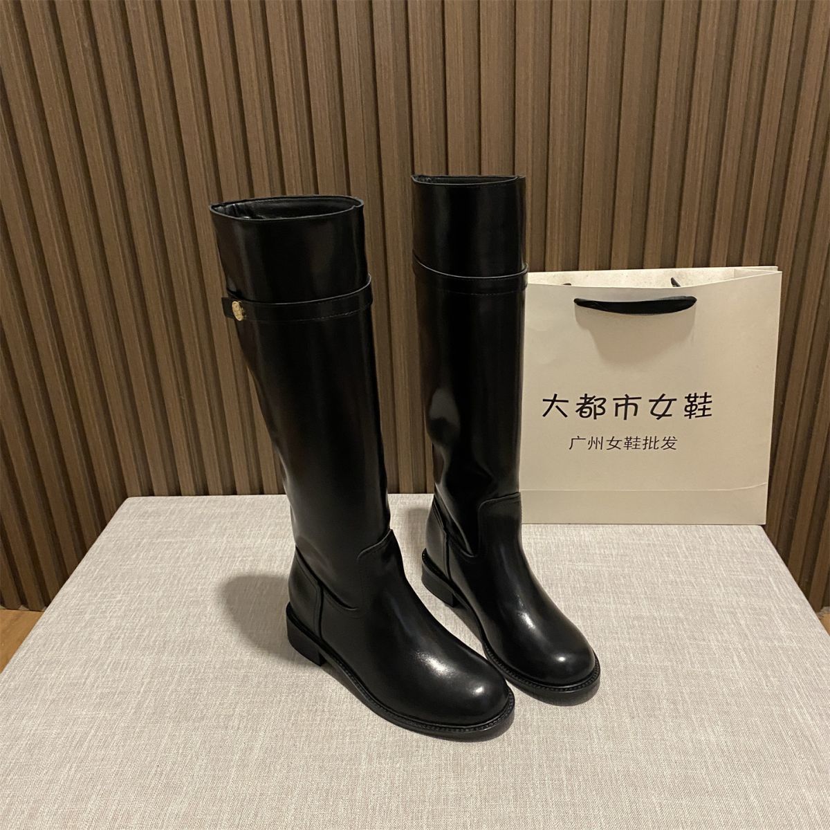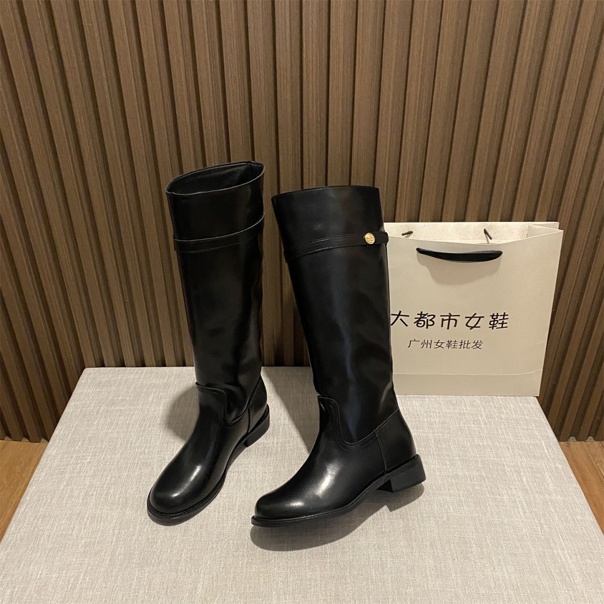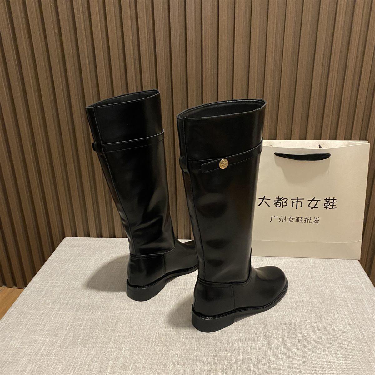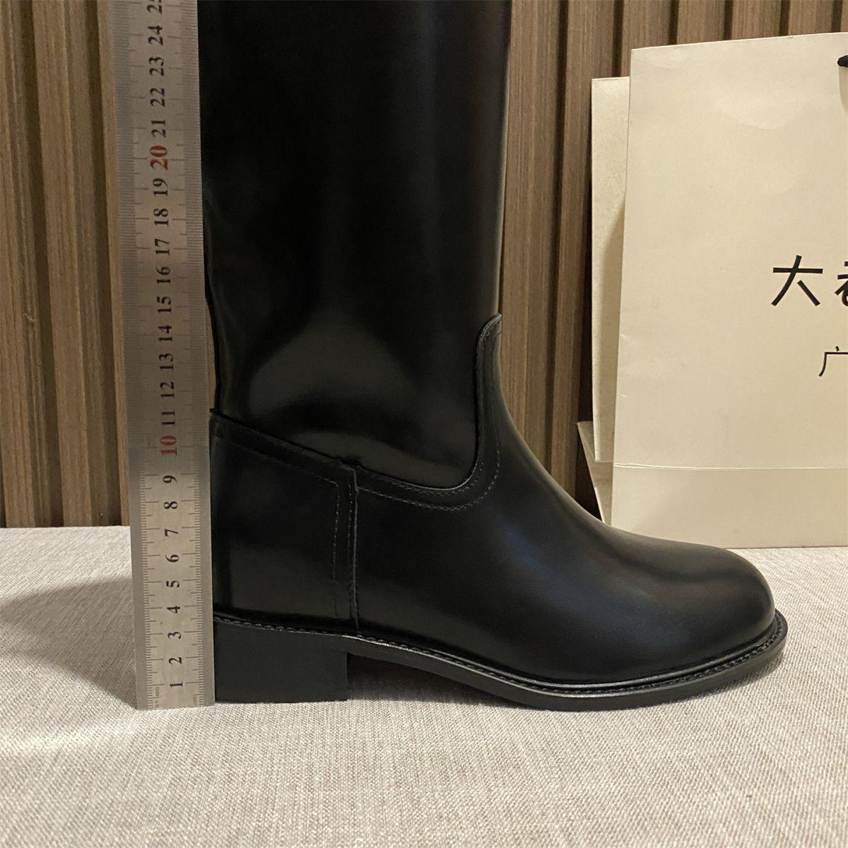 2025 Otoño/Invierno Nuevas Retro Punta Redonda Tacón Grueso Suela Gruesa Bota Alta de Tubo Alto hasta la Rodilla de Caballero Moneda de Oro Pequeña de Mujer