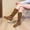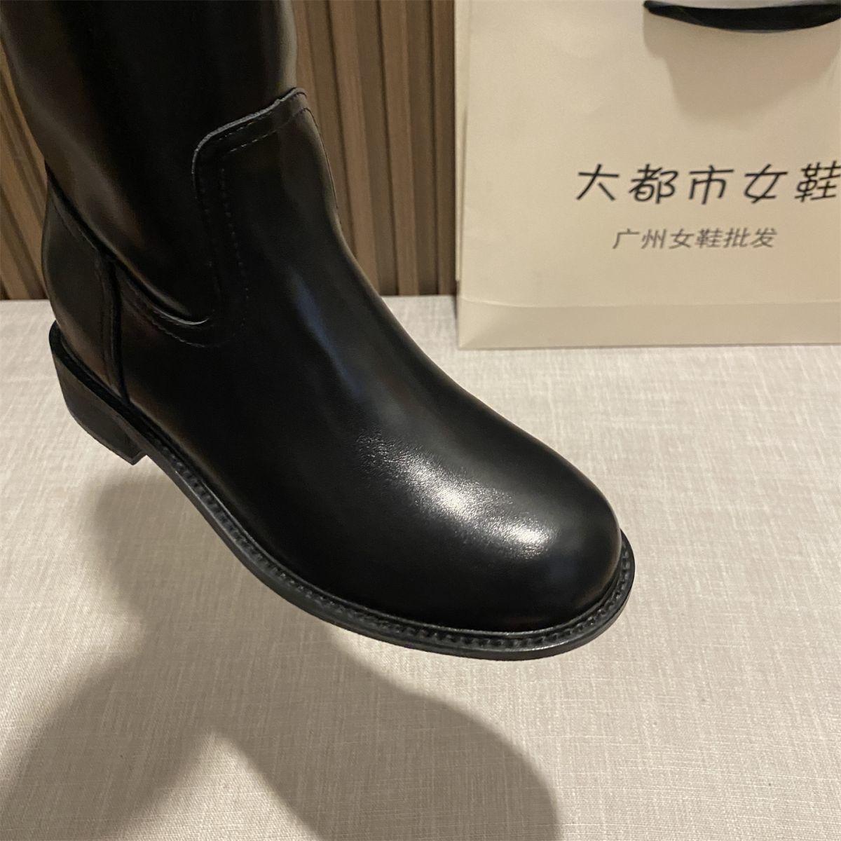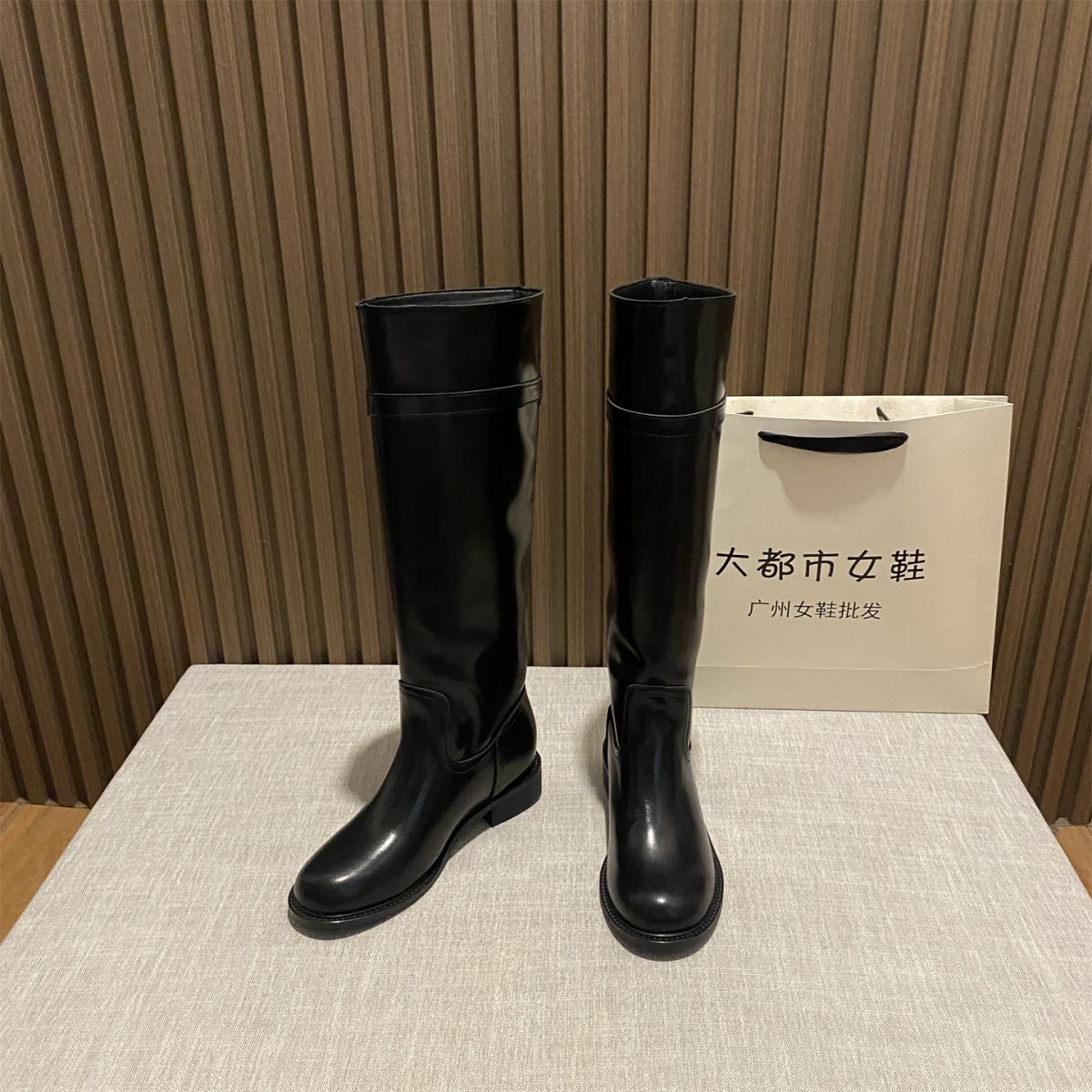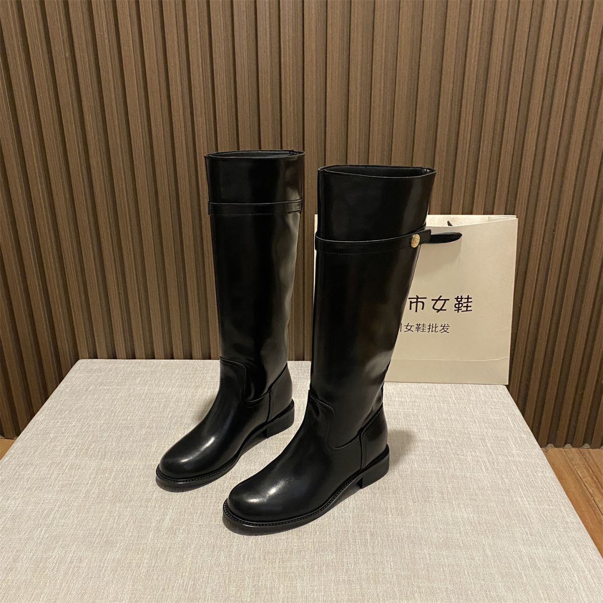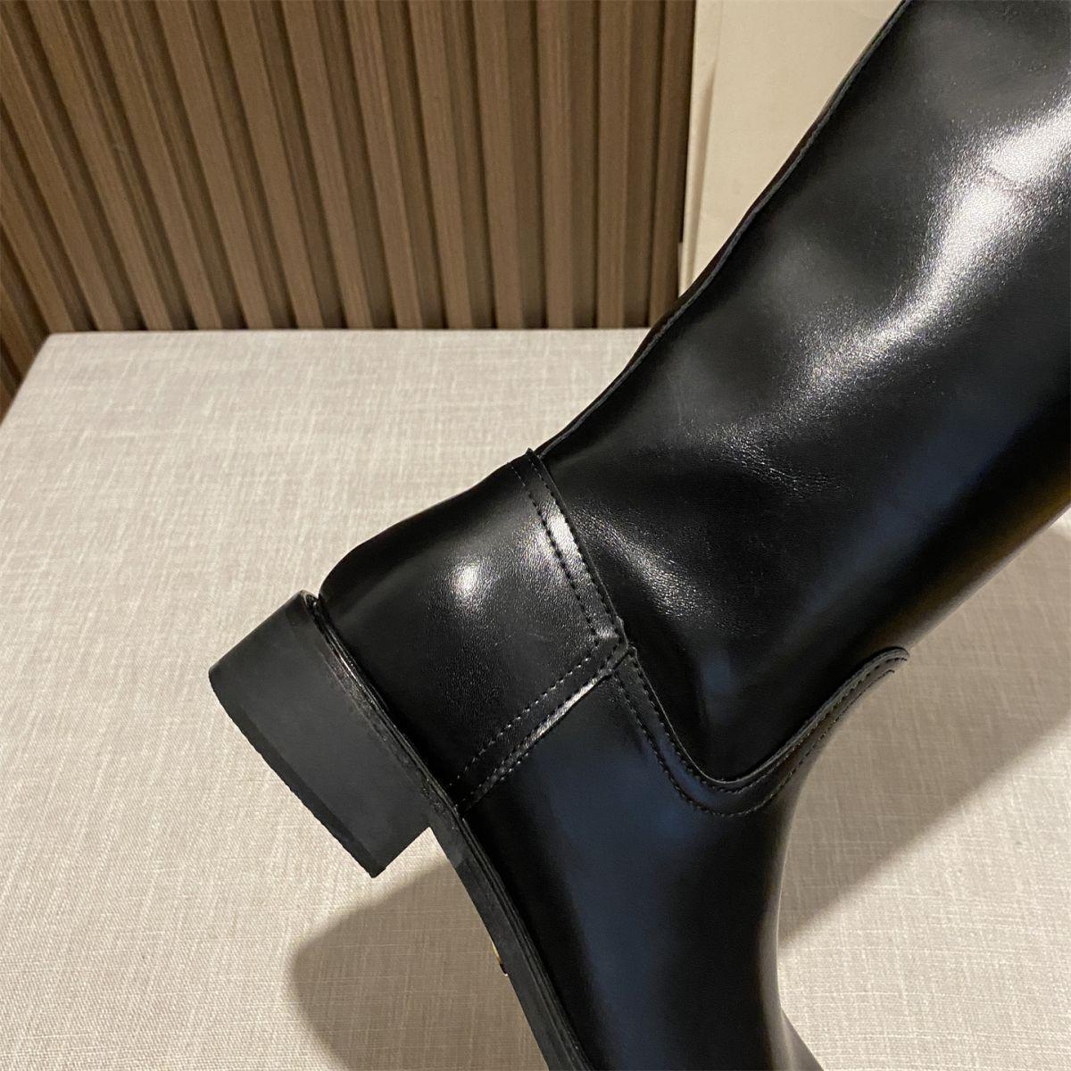 2025 Otoño/Invierno Nuevas Retro Punta Redonda Tacón Grueso Suela Gruesa Bota Alta de Tubo Alto hasta la Rodilla de Caballero Moneda de Oro Pequeña de Mujer