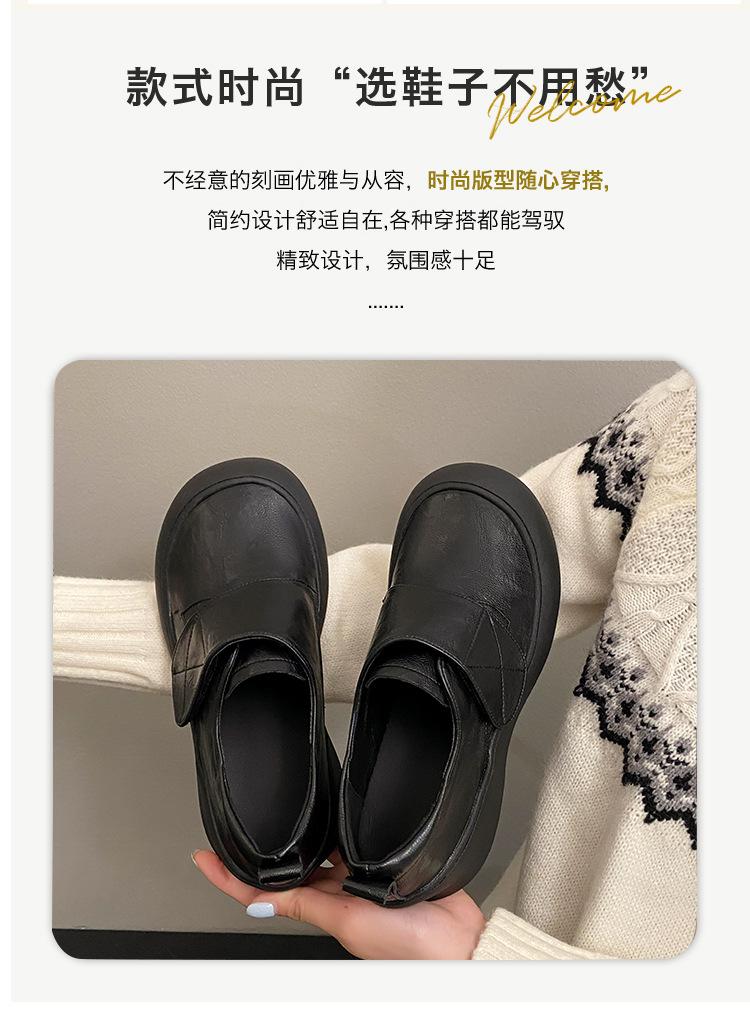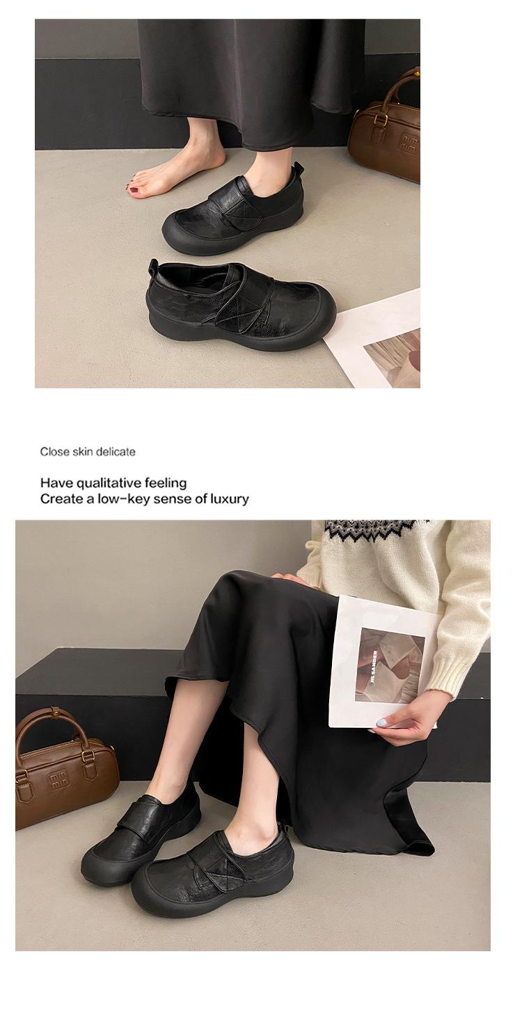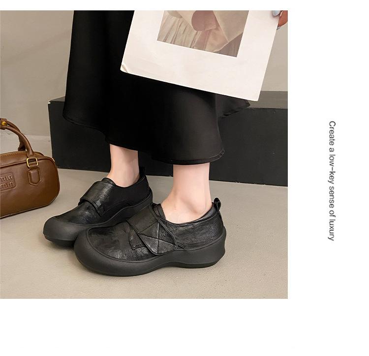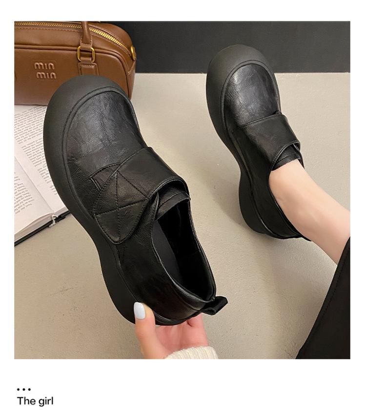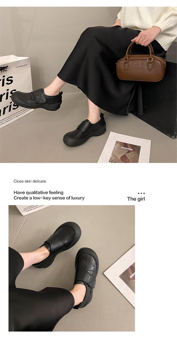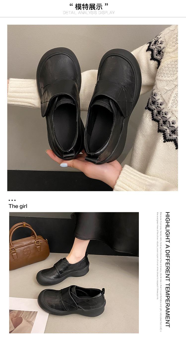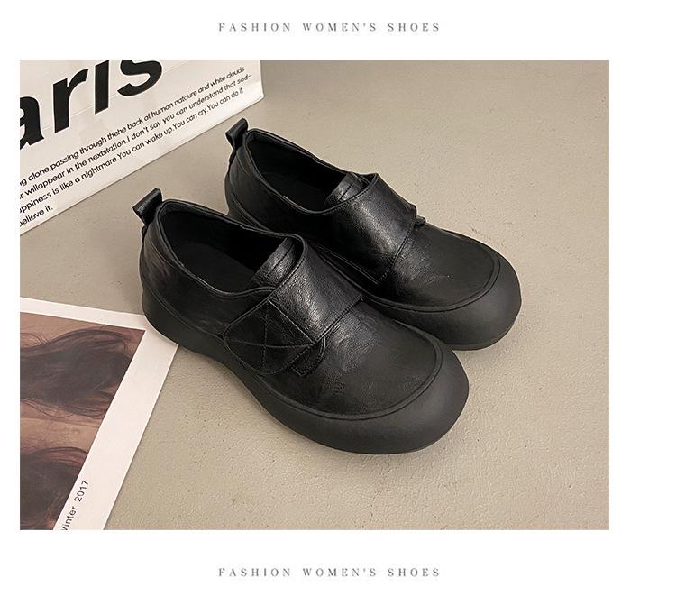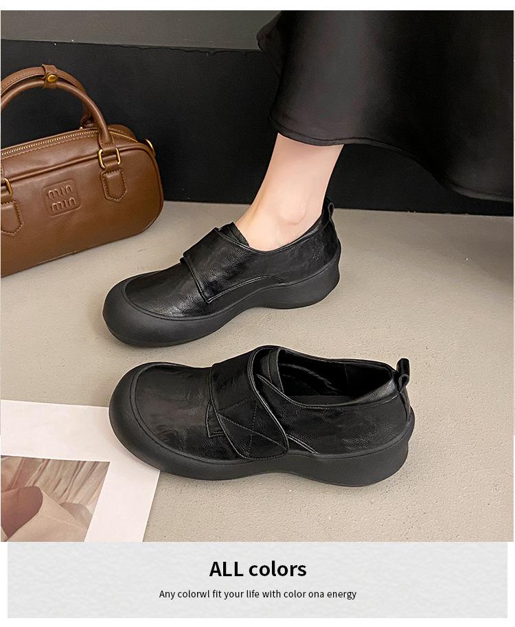 Mocasines de Suela Gruesa Velcro Slip-on Zapatos Pequeños de Cuero Viajar Versátil Cuero Sintético Plano Casual Zapatos Individuales