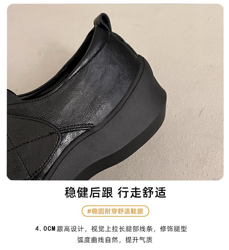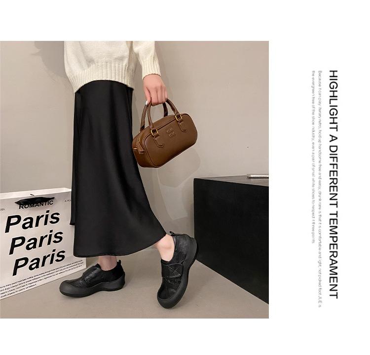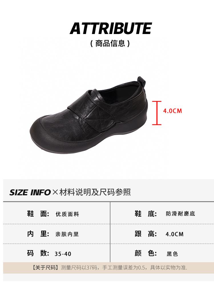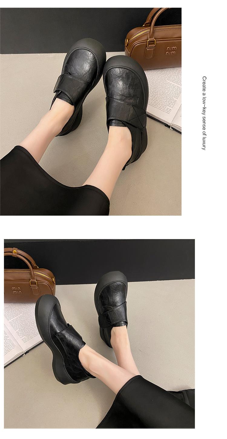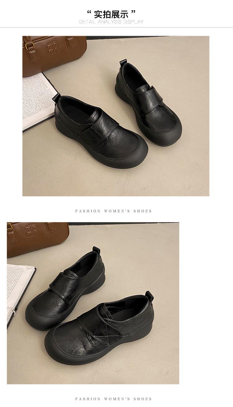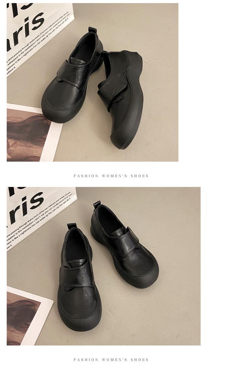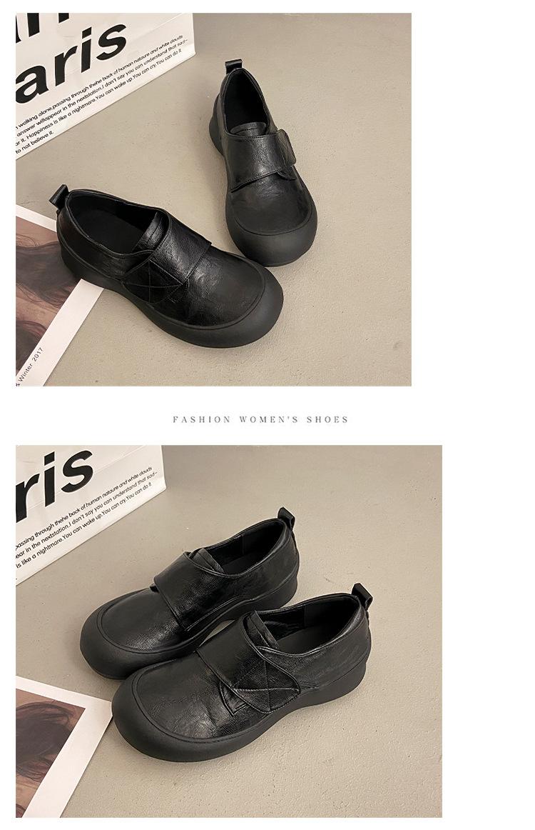 Mocasines de Suela Gruesa Velcro Slip-on Zapatos Pequeños de Cuero Viajar Versátil Cuero Sintético Plano Casual Zapatos Individuales
