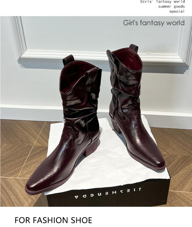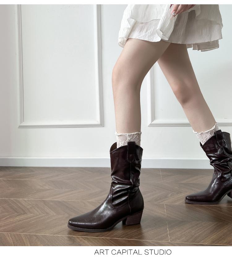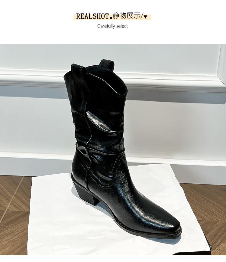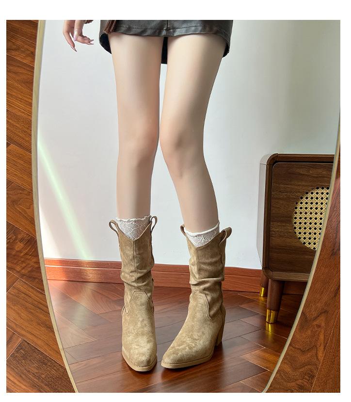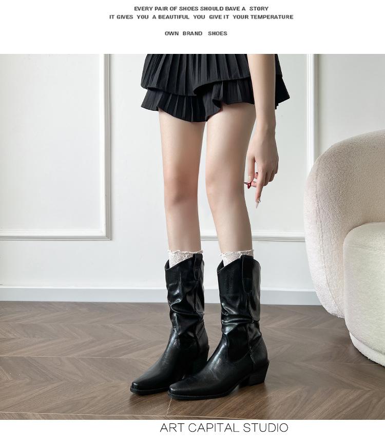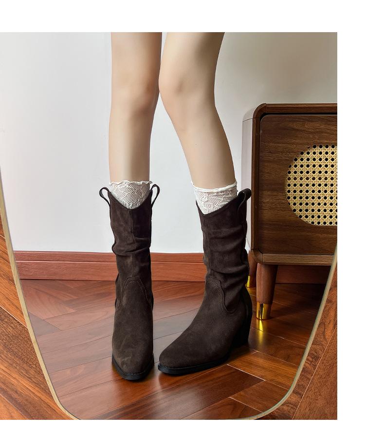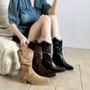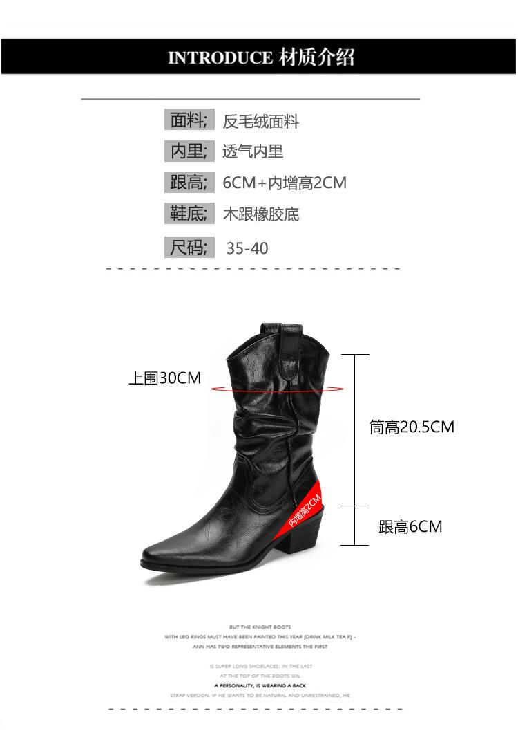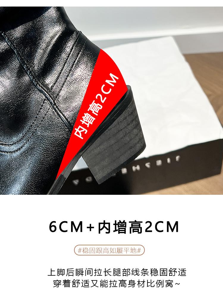 Uva Mamá~8cm Botas Apiladas para Aumentar Altura para Mujer Otoño 2025 Hebilla en V Adelgazantes Tacón Grueso Myelad Media Pantorrilla Botas Martin
