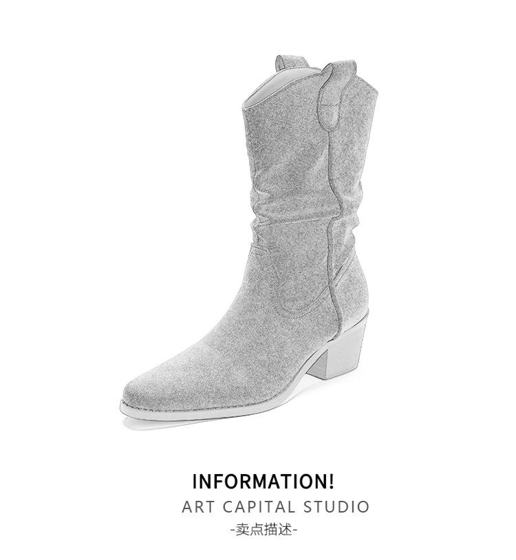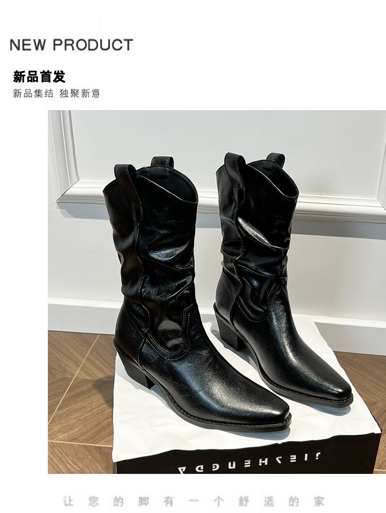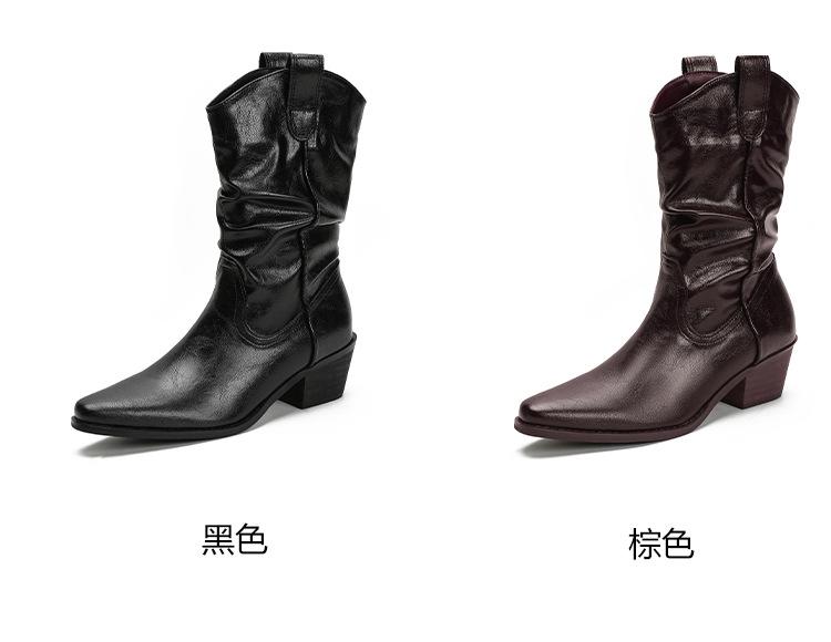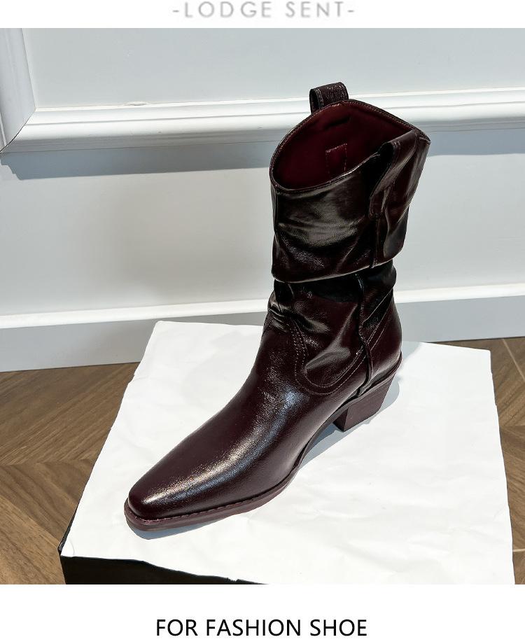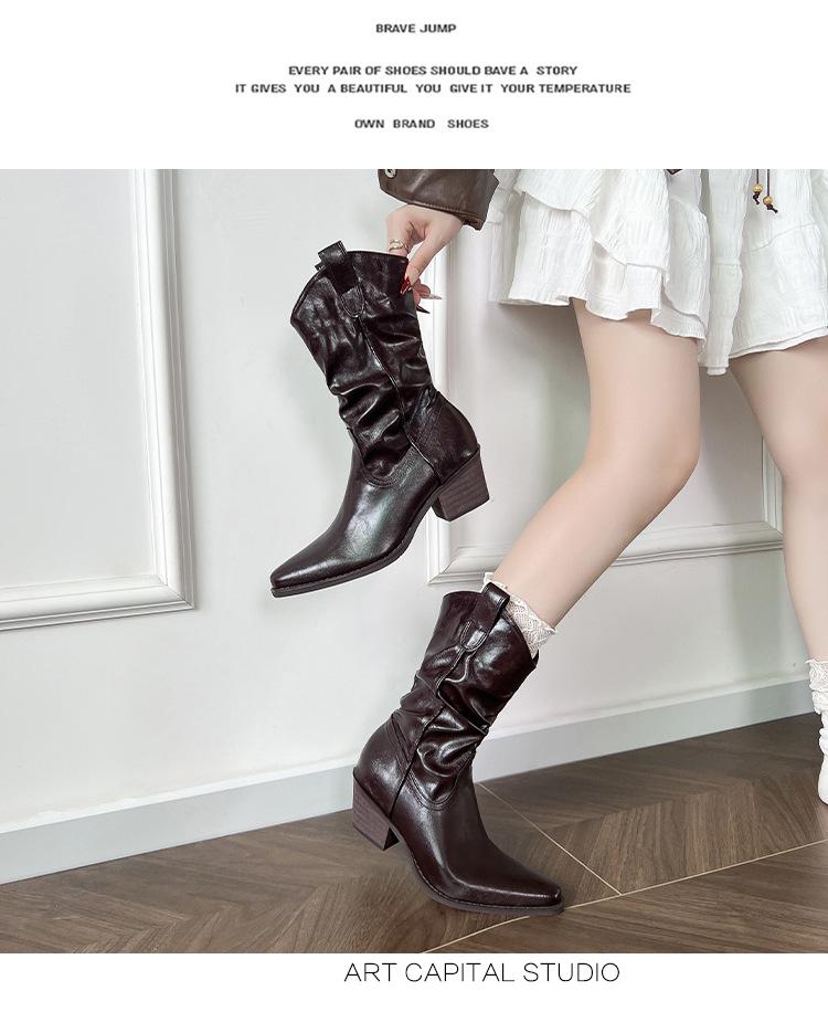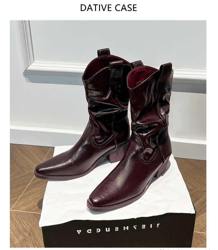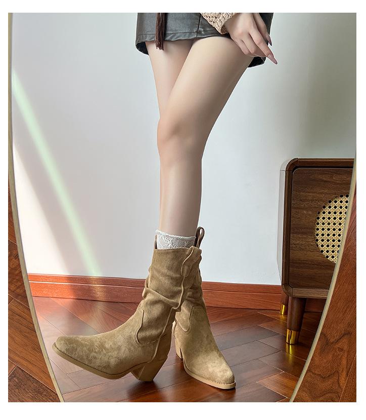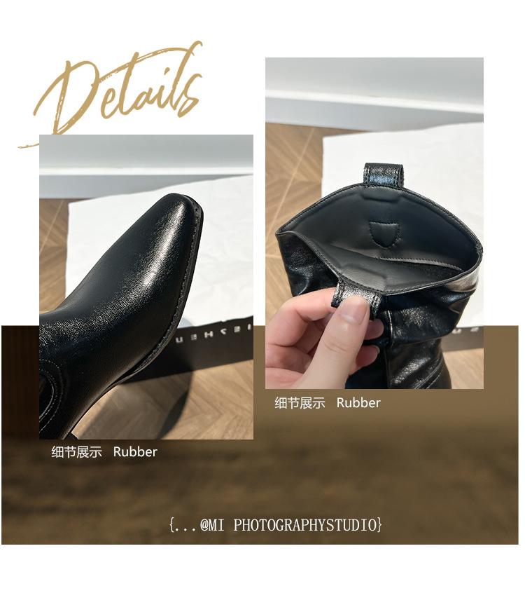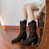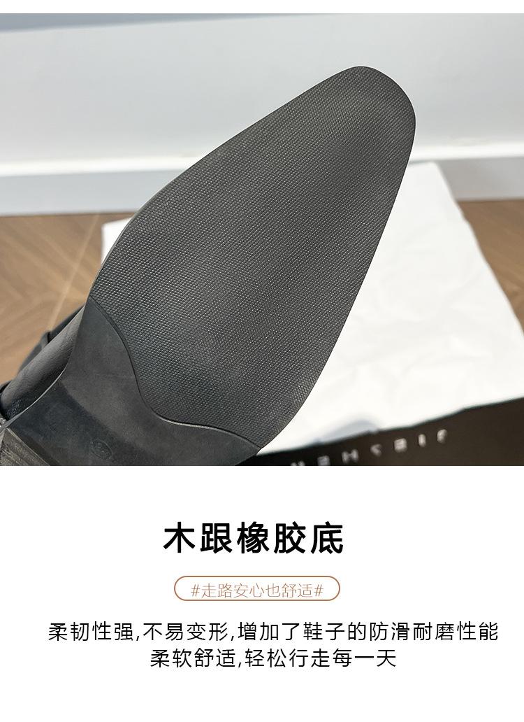 Uva Mamá~8cm Botas Apiladas para Aumentar Altura para Mujer Otoño 2025 Hebilla en V Adelgazantes Tacón Grueso Myelad Media Pantorrilla Botas Martin