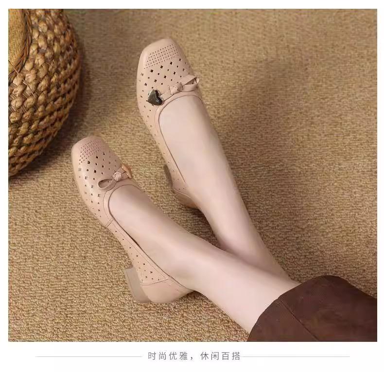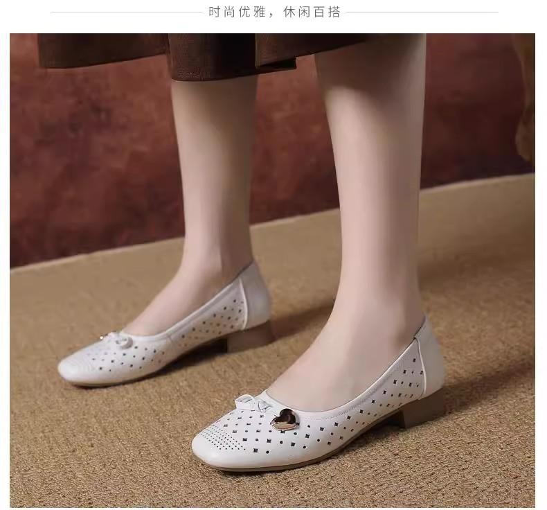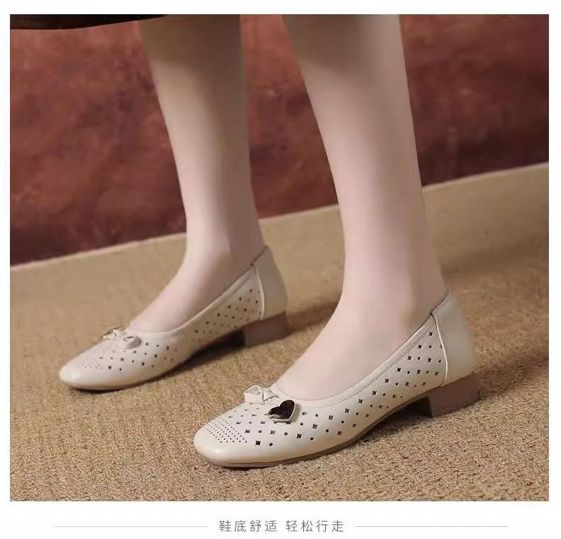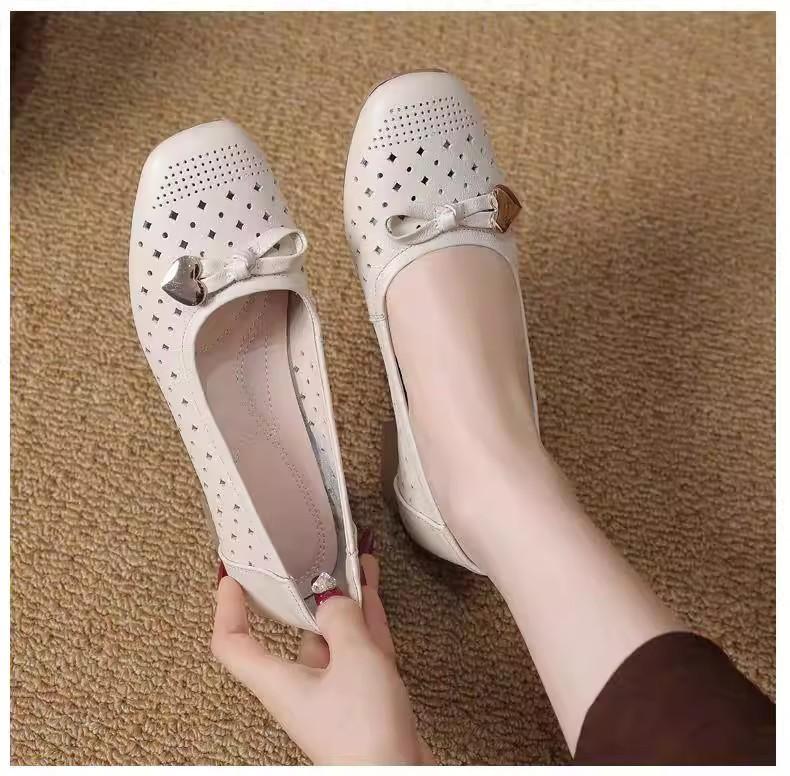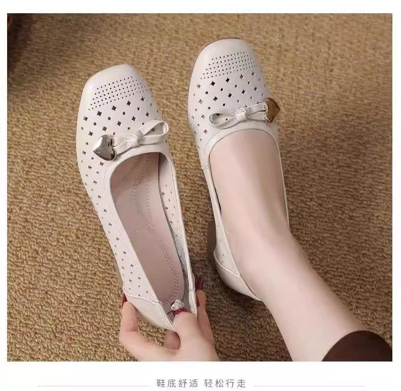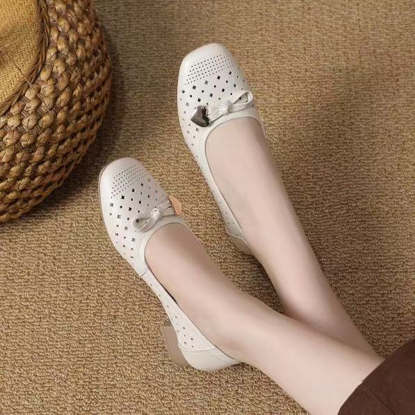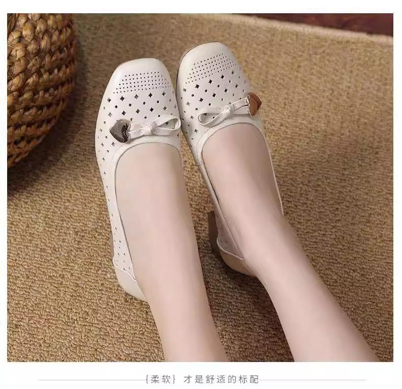 Zapatos nuevos de otoño para mujer 2025 zapatos de cuero para madre de mediana edad zapatos de cuero de suela blanda zapatos con agujeros transpirables zapatos individuales mujer