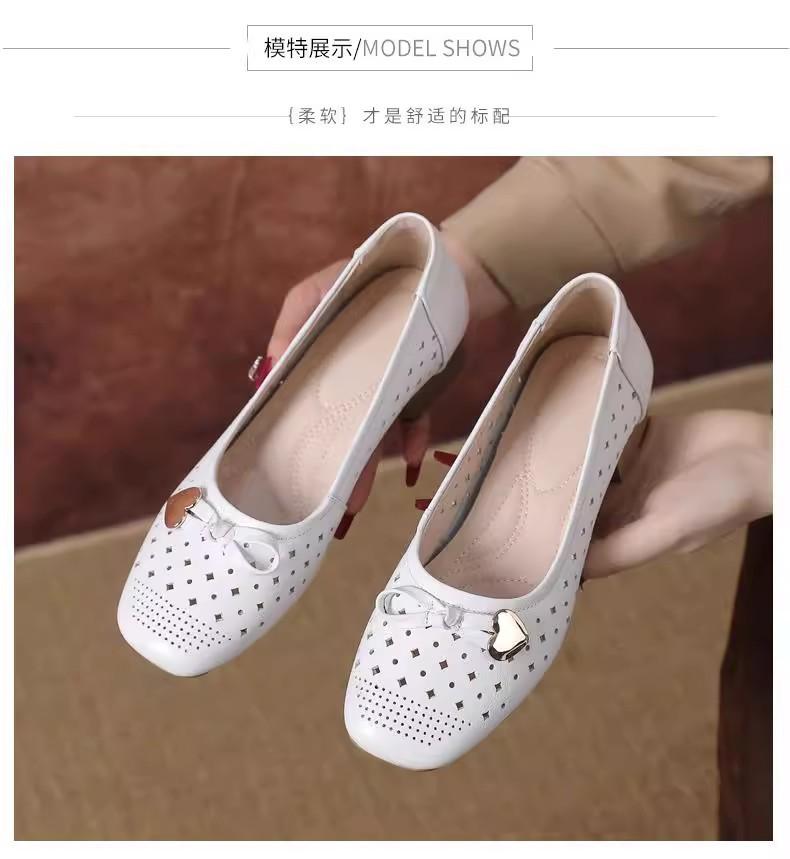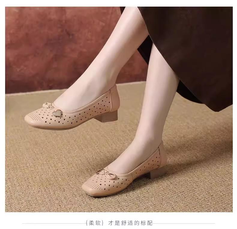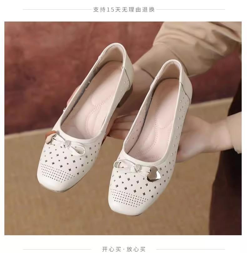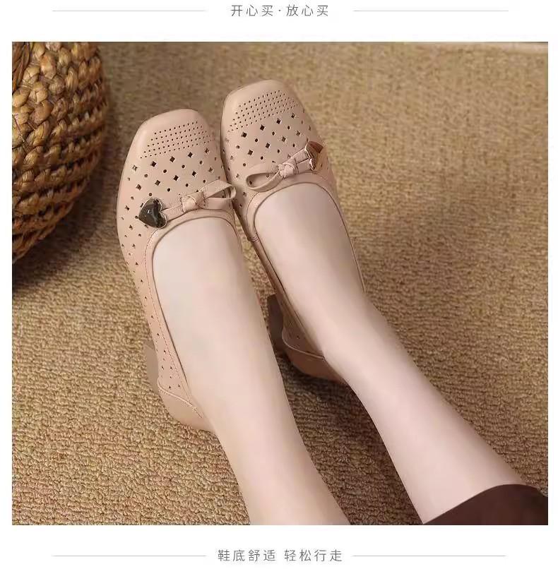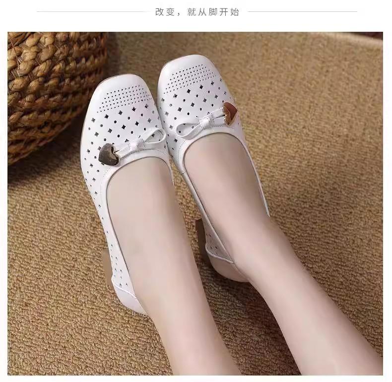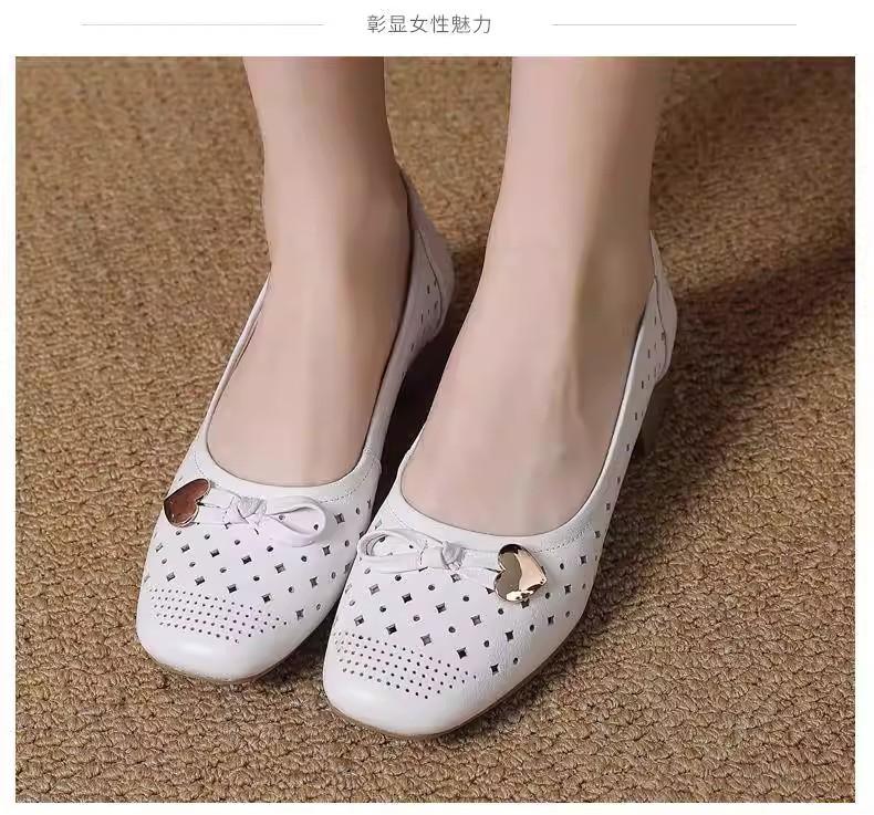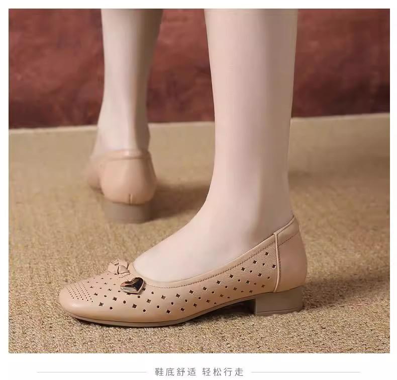 Zapatos nuevos de otoño para mujer 2025 zapatos de cuero para madre de mediana edad zapatos de cuero de suela blanda zapatos con agujeros transpirables zapatos individuales mujer