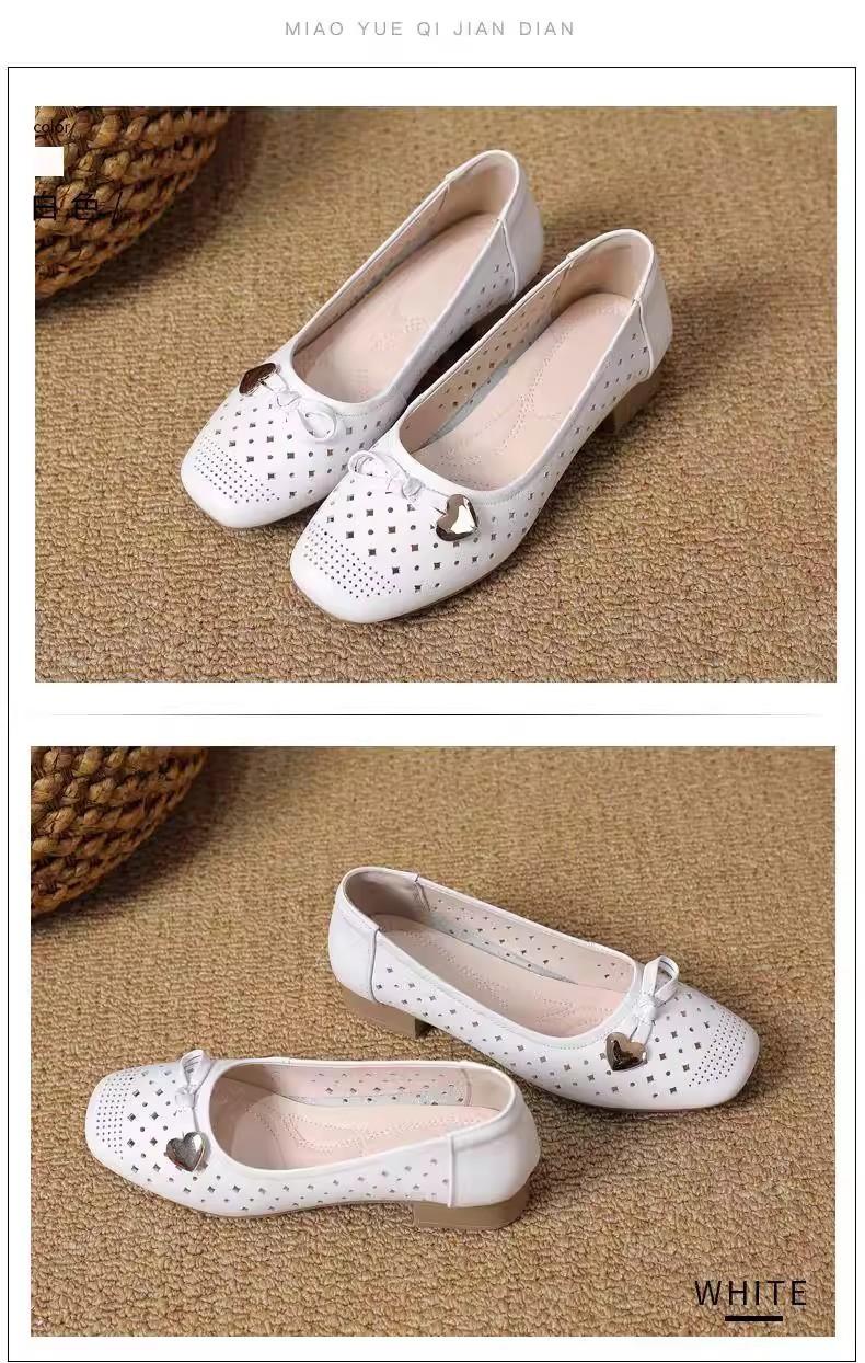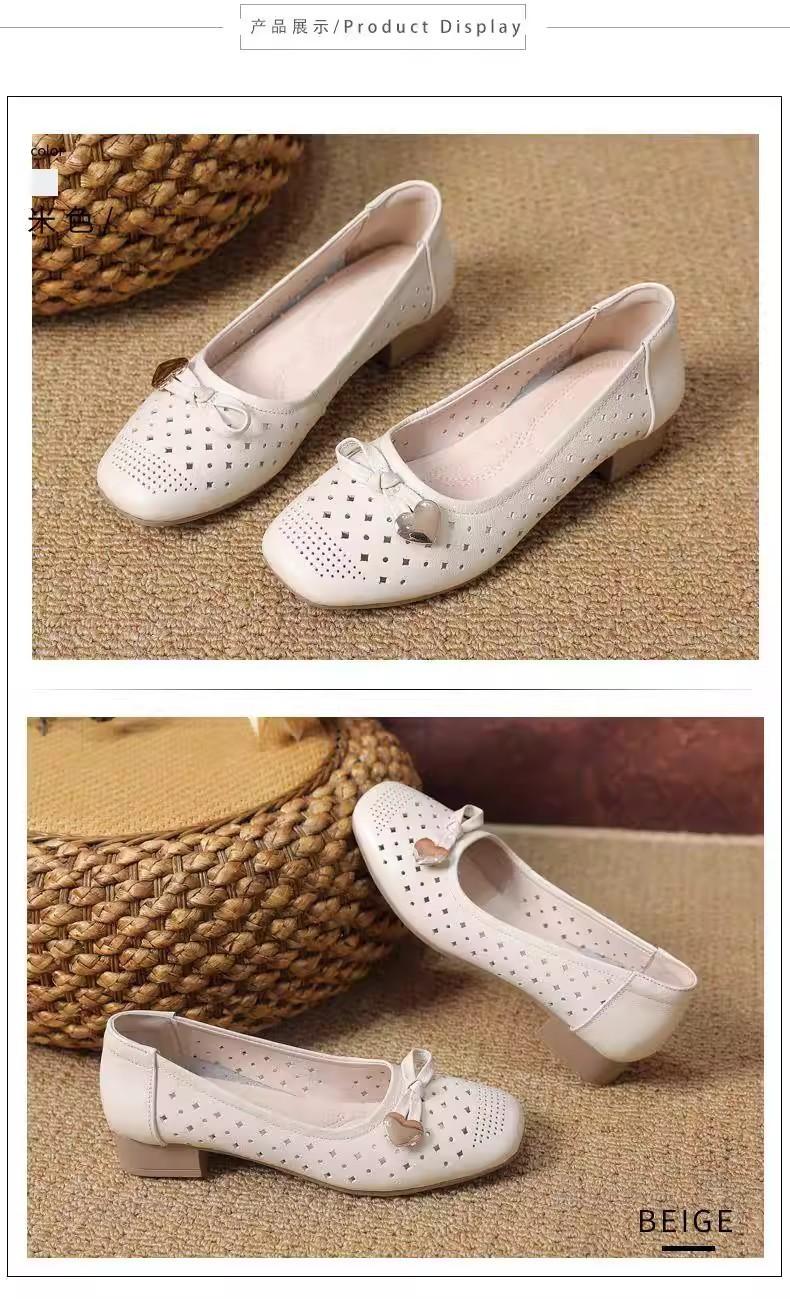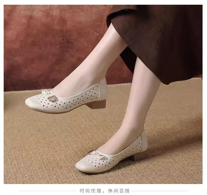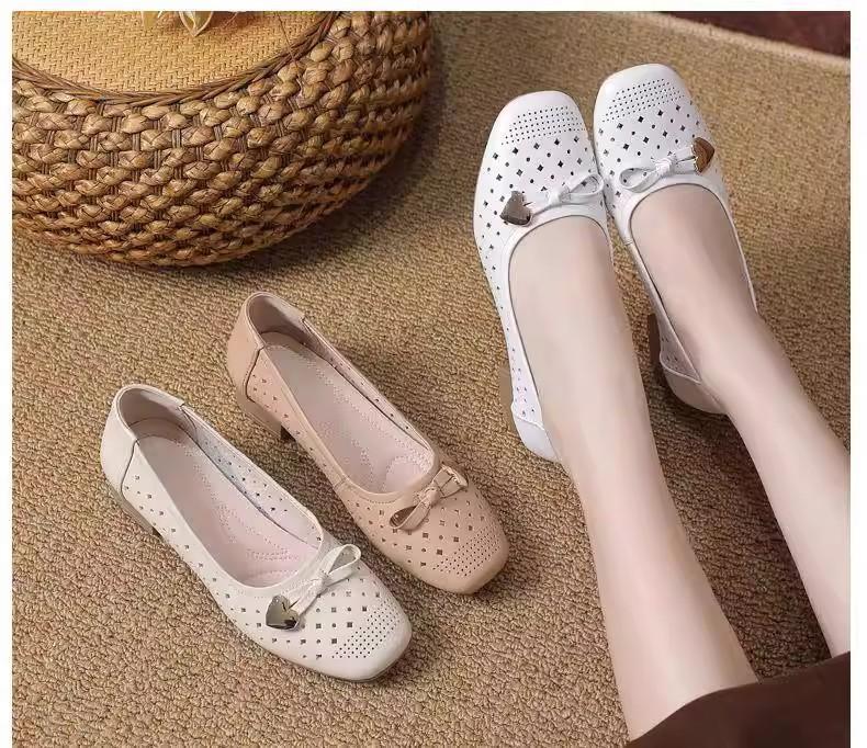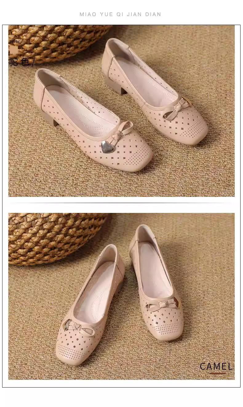 Zapatos nuevos de otoño para mujer 2025 zapatos de cuero para madre de mediana edad zapatos de cuero de suela blanda zapatos con agujeros transpirables zapatos individuales mujer