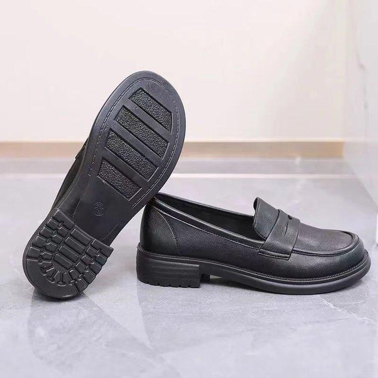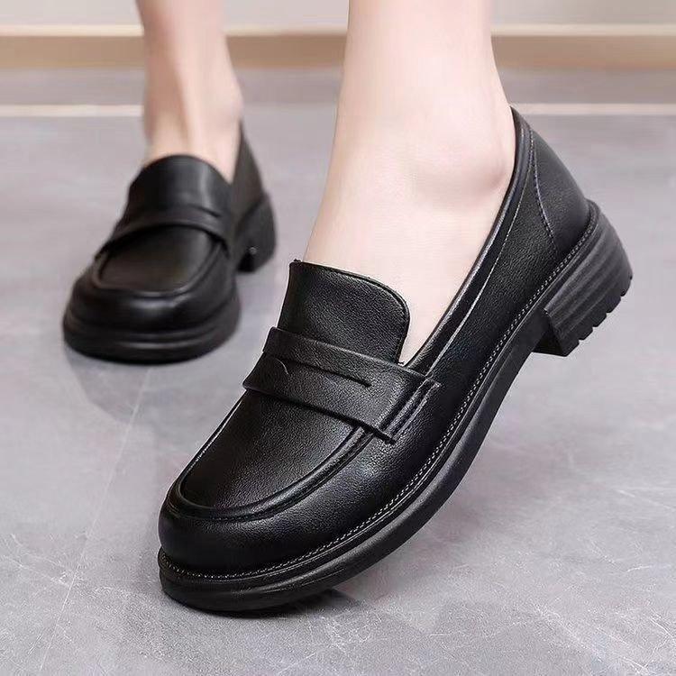 Zapatos de Otoño de Cuero Pequeños Estilo Británico Zapatos Individuales Mujer 2025 Nuevos Versátiles Negros de Cuero Suave Slip-on Mocasines Planos