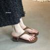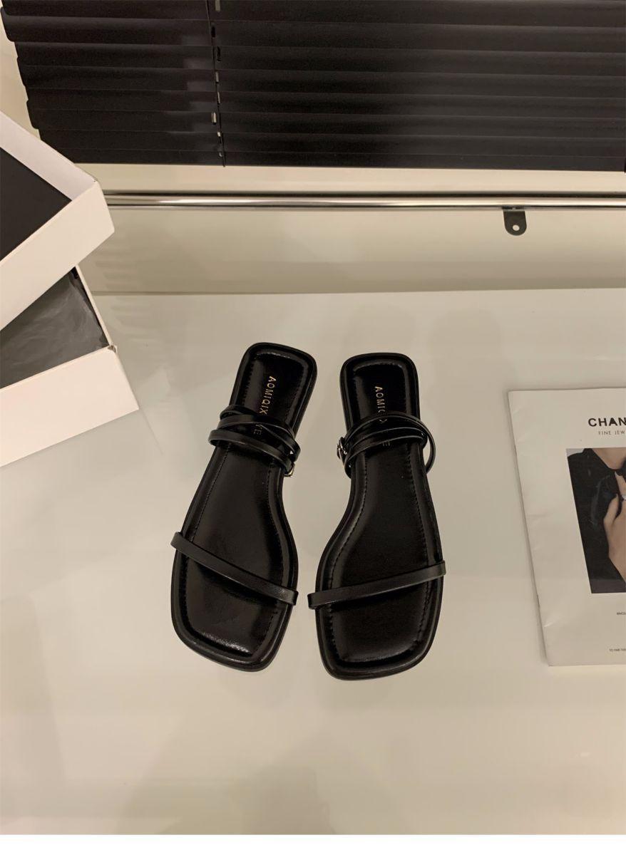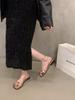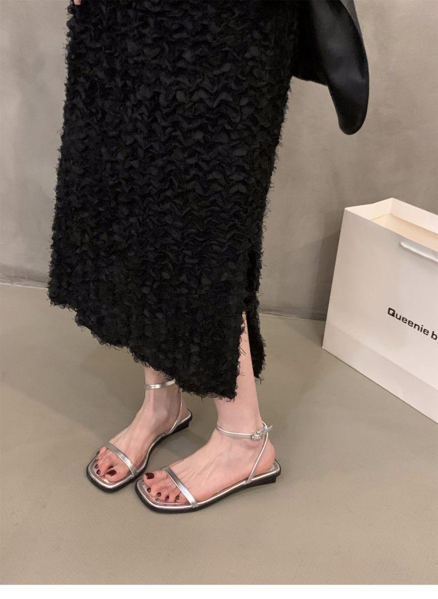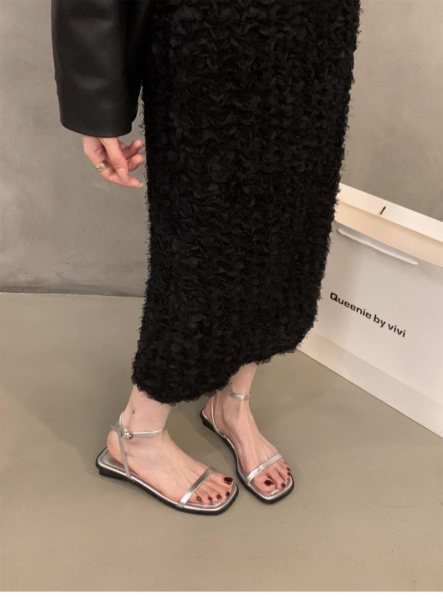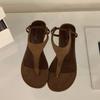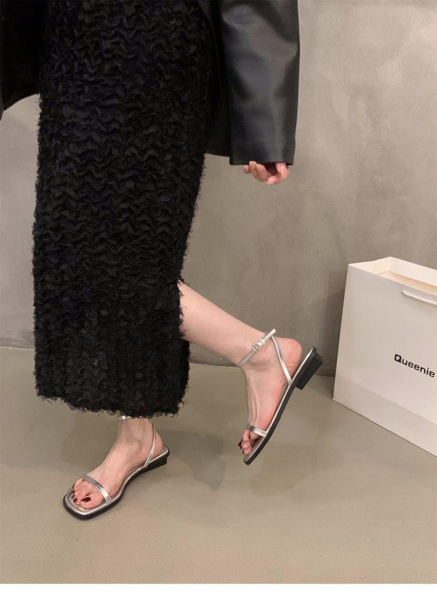 Sandalias planas negras francesas de tiras finas zapatos de hada 2025 nuevo verano suela suave estilo vacaciones de playa zapatos romanos