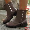 Botines cortos de cuero retro con hebilla de remaches para comercio exterior para mujer, talla grande transfronteriza, de meter, con tacón grueso y finos estilo Martin