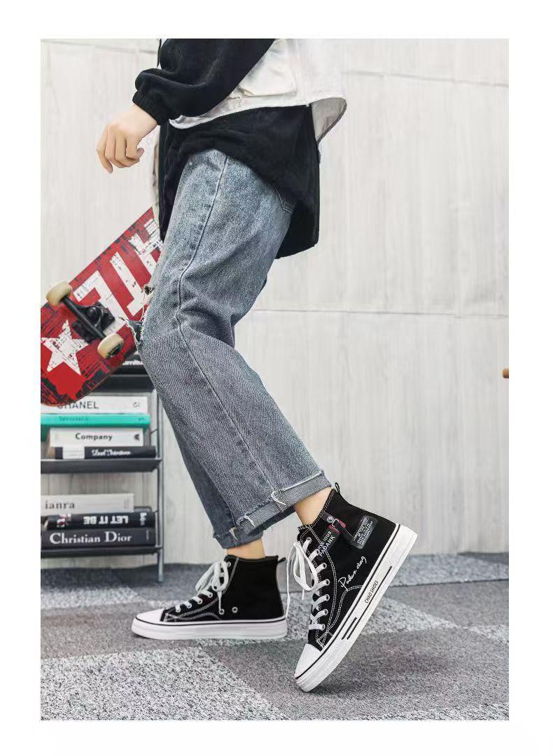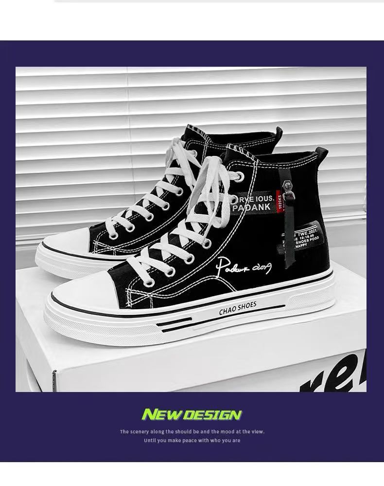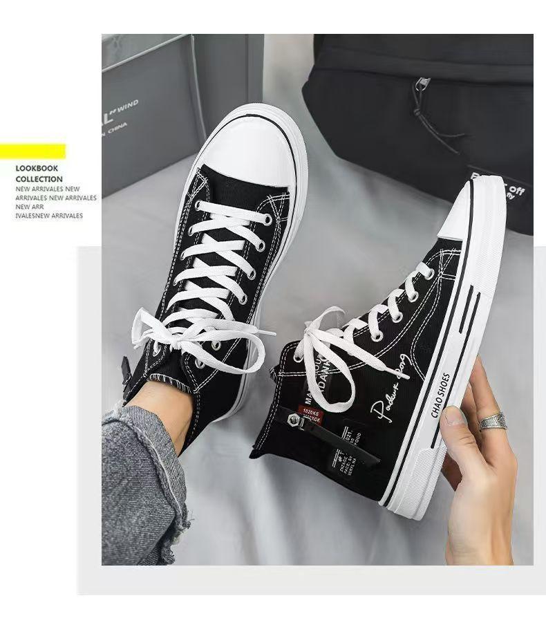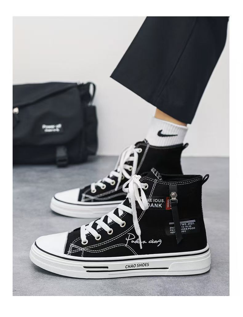 Zapatos de Tela para Hombre 2025 Nuevo Verano Negro Deportivo Versátil Casual Zapatos de Lona para Hombre Primavera y Otoño Zapatos de Skate de Caña Alta
