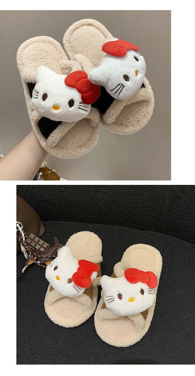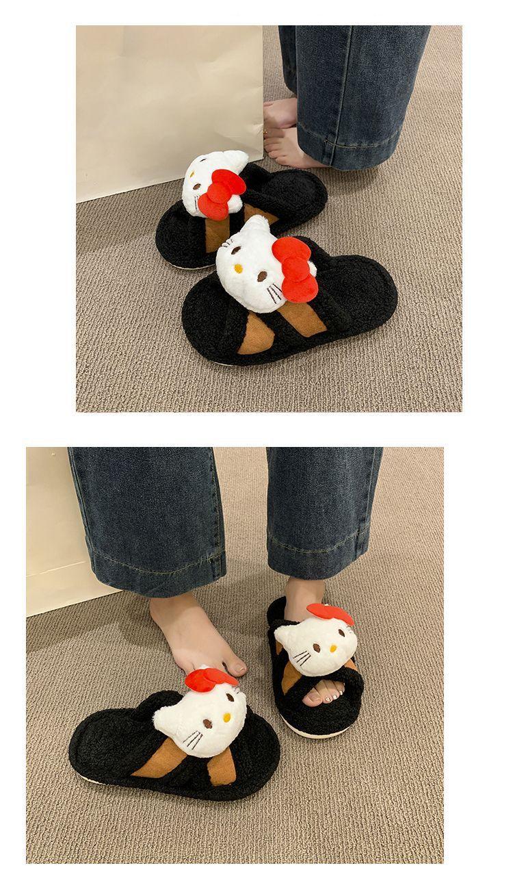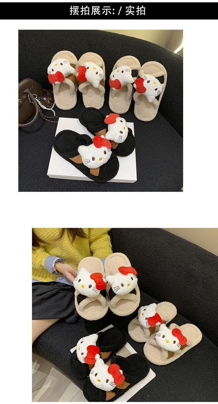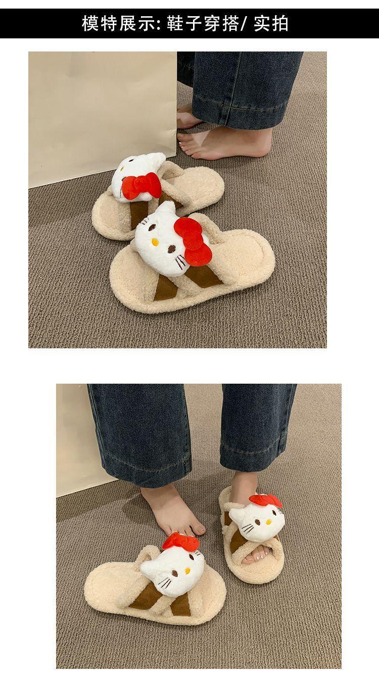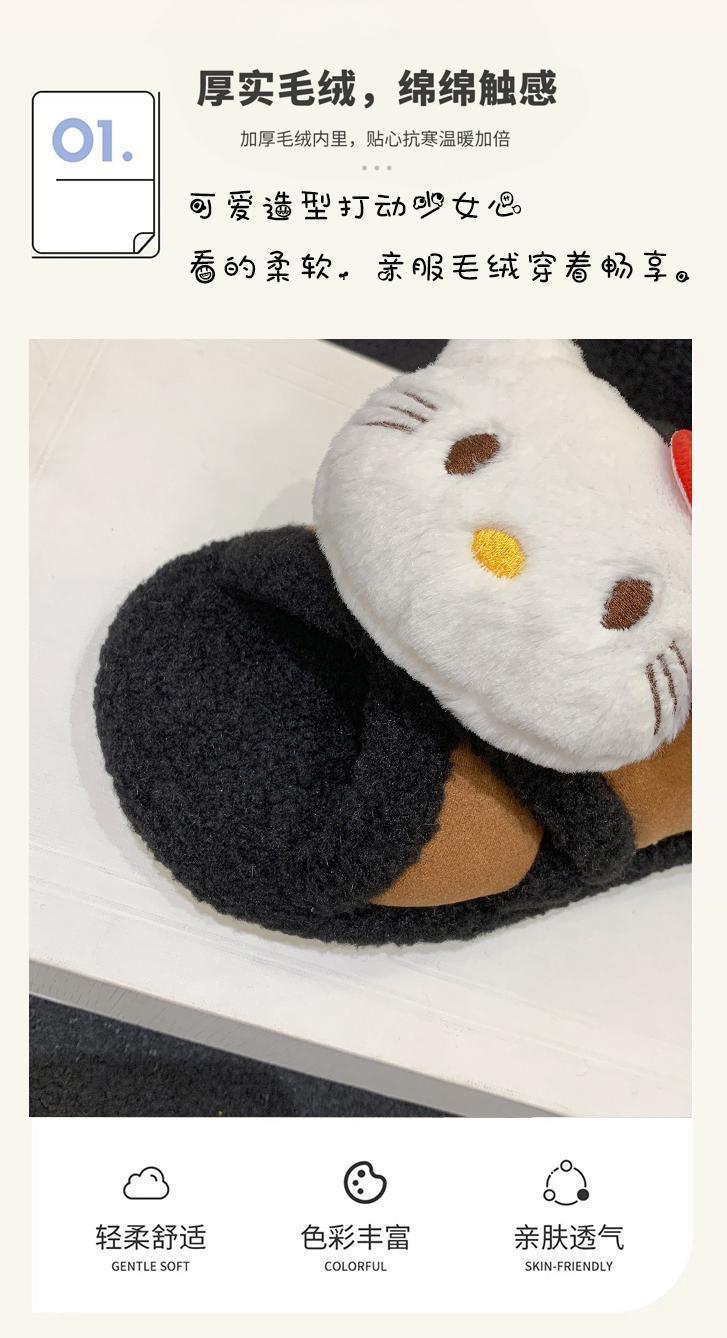 Hogar Suela Blanda Antideslizante Cómodas Pantuflas de Dibujos Animados de Una Tira 2025 Otoño/Invierno Nuevas Pantuflas Esponjosas de Gatito Lindo para Mujer