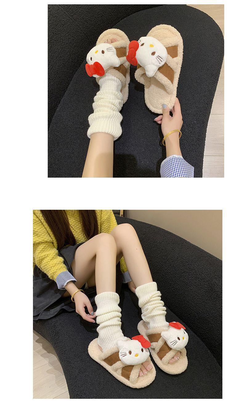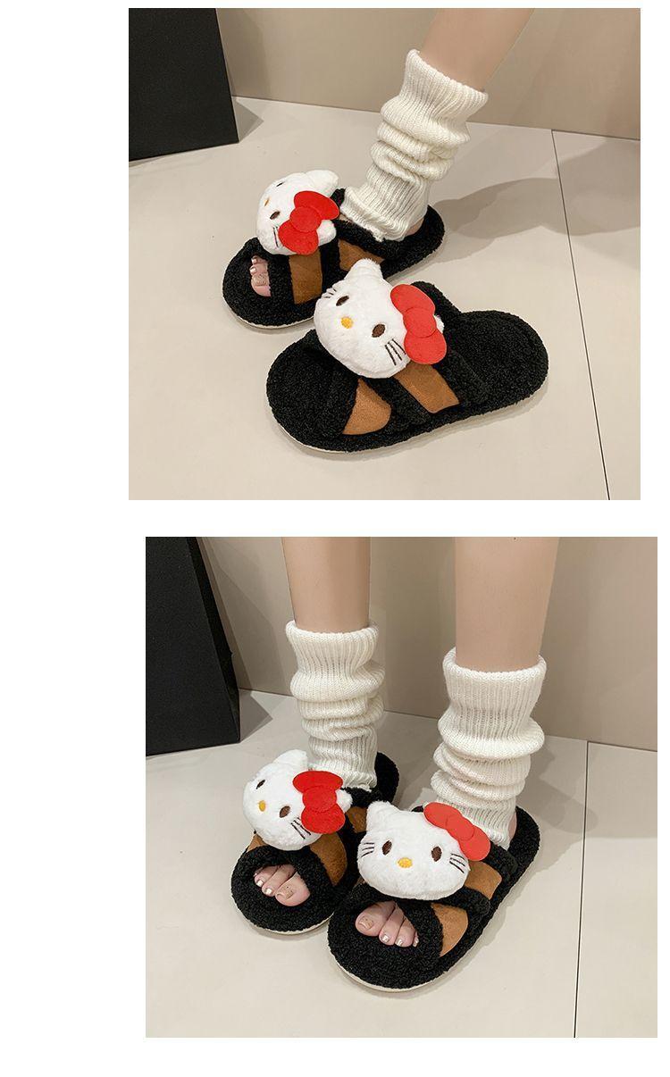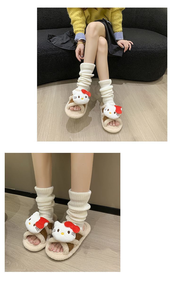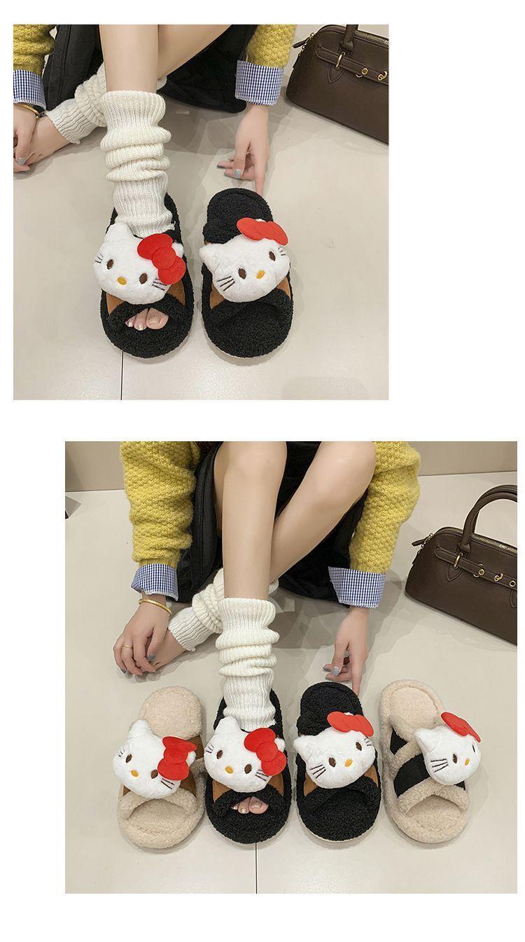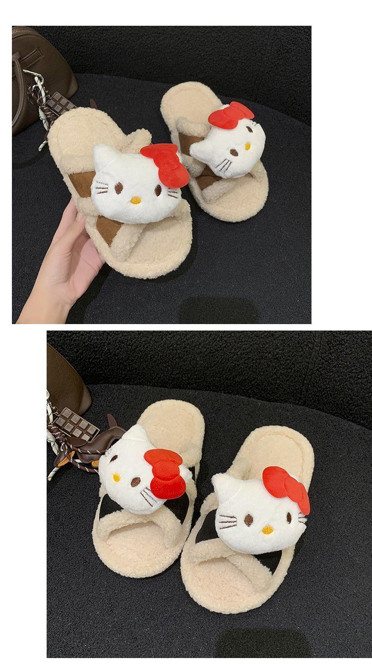 Hogar Suela Blanda Antideslizante Cómodas Pantuflas de Dibujos Animados de Una Tira 2025 Otoño/Invierno Nuevas Pantuflas Esponjosas de Gatito Lindo para Mujer