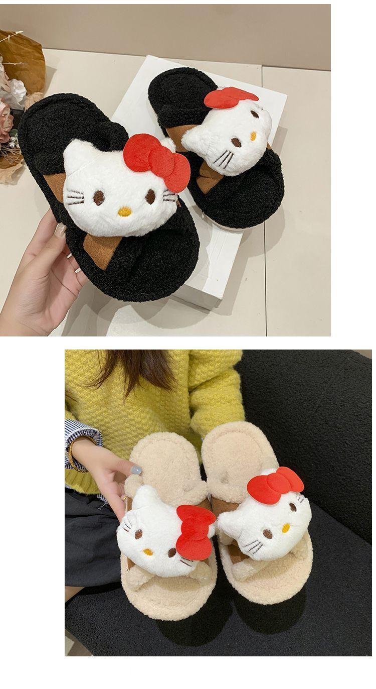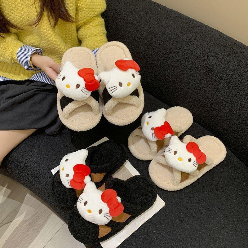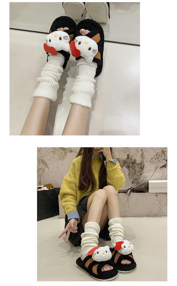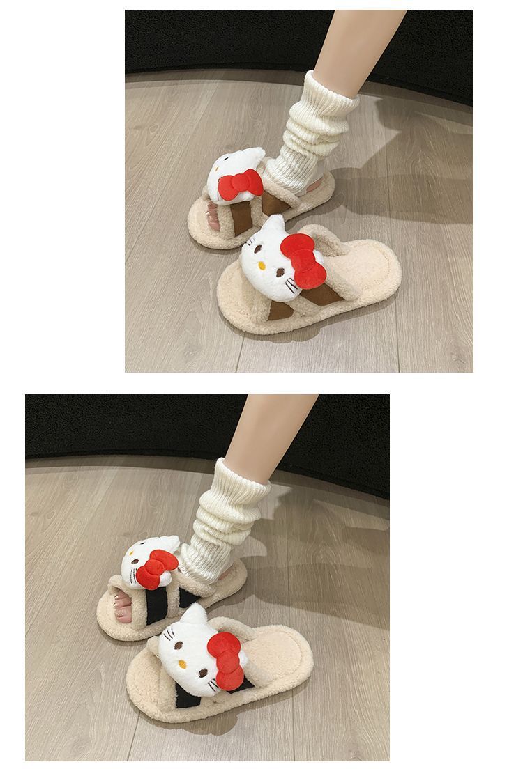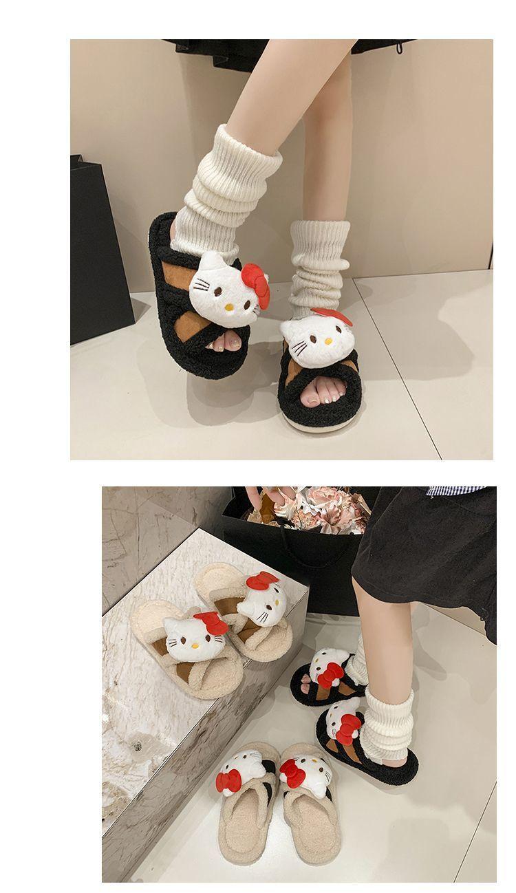 Hogar Suela Blanda Antideslizante Cómodas Pantuflas de Dibujos Animados de Una Tira 2025 Otoño/Invierno Nuevas Pantuflas Esponjosas de Gatito Lindo para Mujer
